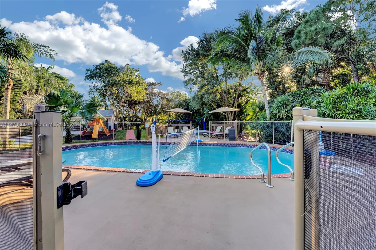 A private oasis set in Davie's equestrian acreage community. This stunning tropical paradise boasts 8 total bedrooms, 6 being in the main house & 2 in a separate guest house. Beautiful well-stocked kitchen, comfy bedding, & out of this world amenities. Gorgeous well-maintained landscaping surrounds the property, & outdoor amenities include an outdoor fire table, volley-ball court, mini-golf course, basketball, play area, game area, & swimming pool. Spacious & private. Conveniently located to A-rated schools, shopping, dining, expressways, airports & beaches.
