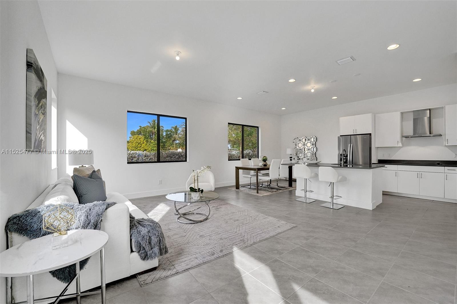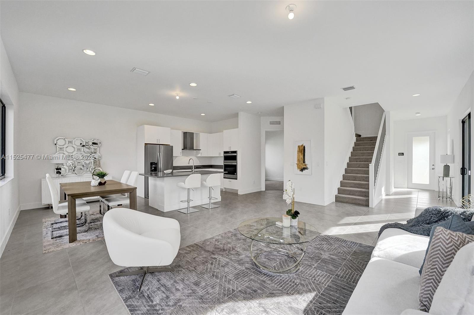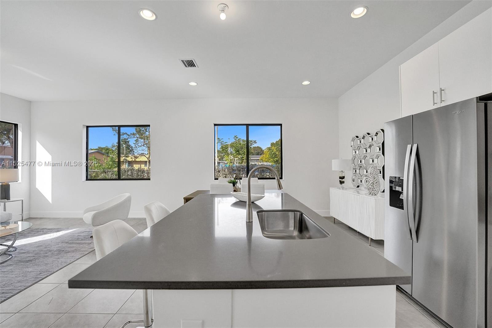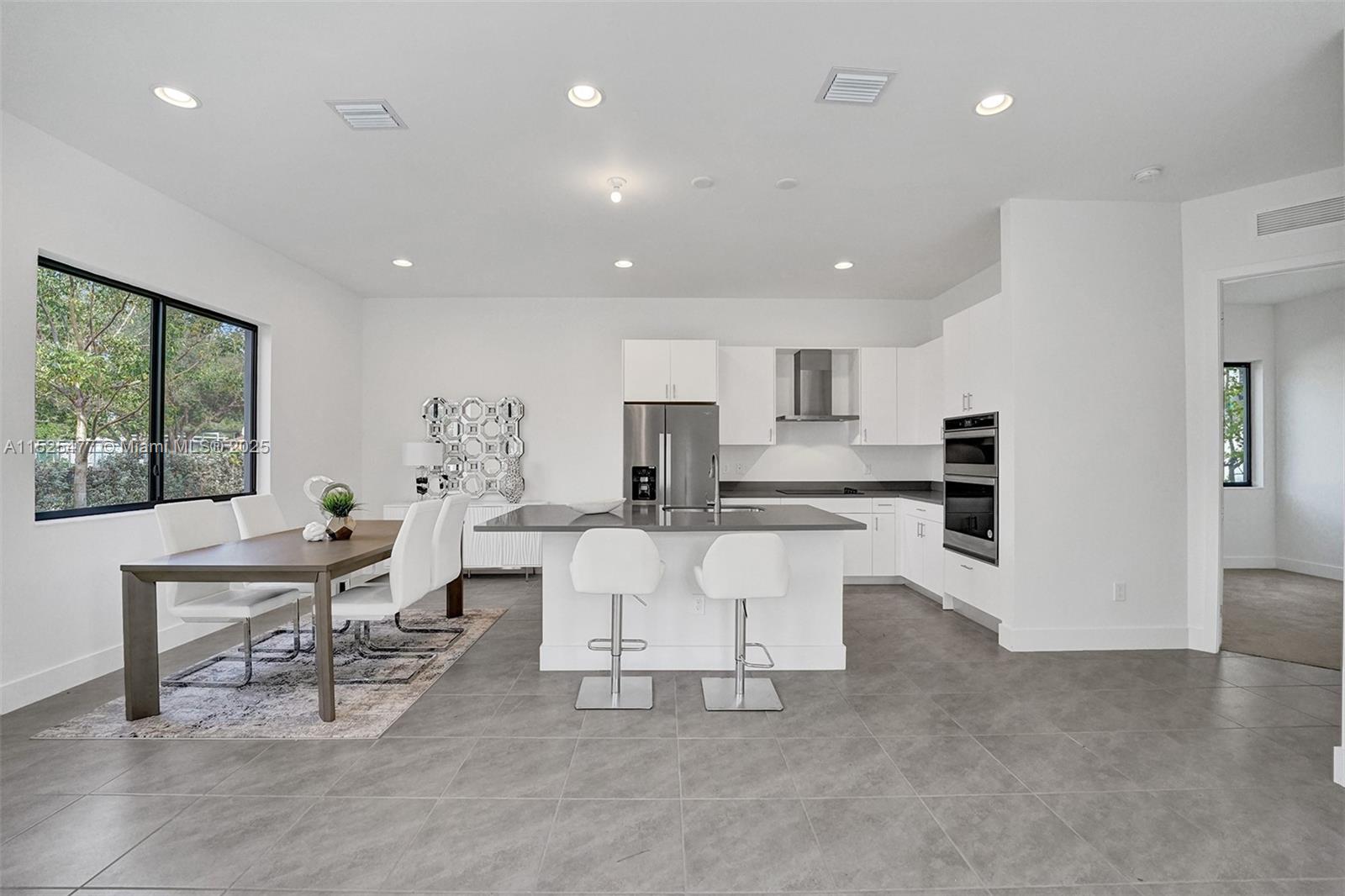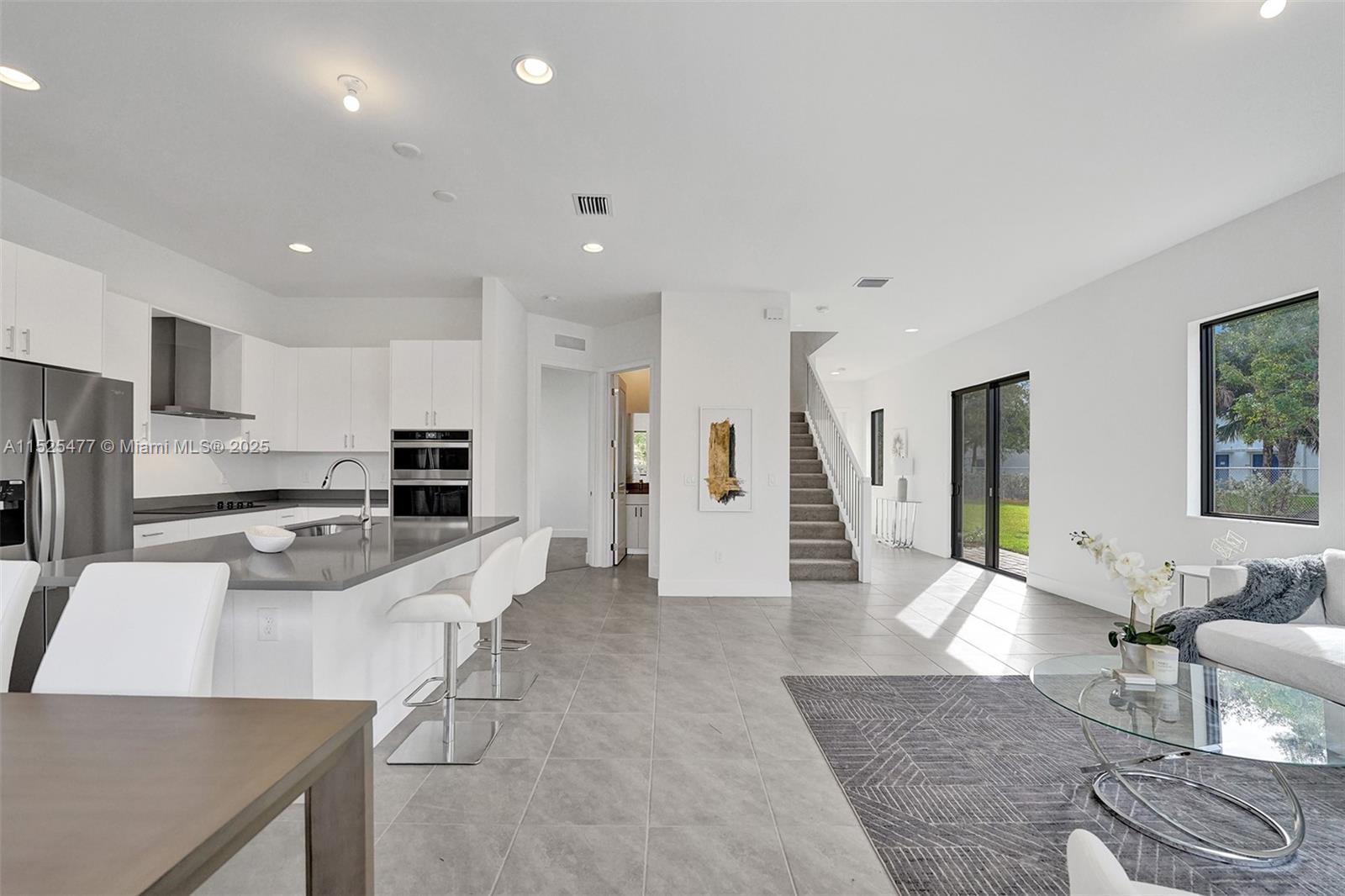 This stunning single-family home features a harmonious blend of comfort, style, and functionality, making it an ideal dwelling for both family living and entertaining. As you enter, you're welcomed into a bright and airy foyer that sets the tone for the rest of the house, with high ceilings and natural light streaming in from well-placed windows. The ground floor hosts a generous living room, where soft, inviting furnishings are arranged to encourage gathering and relaxation. The heart of the home is the gourmet kitchen, equipped with state-of-the-art appliances and an island that doubles as a breakfast bar. An open-plan design connects the kitchen to a cozy family room, featuring views of the backyard, making it a perfect spot for informal gatherings.