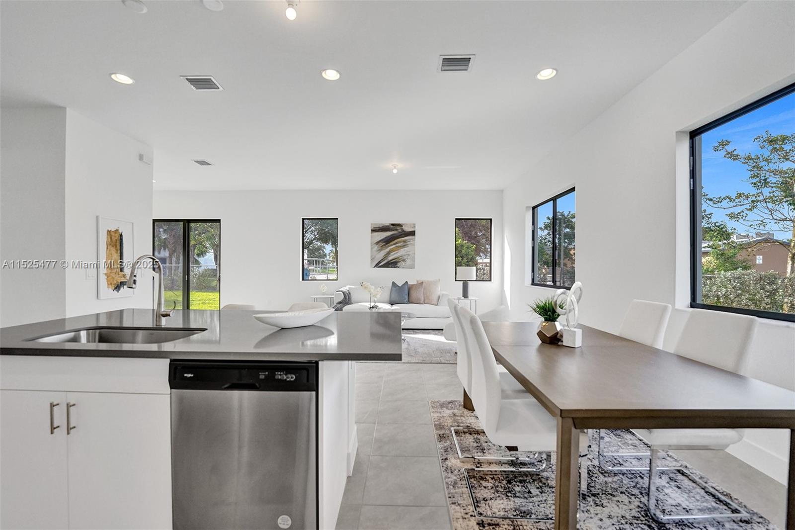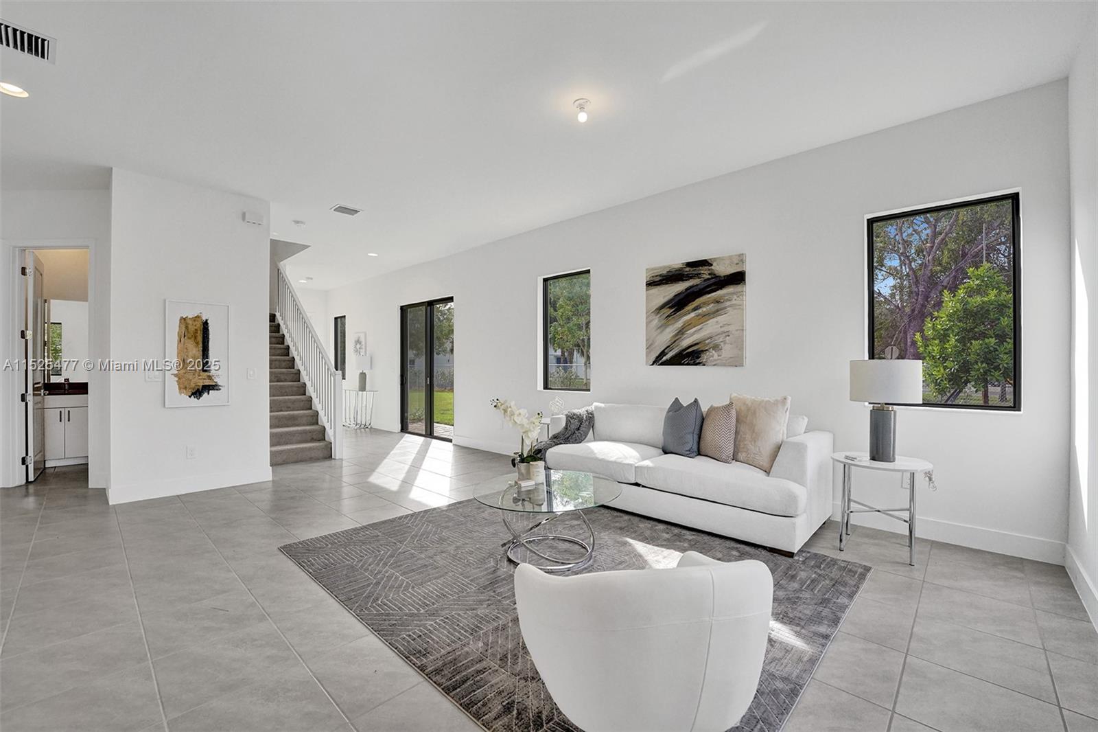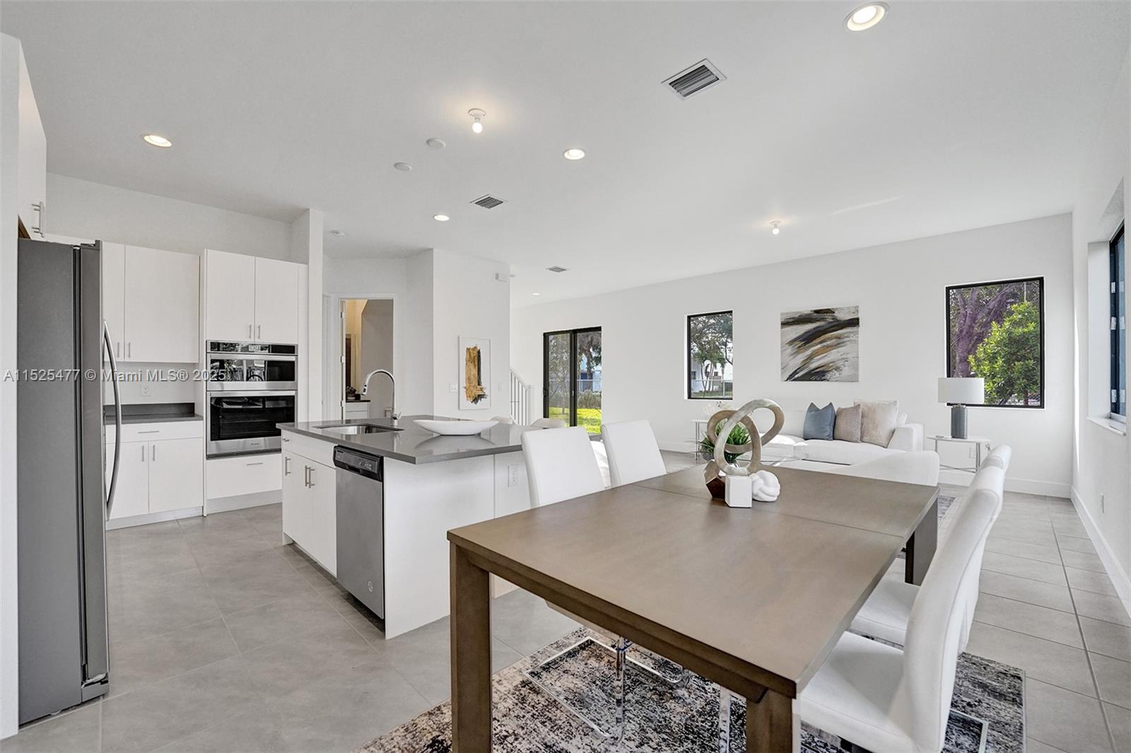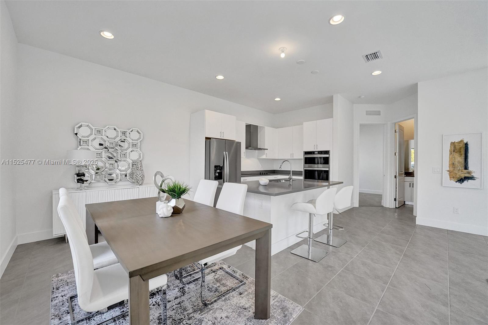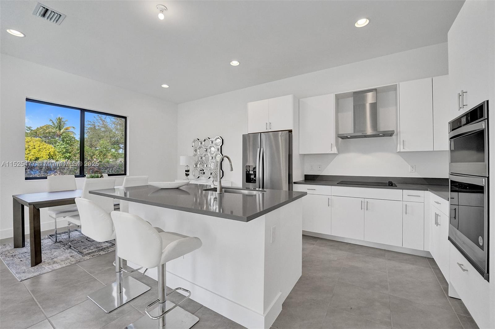 This stunning single-family home features a harmonious blend of comfort, style, and functionality, making it an ideal dwelling for both family living and entertaining. As you enter, you're welcomed into a bright and airy foyer that sets the tone for the rest of the house, with high ceilings and natural light streaming in from well-placed windows. The ground floor hosts a generous living room, where soft, inviting furnishings are arranged to encourage gathering and relaxation. The heart of the home is the gourmet kitchen, equipped with state-of-the-art appliances and an island that doubles as a breakfast bar. An open-plan design connects the kitchen to a cozy family room, featuring views of the backyard, making it a perfect spot for informal gatherings.
