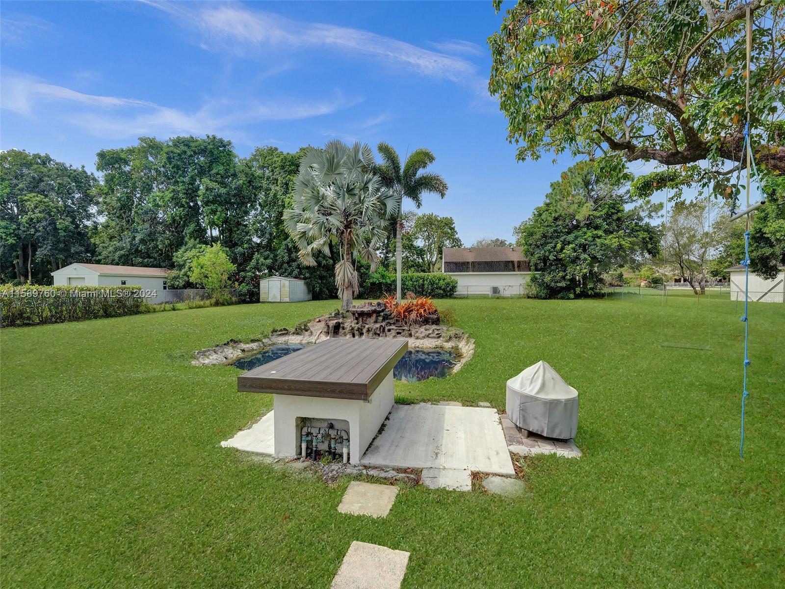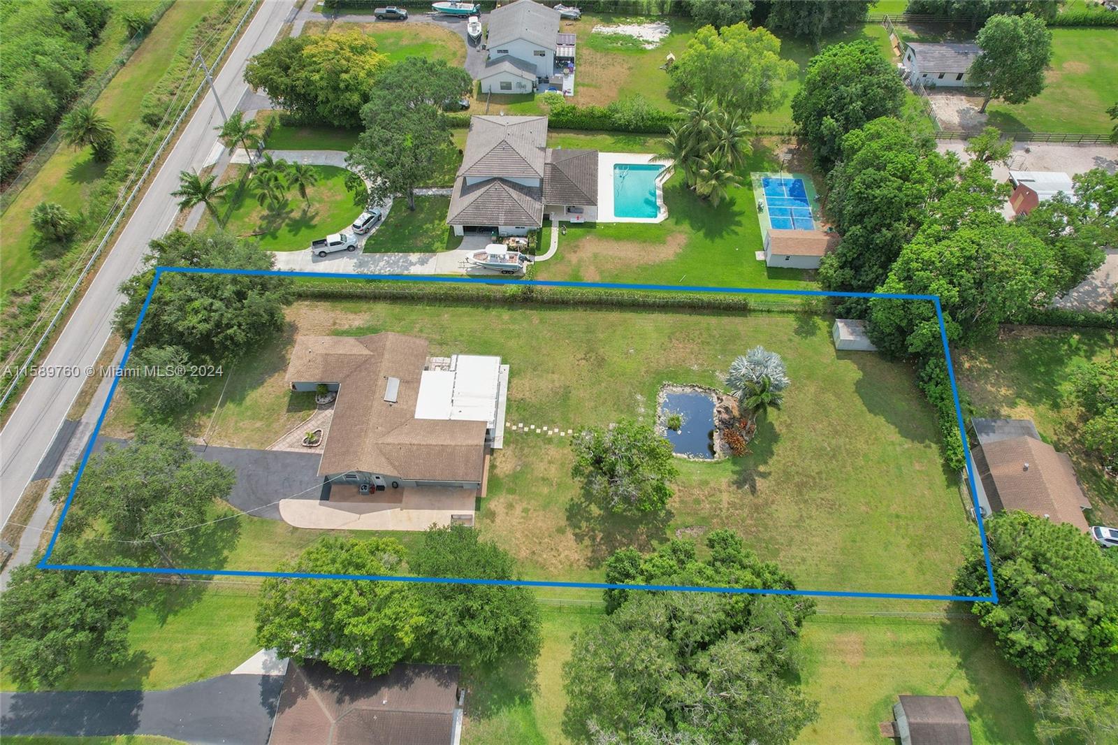 Well-kept Davie Home gem! On an acre of land!!MOTIVATED SELLER PRICE REDUCTION!! Please note that Total SqFt aprox 2300, This charming ranch style home features 3Beds/ 3Baths updated, Jacuzzi & shower. Walking and linen closets. A newer roof, expansive open kitchen. Oversized laundry room. This property has significant savings and sustainability with a well water with treatment system, septic tank, and solar water heater serviced periodically. 2 ½ car garage w/ new door. Wood and tiled floors combination. Backyard has a natural pond and a waterfall. Perfect as-is or for your dream home design with potential to expand, build a guest home, pool and more. Located in one of most desirable communities in South Florida. No HOA! close to great schools, main highways and shops.