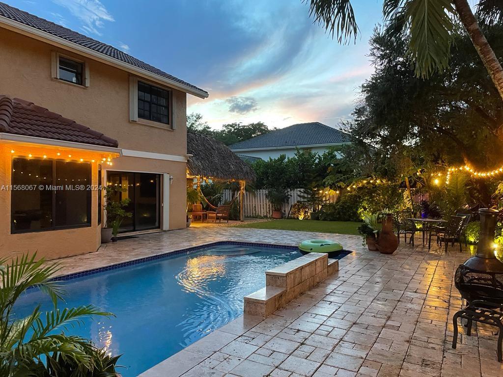 Beautiful 2 story family home in one of the most sought after school districts of Broward County. This Spanish style 2418 sq' 'detached' home has some of the best characteristics of this 'old world architecture' in a modern home design. The home has a front and a back yard , the outdoor amenities include a pool, a covered tiki hut, sprawling gardens and vegetation through out the yard.A beautiful informal dinning room with a view of the pool, a large living room , large formal dinning , open kitchen with a pantry, breakfast bar, and SS appliances, downstairs office. A 2 car garage, separately laundry area 2 attics and downstairs bathroom.Once on the second level there is landing area that takes you to the spacious bedrooms and bathroom. The primary bedroom has a walk-in closet.