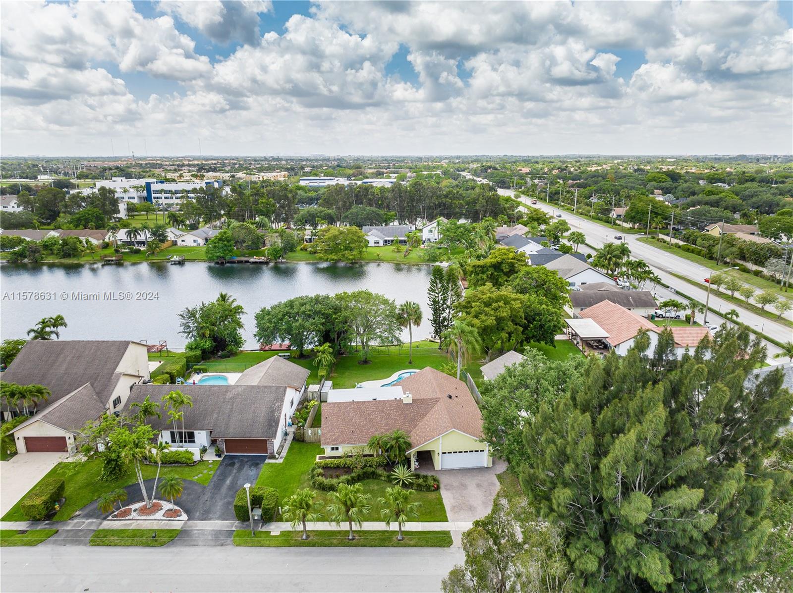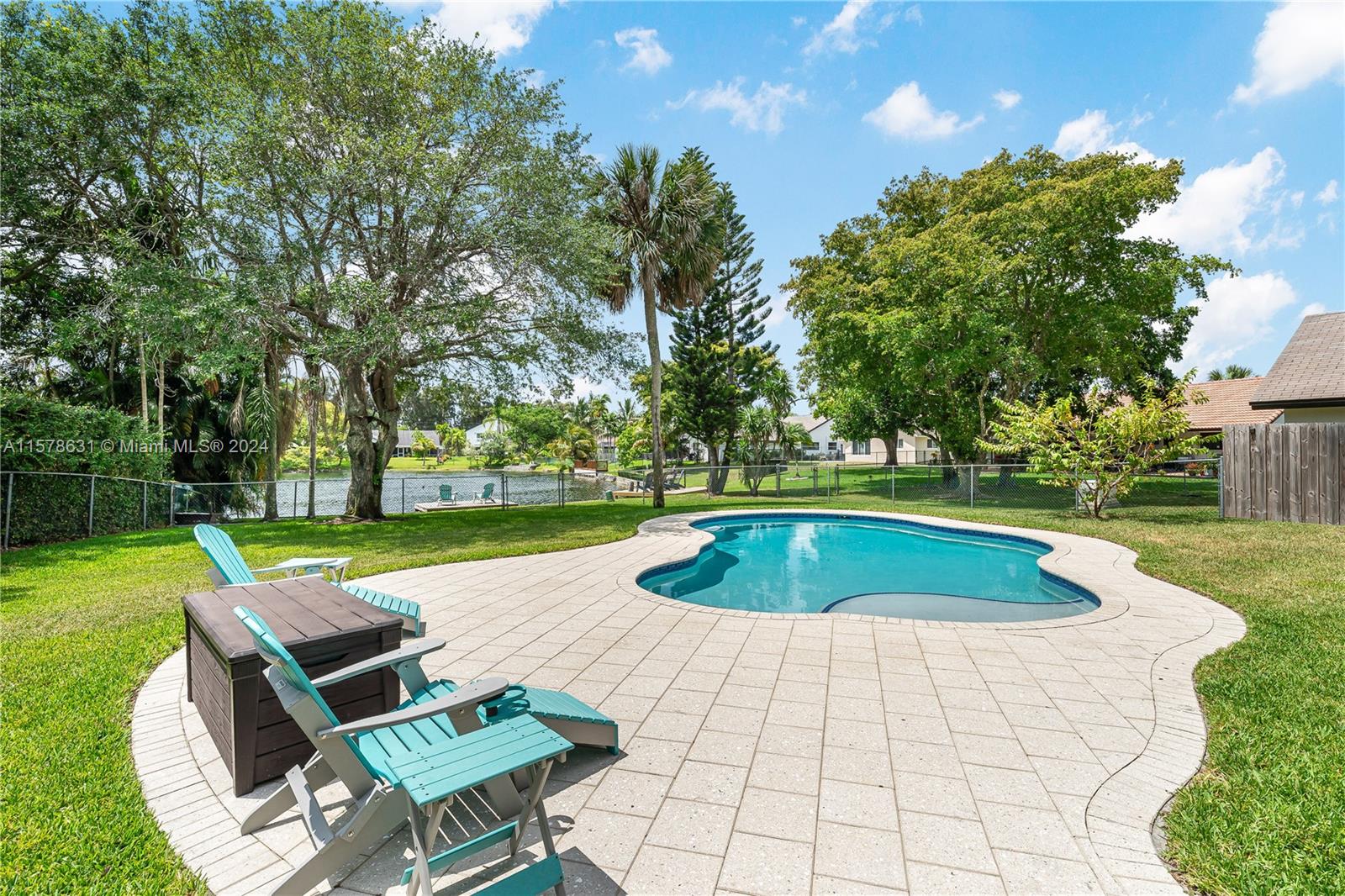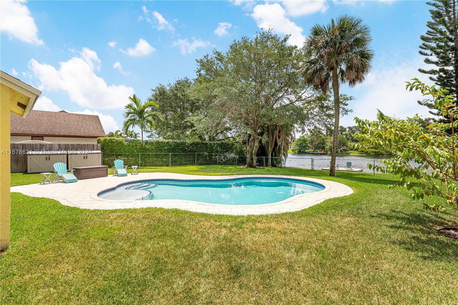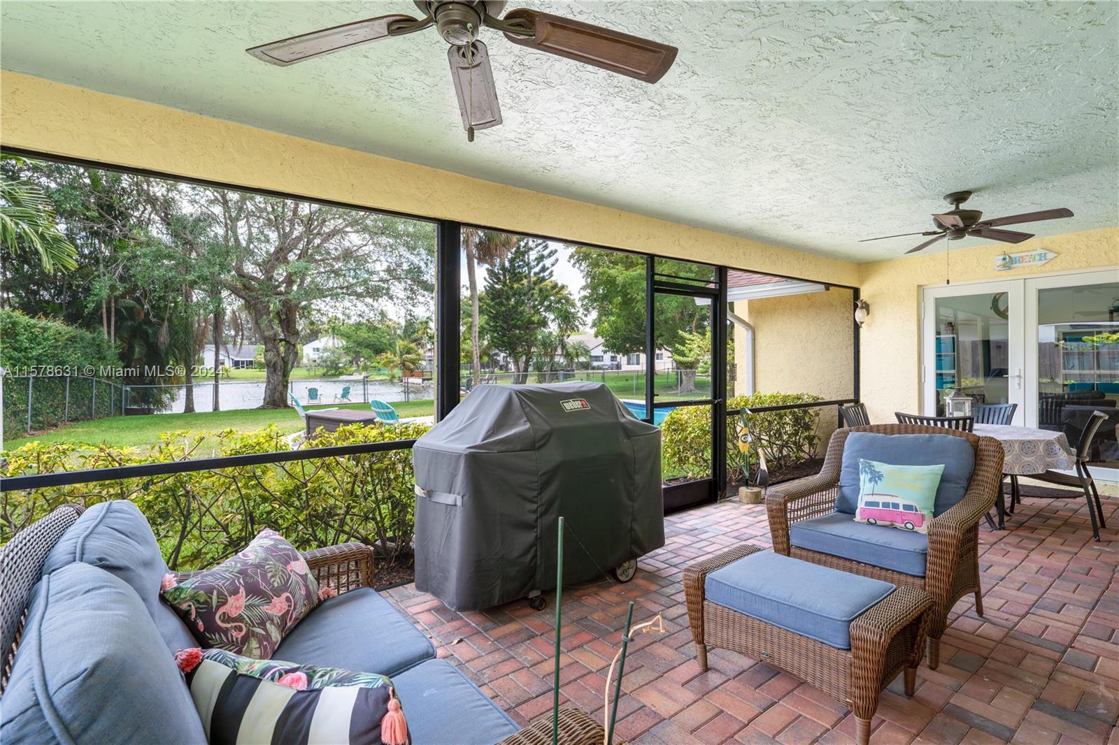 Rarely available in Davie Lake Estates ~ zoned for sought after Pioneer/Cooper City High. This beauty has over $290,000 in upgrades: custom hardwood kitchen with stainless package, 2023 roof, 2018, pool, 2015 impact windows & doors, beautiful vinyl flooring, custom builtins (all closets & garage) Stone wall on fireplace...the list goes ON & ON! Open floor plan with vaulted ceilings & gorgeous views from the many windows & doors. Split bedrooms. Step outside to a true South Florida paradise complete with covered screened patio, sparkling pool AND breathtaking water view. Sit on the dock and fish or enjoy the sunset. HOA only 250/year. Large fenced lot with plenty of room for play, pets & garden. Terrific location off with easy access to both public & private schools, shopping & highways.