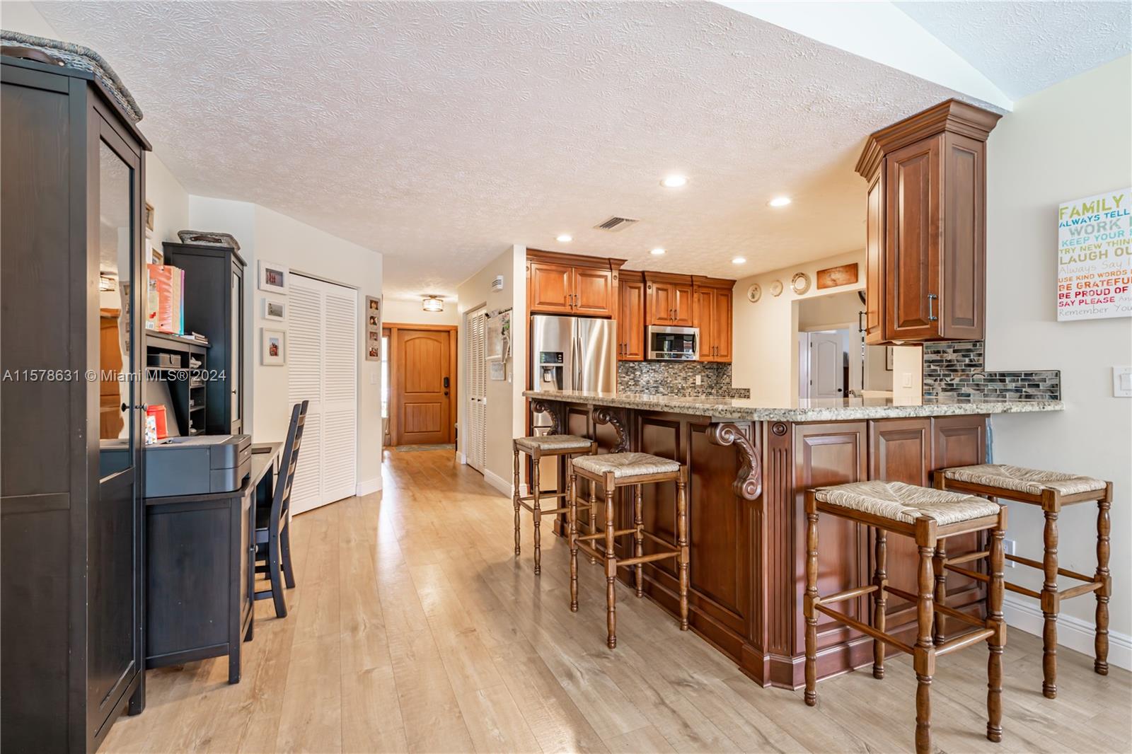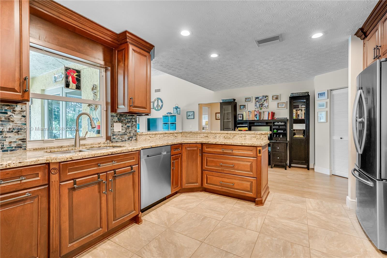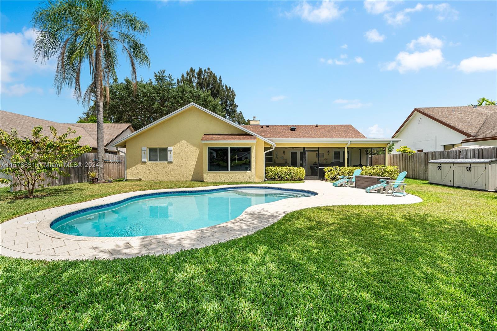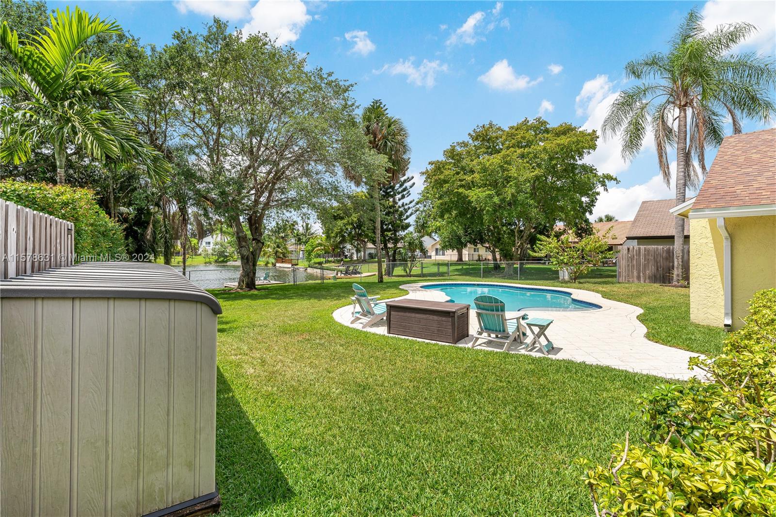 Rarely available in Davie Lake Estates ~ zoned for sought after Pioneer/Cooper City High. This beauty has over $290,000 in upgrades: custom hardwood kitchen with stainless package, 2023 roof, 2018, pool, 2015 impact windows & doors, beautiful vinyl flooring, custom builtins (all closets & garage) Stone wall on fireplace...the list goes ON & ON! Open floor plan with vaulted ceilings & gorgeous views from the many windows & doors. Split bedrooms. Step outside to a true South Florida paradise complete with covered screened patio, sparkling pool AND breathtaking water view. Sit on the dock and fish or enjoy the sunset. HOA only 250/year. Large fenced lot with plenty of room for play, pets & garden. Terrific location off with easy access to both public & private schools, shopping & highways.