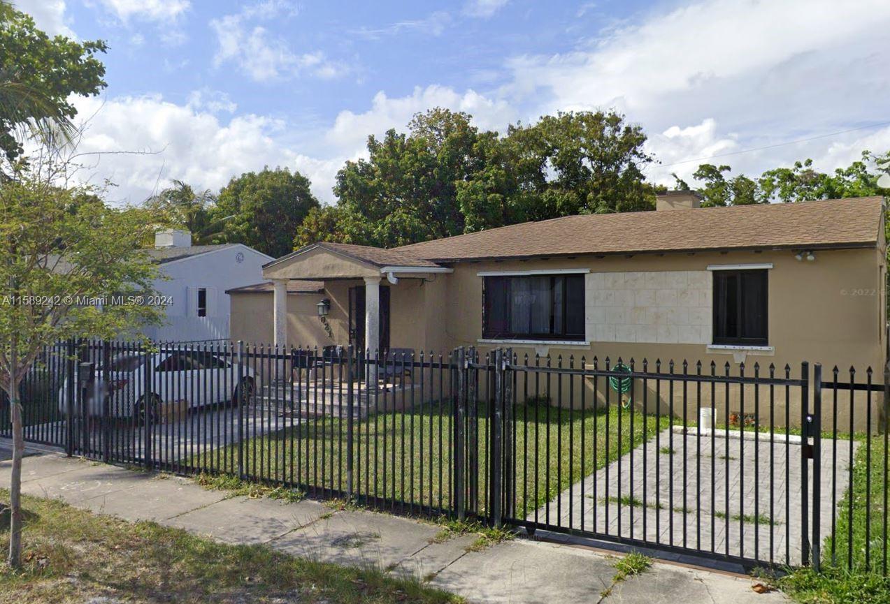 4 bed 2 bath single family home w/ two fenced driveway spots. New hurricane windows, wood & tile floors, 2 renovated baths & mosaic tile accents. Stainless kitchen appliances. Kitchen has renovation upside. Large master bedroom w/ high ceilings & recessed lights. Separate dining room with chandelier. Larger 6,000 SF lot w/ large fenced back yard with room for a pool or an addition to the home. Yard has a large shed with power. Washer & dryer hookups are in a closet in the 4th bedroom. 2 driveway gates lead to 2 separate stamped concrete driveway spaces.