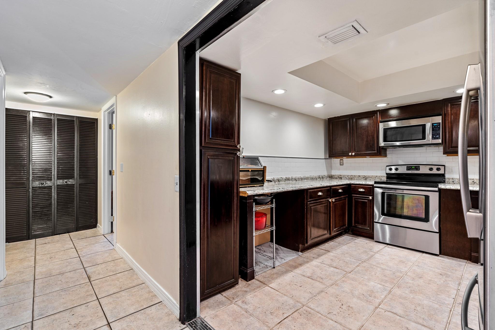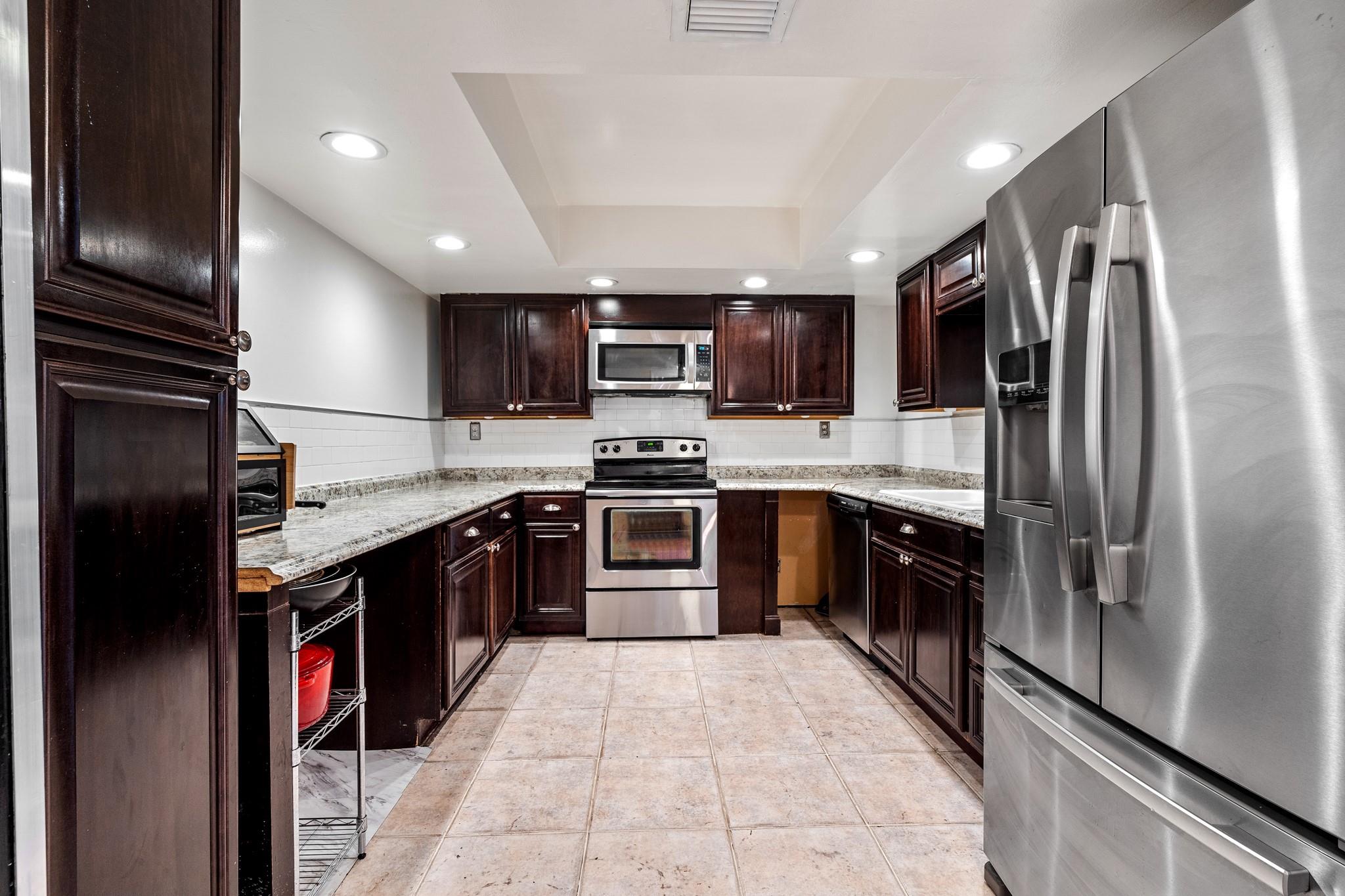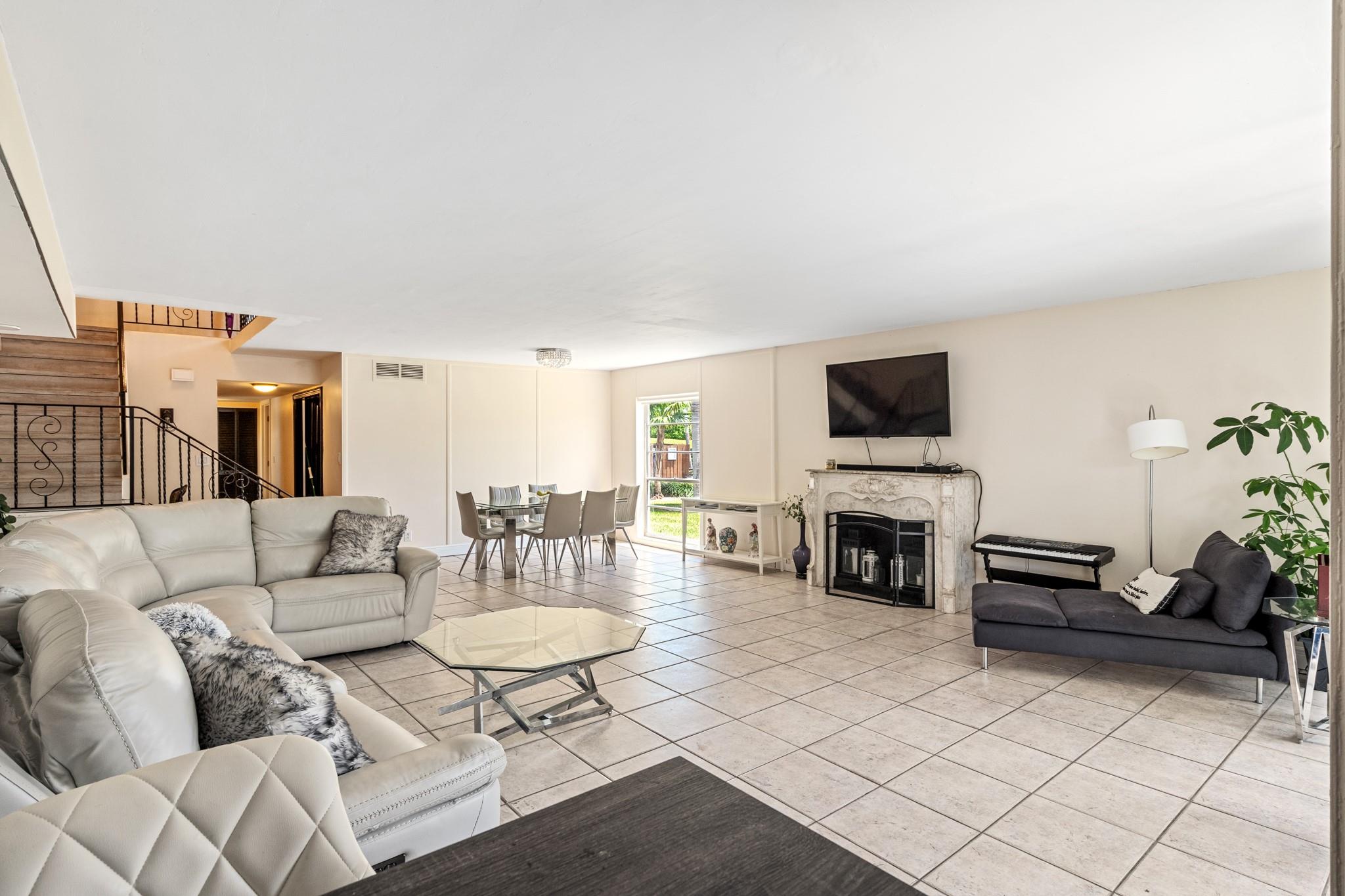 Discover unparalleled luxury in this exquisite 4-bedroom, 2.5-bath corner unit, boasting the expansive Model J floor plan—the largest in its prestigious community. Elegantly appointed with fresh paint and refined tile and laminate flooring, this home shines with sophistication. The chef's kitchen features state-of-the-art stainless steel appliances, while the laundry room comes equipped with a newer washer and dryer. Revel in the private backyard oasis or entertain on the spacious balcony, offering extra storage. Flooded with natural light and offering ample space and storage, this home is just steps from local worship houses, parks, and minutes from the beach and vibrant shopping areas. Community perks include a pool and tennis courts, enhancing this ideal living experience.