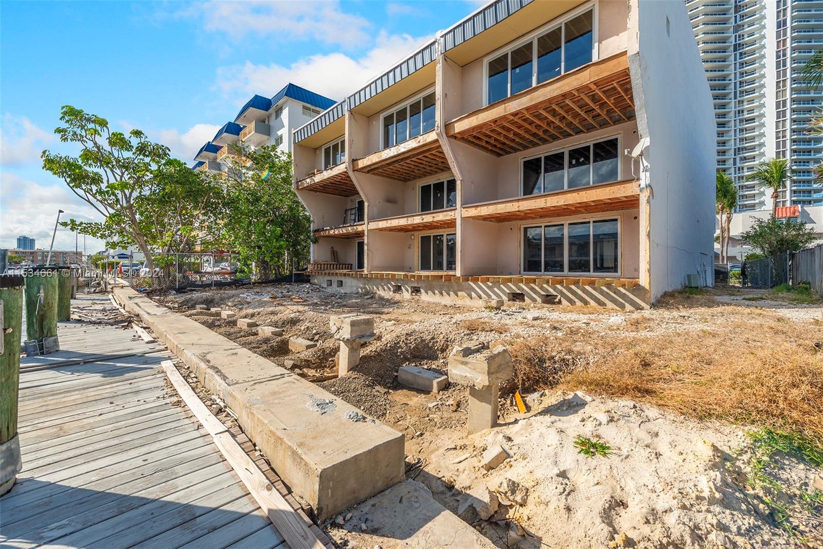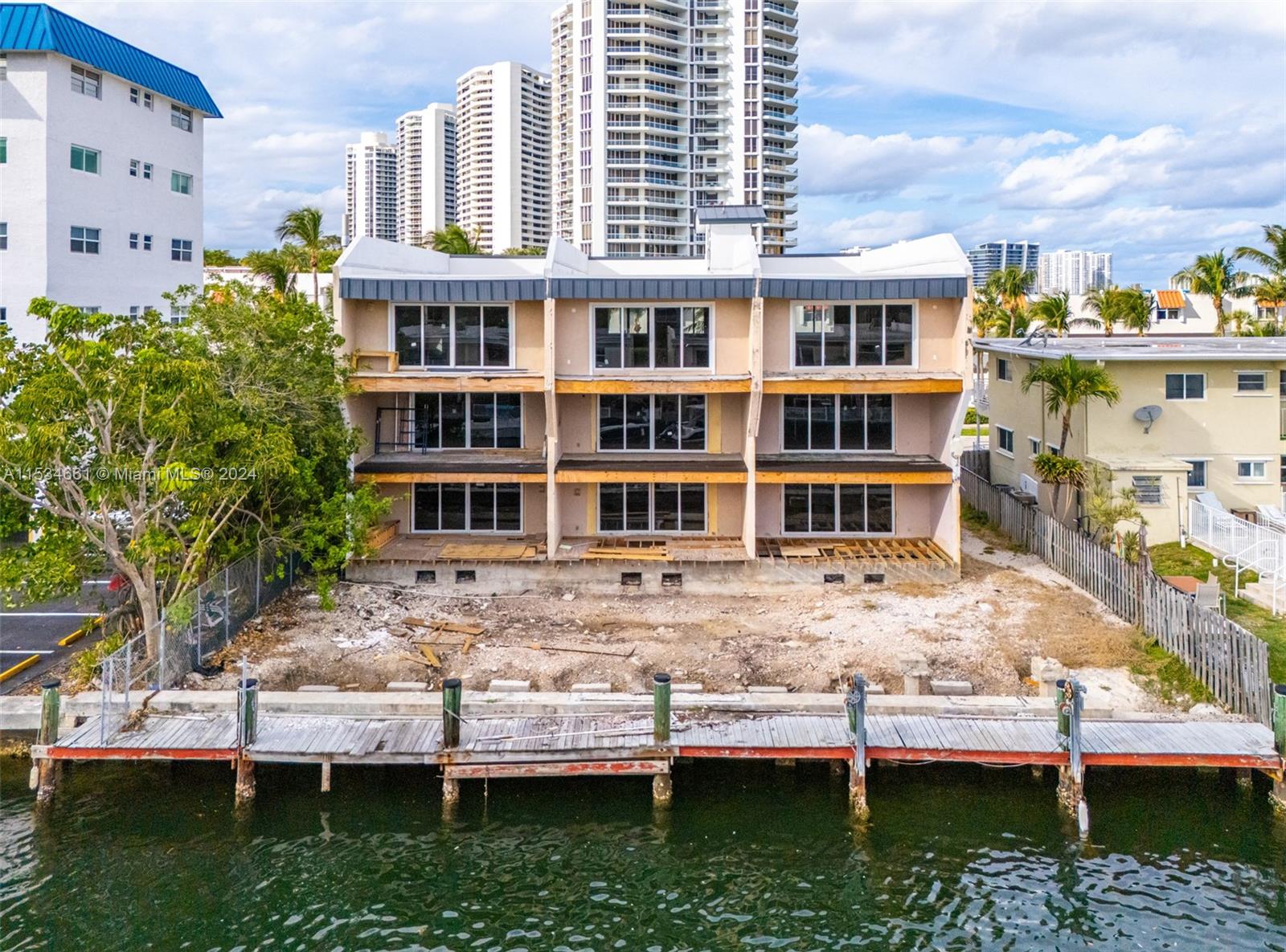 Incredible opportunity to finish building out 3 side by side townhouses in the exclusive Eastern Shores, a waterfront gated community. Impact windows and doors already installed. Metal roof. Each tri-level townhouse has 2,450 sf, an attached carport and space for 3 bedrooms & 2.5 baths. Room for an elevator. Beautiful views overlooking the waterway just minutes to Haulover inlet. You can opt for many options from building one community pool to three individual pools. 75 ft of water frontage, no fixed bridges with direct ocean access. Eastern Shores offers a great lifestyle located across Oleta State Park. Just minutes to the beach, Sunny Isles, shopping and parks. SOLD AS-IS. Sale includes 3 folios: 07-2210-002-0163, 07-2210-002-0162 and 07-2210-002-0161.