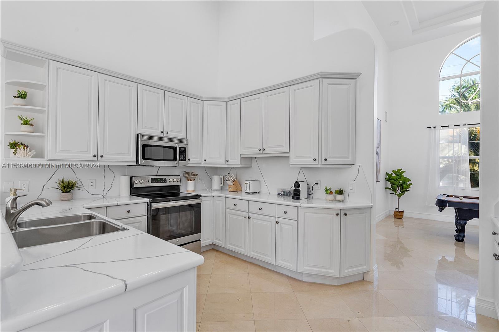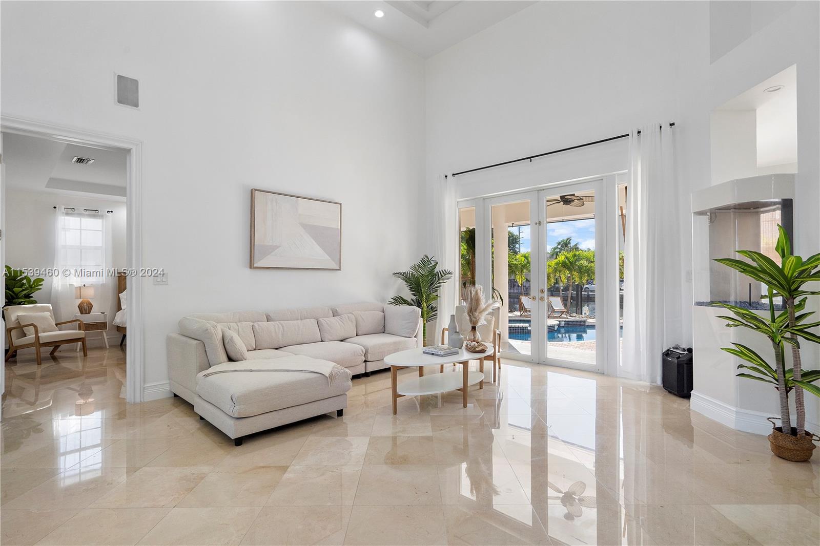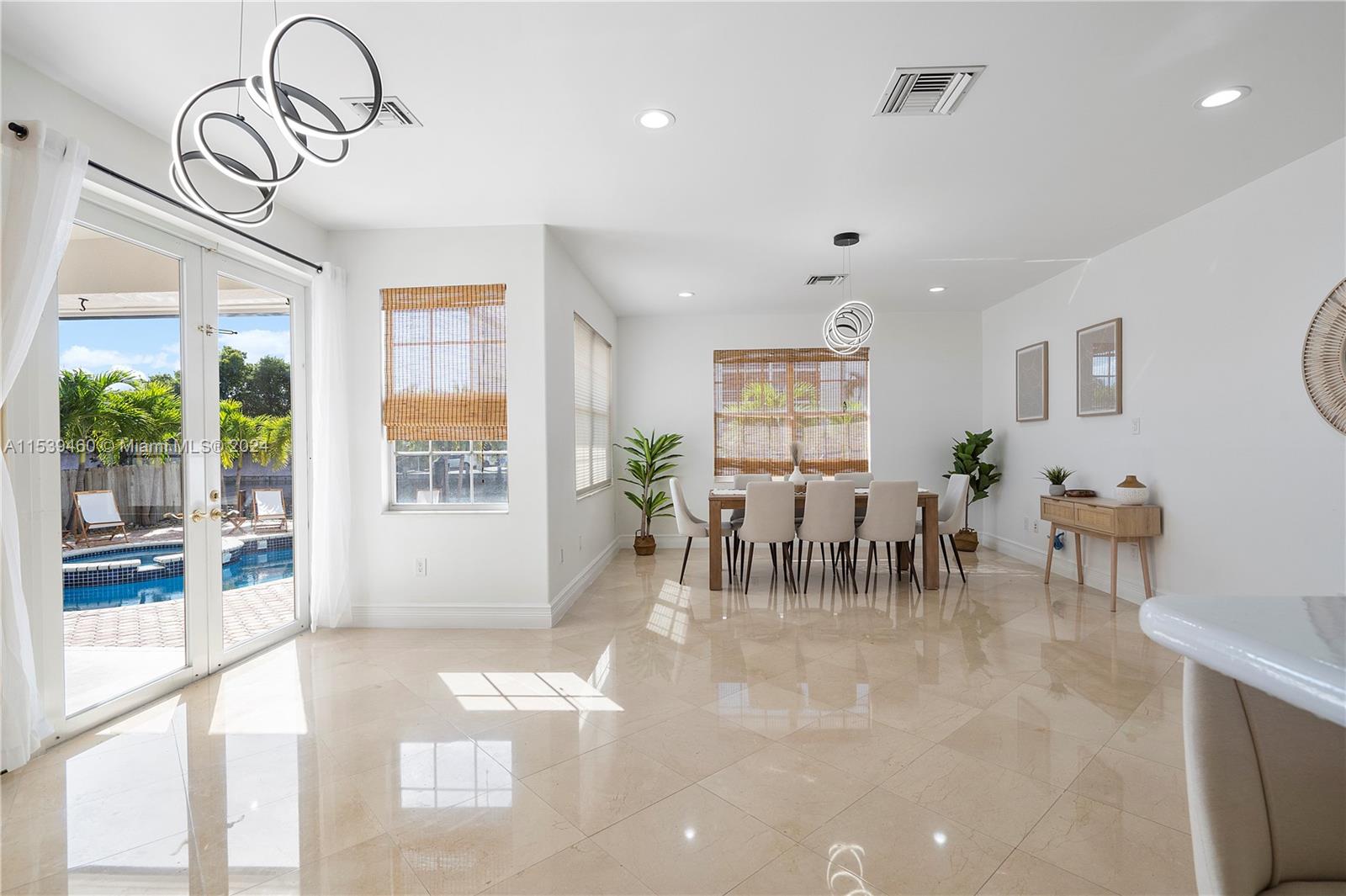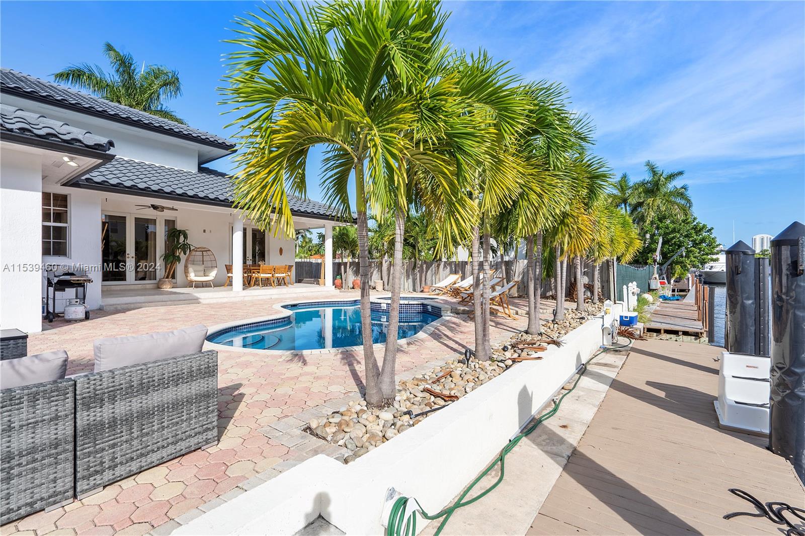 Stunning waterfront home in the desirable Eastern Shores. This single-family home offers six bedrooms with four and a half bathrooms, was completely remodeled, and offers 3,800 sq ft of living space and high ceilings. Large marble tile floors throughout, custom closets, large living room, and a primary bedroom that offers beautiful waterfront views. Outside, you will find a large yard with a heated pool and spa. A well-maintained 80 ft dock with no fixed bridges on your way to the ocean. Located in Eastern Shores, the community is guarded and gated 24/7. Residents enjoy easy access to boating and water activities and proximity to shopping, dining, and entertainment options.