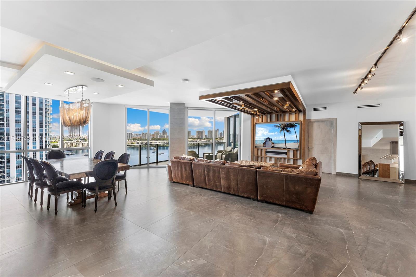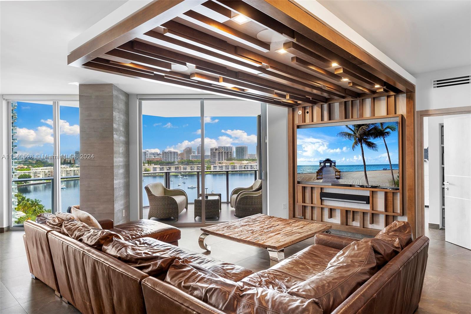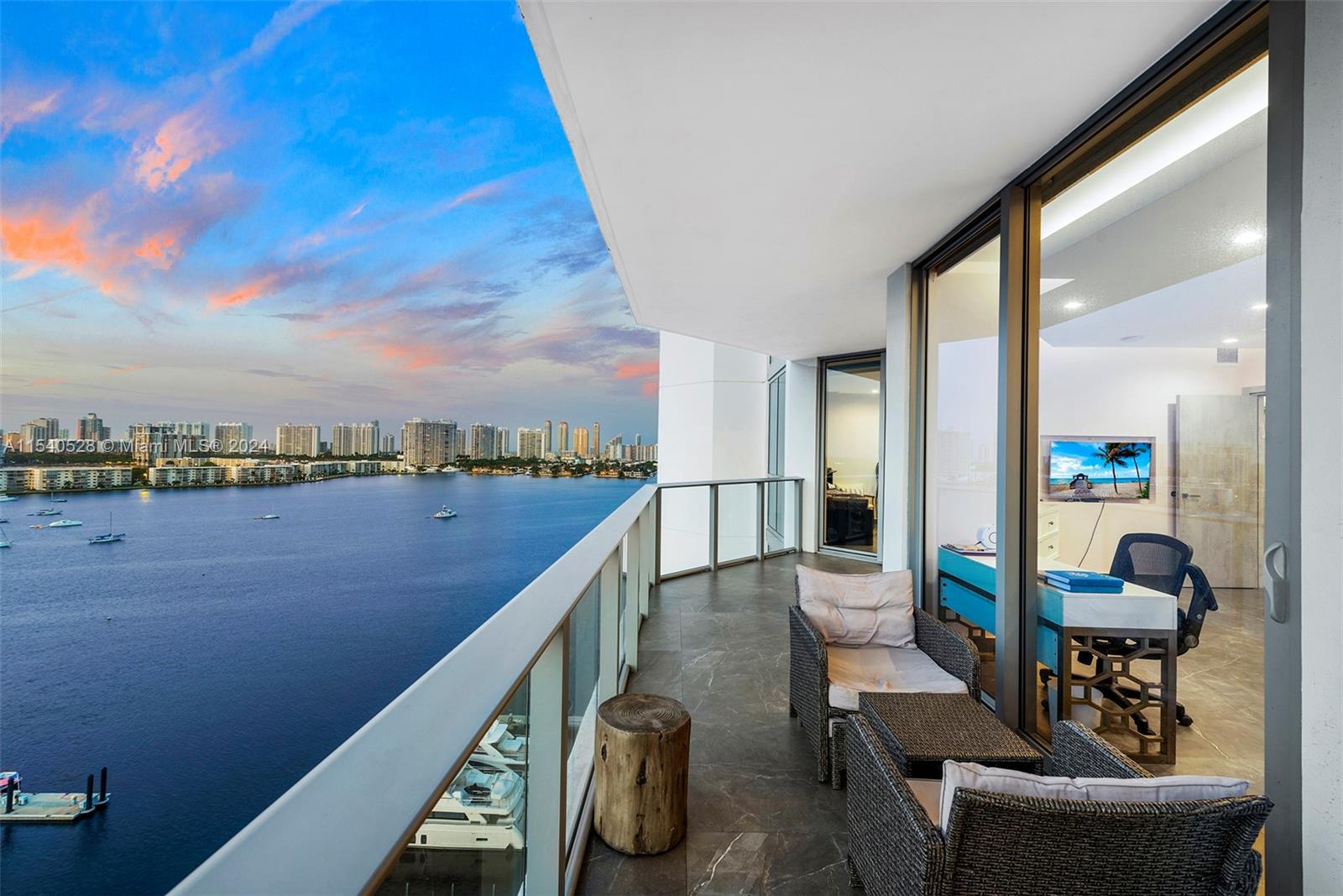 Waterfront and defining luxury. Once 2 separate units, this condo is now 1 magnificent home. Customized with a European kitchen, high-end appliances, built-out closets, and a smart home system, controlling sound, temp, and lights. The home offers 4 bedrooms, a bonus room/movie theater, a nanny bedroom, 4.5 bathrooms, and two oversized balconies. The condo has 9.2' ceilings, 4 parking spaces, valet parking for guests, and 2 storage units. The private marina has boat slips that can be purchased, or rented monthly-daily. This condo at Marina Palms sets a new standard in lavish living with 5-star amenities, including a spa, fitness center, business center, and resort-style pool. Currently rented until May 13, 2025 for $16k per month. Rent was paid in full upfront.
