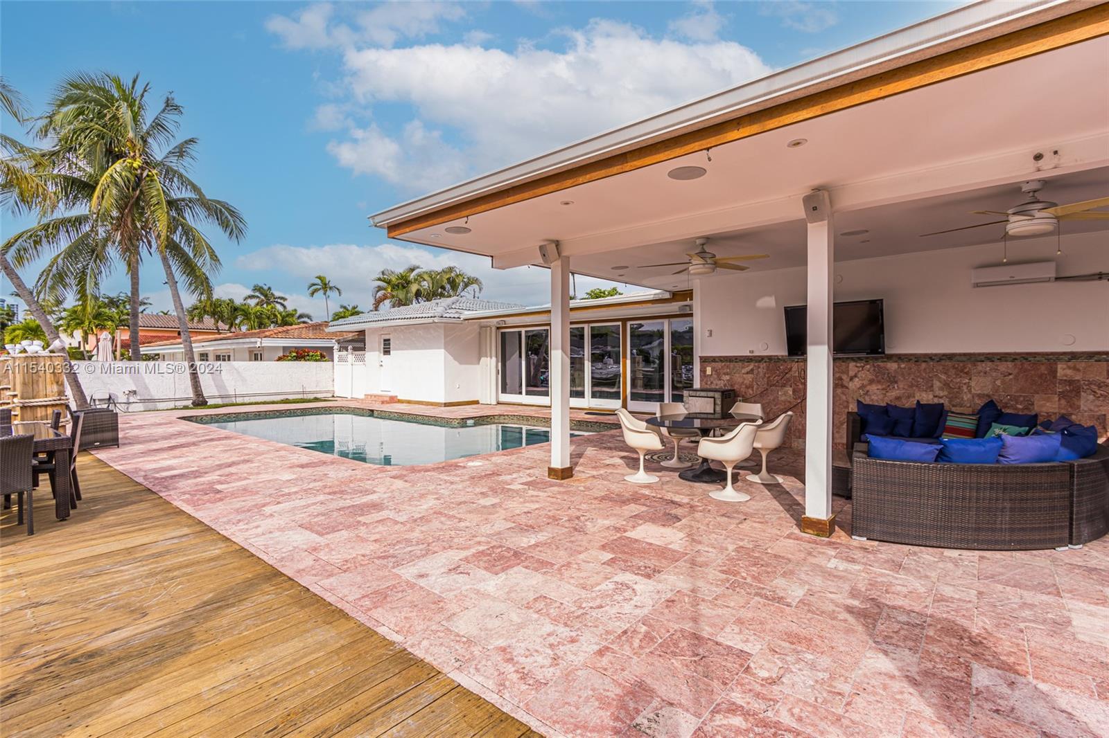 Amazing Eastern Shores Waterfront Property. 80 feet on the water no fixed bridges, Ocean Access through Haulover Inlet. 4br/3ba Open Floor Plan, Heated Pool, Covered Patio, Spacious Master Suite, Sauna, Large Boat Dock, Beautiful Sunsets with Maule Lake View. Great Community Close to Sunny Isles, Bal Harbor, and Aventura.