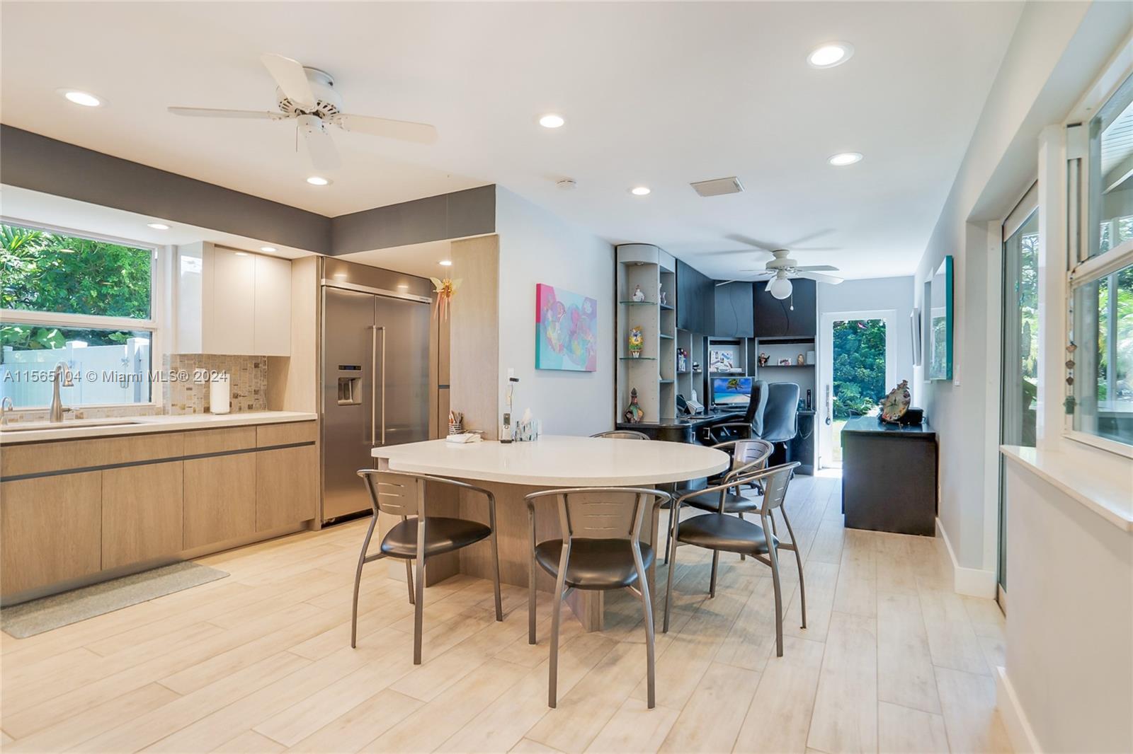 SKYLAKE SOPHISTICATED MID-CENTURY MODERN ESTATE! SITUATED ON 1/2 ACRE LUSHLY LANDSCAPED CORNER PROPERTY. THIS EXPANSIVE HOME IS METICULOUS AND AWAITS YOUR FAMILY. IT BOASTS OVER 3,000 SQ. FT. OF CUSTOM DESIGN. THE LIVING ROOM ENJOYS WOOD VAULTED CEILINGS, FIREPLACE, AND WALL OF GLASS OVERLOOKING A 500 SQ FT PATIO. NEW GOURMET KITCHEN HAS TOP-OF-THE-LINE APPLIANCES, A BREAKFAST AREA, AND OFFICE SPACE. THE MASTER SUITE ADJOINS THE EXERCISE ROOM/OFFICE NURSERY. A HUGE, SECLUDED BACKYARD WITH A HEATED, SALTWATER POOL, AND GARDEN AREA TO ENTERTAIN A CROWD. ALL IMPACT WINDOWS AND DOORS, CHARGING STATION FOR ELECTRIC CARS, BUILT-INS THROUGHOUT. THIS A UNIQUE HOME FOR A SPECIAL FAMILY. MINUTES TO THE BEST SCHOOLS, SHOPPING, FINE DINING, BEACHES, I-95, AND BRIGHTLINE STATION!