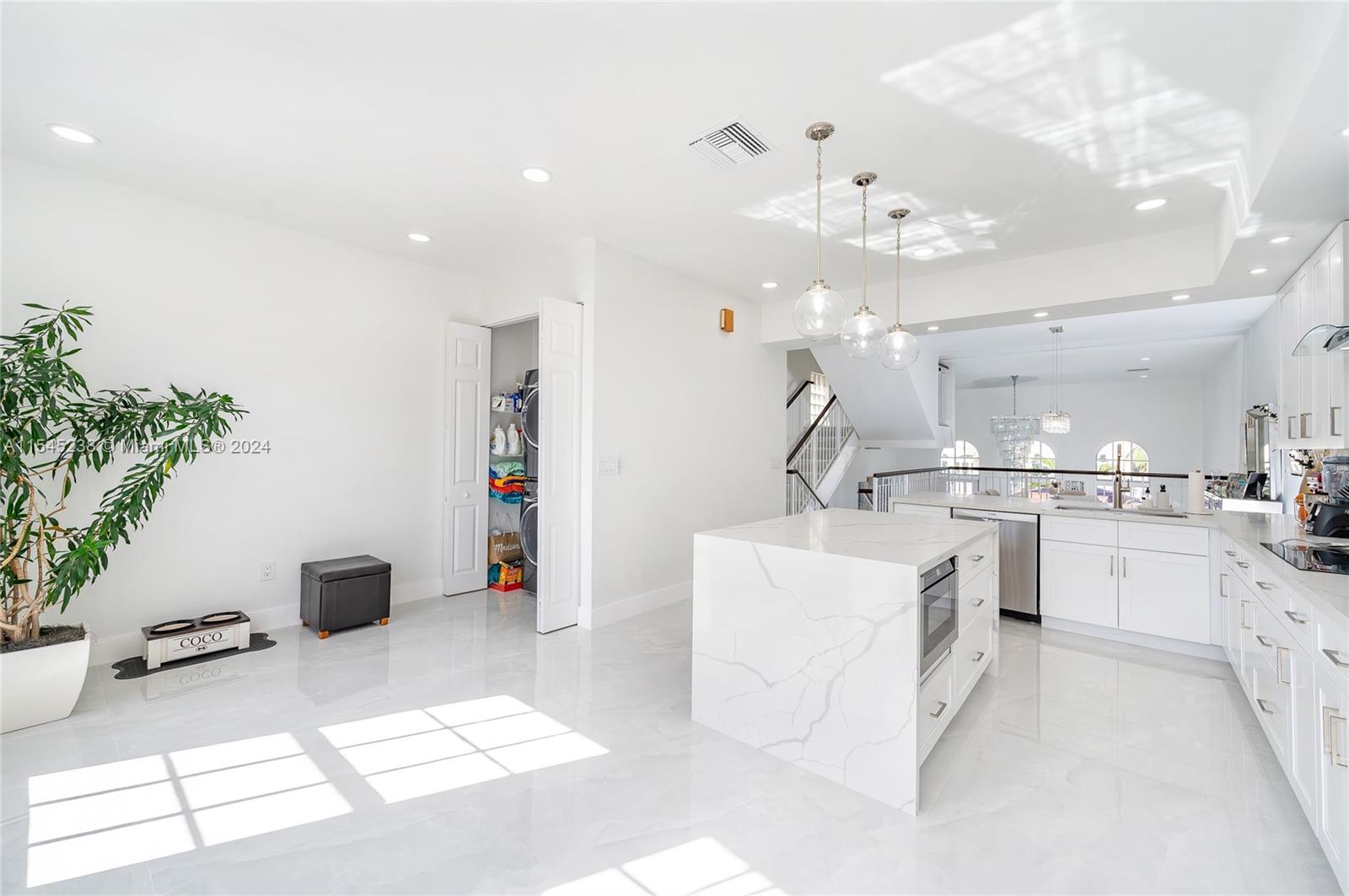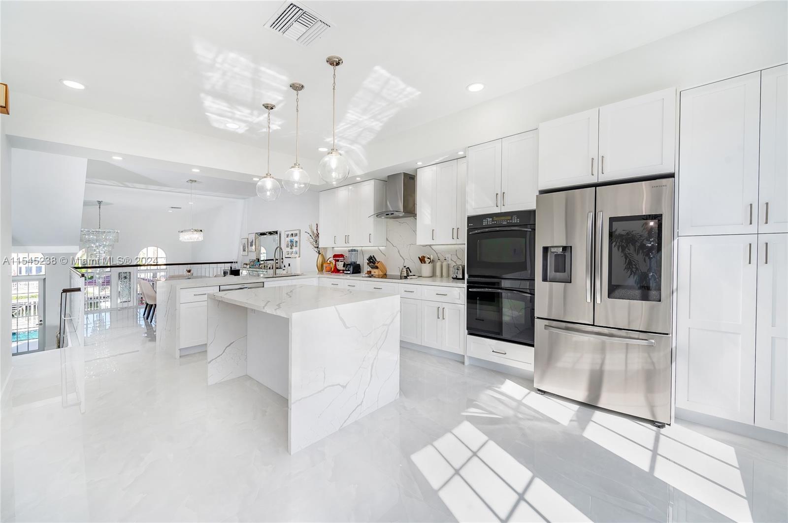 Experience luxury in this FULLY RENOVATED Eastern Shores abode. The home unfolds with HIGH-END FINISHES, thoughtfully equipped with Alexa-connected LED lighting for modern comfort. Stainless steel appliances including washer, dryer, smart fridge, dishwasher, double oven, under counter drawer-style microwave, glass top range, wall range hood, high impact windows/doors, window treatments/motorized zebra shades, & black-out curtains in master suite. 2 car garage, 15ft ceilings in living room & 10ft throughout, ample closet space, and 2 walk-in closets. Gourmet kitchen. Sophisticated details from stunning porcelain flooring to the rain shower systems & whirlpool spa in master bath. Embrace WATERFRONT living with a PRIVATE HEATED POOL & DOCK that can accommodate up to 25ft BOAT. OCEAN ACCESS!