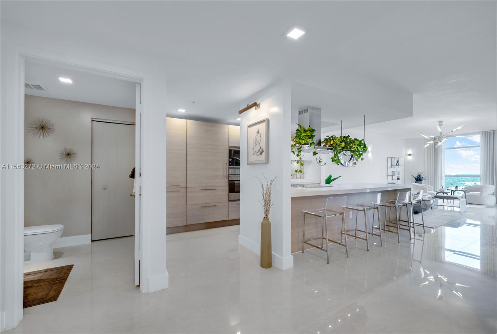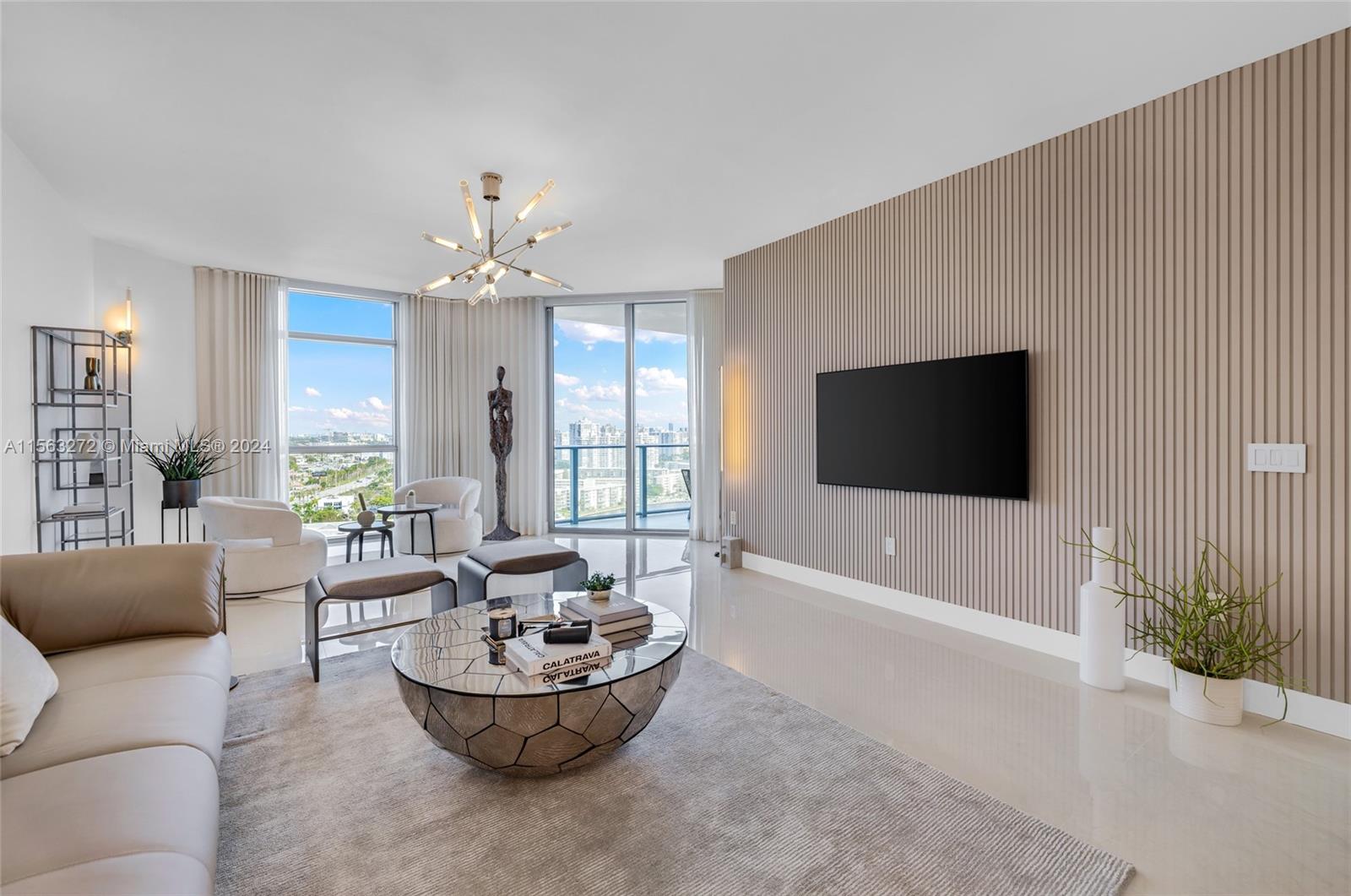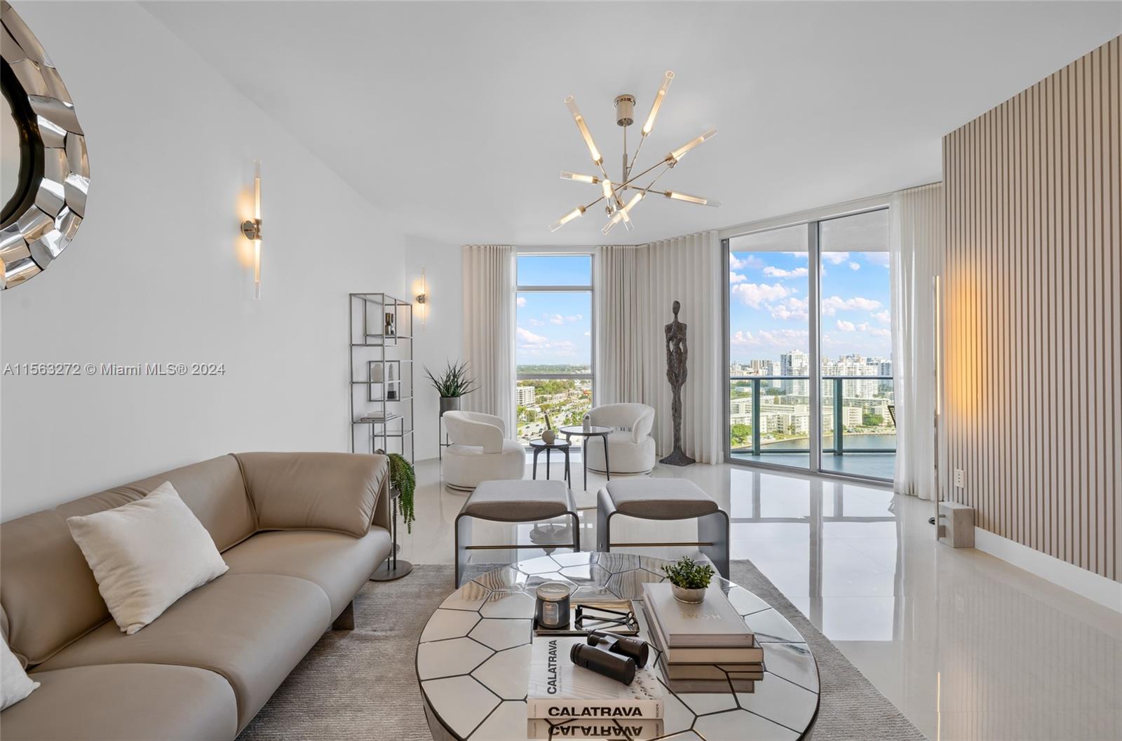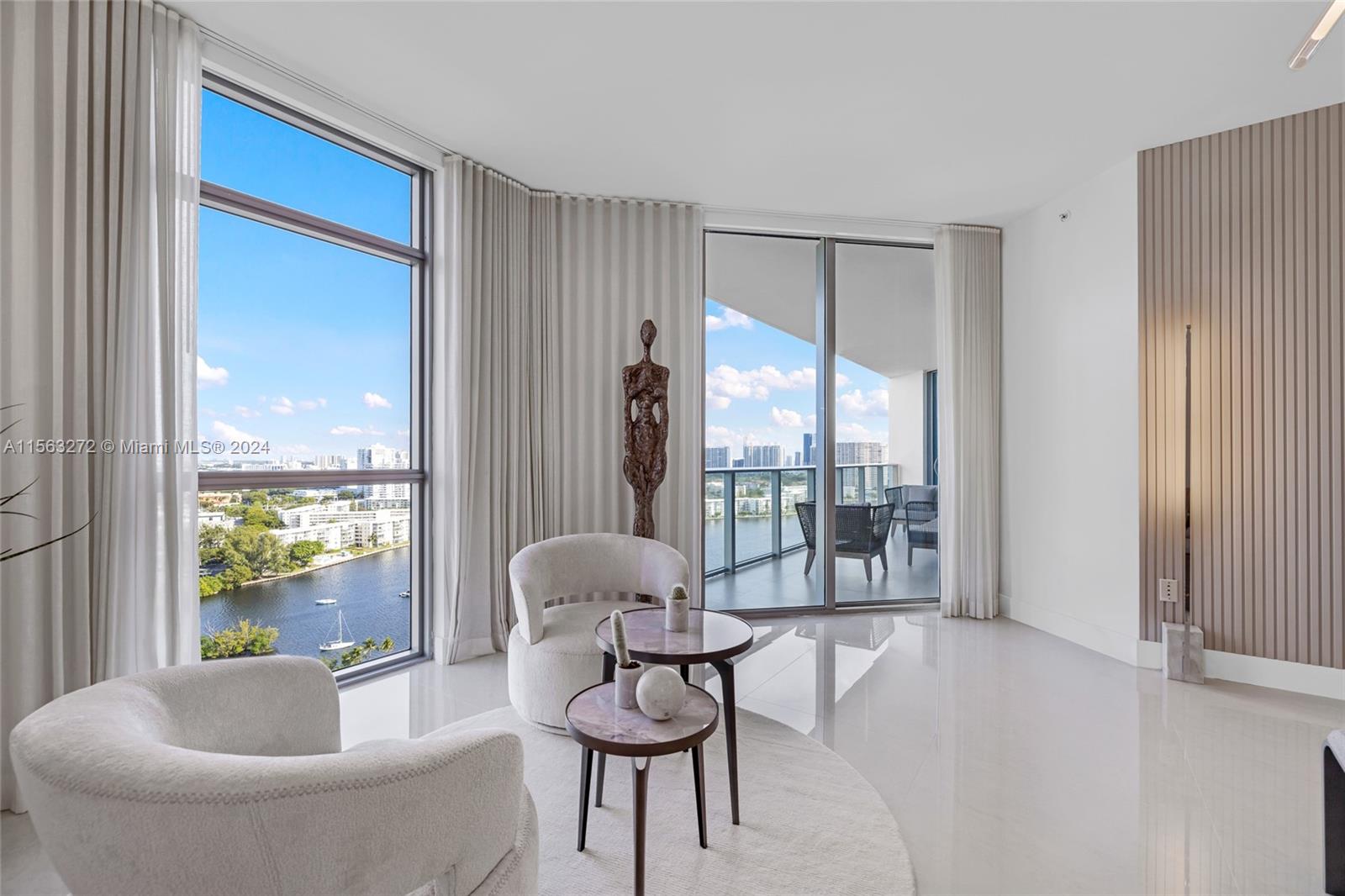 JUST RENOVATED // READY TO MOVE-IN. This condo features 3 bedrooms + Den, 3.5 bathrooms + full laundry room. Professionally decorated and furnished, sold as-is. The unit showcases artistic elegance with handcrafted sculptures and curated pieces from the renowned Phillips Collection. For the tech-savvy, it has been upgraded to include automation, featuring dimmable lighting & Amazon Alexa voice-controlled lights, outlets, thermostats, and TVs. The highlight? A private marina for boats up to 100 feet, exclusively for condo owners, located a few steps away from the elevator, situated in a safe, hurricane-protected area. Residents have access to Boat Club. Just a few minutes away from the Aventura Brightline Station and Aventura Mall.