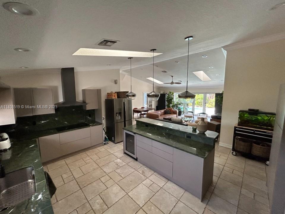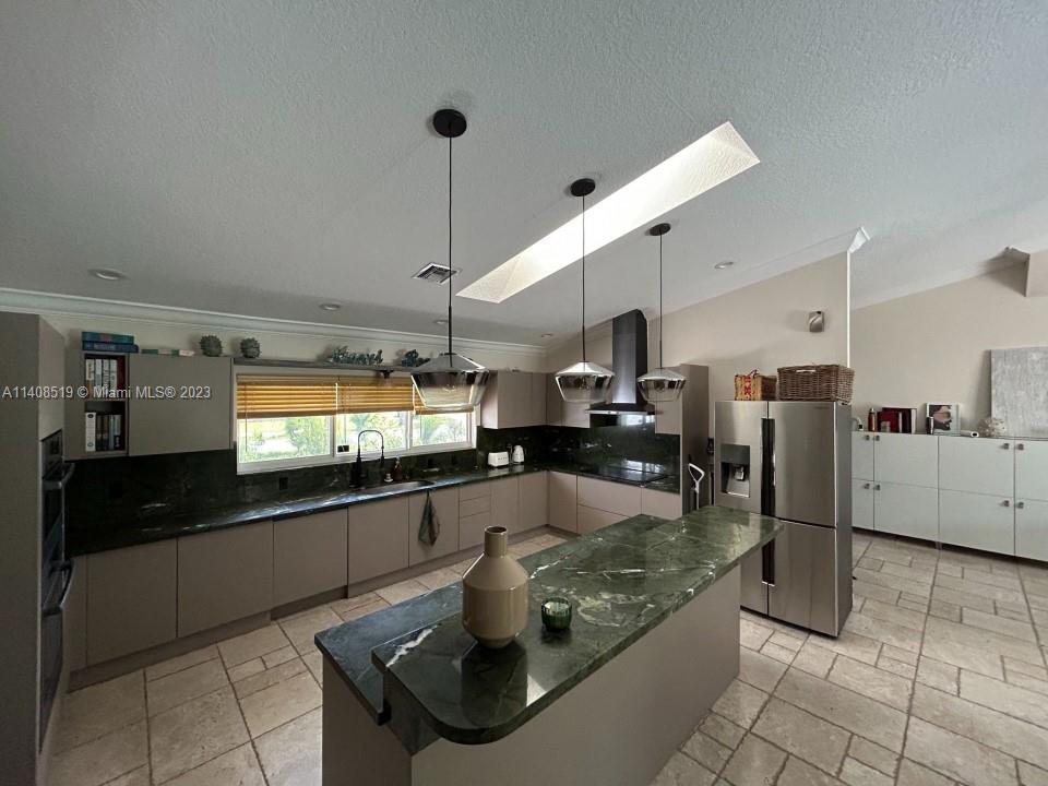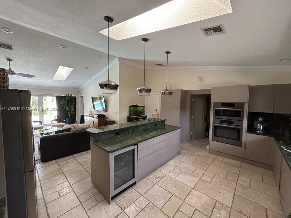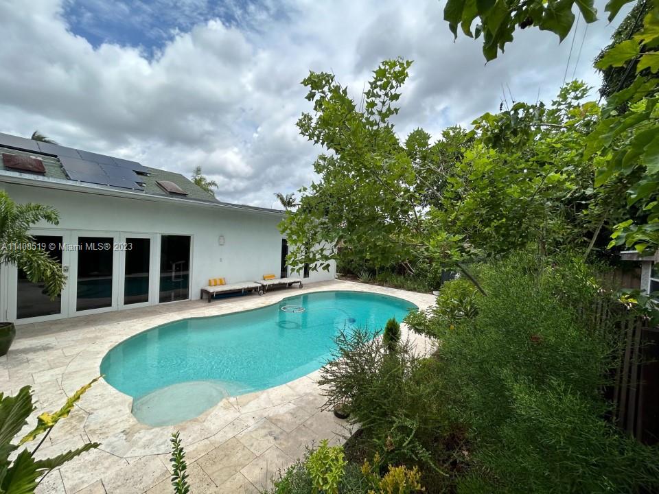 FURNISHED House totally rebuilt after a fire, finished in 2007. The roof was replaced, new electrical and plumbing installations. SOLAR PANELS, Impact windows, bamboo floors, marble floors. Skylights. Efficient tankless water heaters, Italian kitchen. NO FLOODING ZONE, NO HOMEOWNERS ASSOCIATION, walking distance from various praying centers and Synagogues. New HVAC system 5 ton 16 seer, Tesla charger setup, side gates, Native Florida garden and inground sprinkler system, electric efficient water heater tankless, Bathroom furniture hand-made to measure, New paint inside and out, roof pool patio refinished and insulated, Kitchen remodeling and new euro appliances high-end, New pool refinish and deck travertine, Saltwater pool system, pool heater, and pump, External generator (gas) and electr