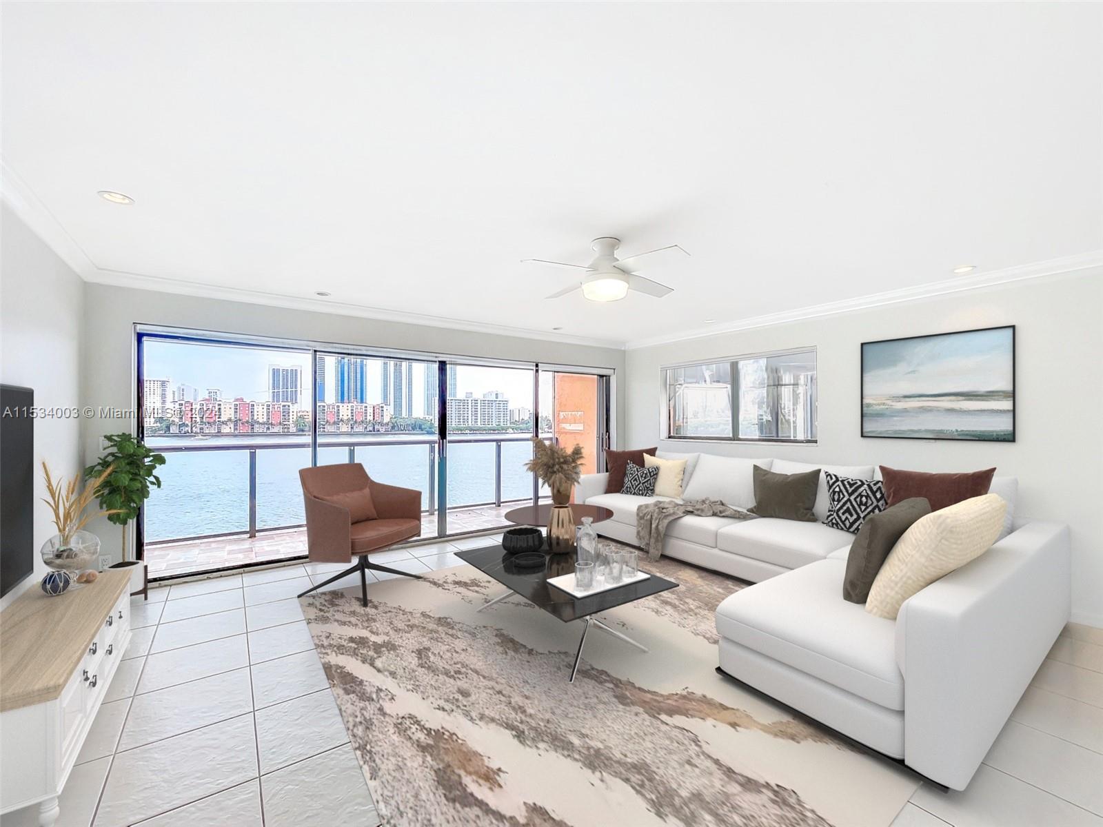 Experience luxurious waterfront living with stunning boat views in this exceptional condominium along the Intracoastal Waterway in Eastern Shores. The residence features 2 beds and 2 baths with 2 covered parking spaces. Enjoy the beautifully renovated kitchen, sliding glass doors, in-unit washer & dryer, and open balcony that offers breathtaking water views of the Intracoastal Waterway. The community provides many amenities such as a billiard room, swimming pool, sauna, exercise room, and plenty of guest parking. Conveniently situated near highly-rated schools, theaters, fine dining, Aventura Mall, Sunny Isles Beach, and Oleta River State Park. The association permits two large dogs. Enjoy this fantastic opportunity to embrace life in a waterfront community. Assmt will be paid at closing.