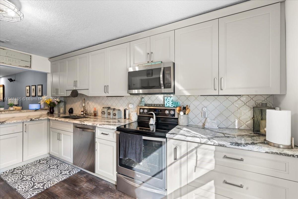 Discover serene lakeside living in Pembroke Pines, this turnkey ready, corner unit condo boasts 3 bedrooms, 2.5 bathrooms, remodeled kitchen with granite countertops, stainless-steel appliances, & laminate wood flooring. Newly remodeled bathrooms. Primary suite shower has sleek, glass doors. Daikin AC only 6 months old. Enjoy the tranquil lake view from your screened patio w/ stamped concrete floors, perfect for relaxing and entertaining. Condo is equipped w/ Accordion Shutters for added convenience. Great amenities including private community pool & handball courts. Association includes roof/roof repairs, insurance, building exterior, landscaping/lawn maintenance, common area, cable, internet, pool service, and trash removal. Located minutes from local parks, schools, and shopping.