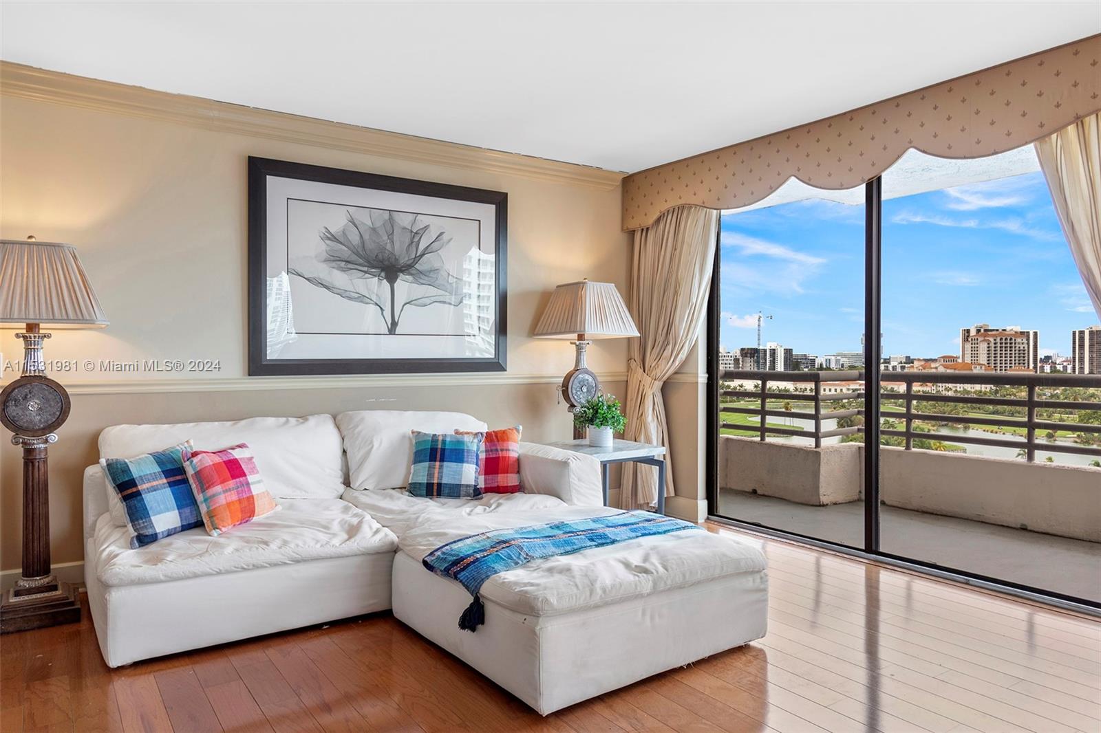 Experience stunning golf and water vistas from this remarkable corner apartment located in the vibrant heart of Aventura. The corner apartment rarely available for sale, features refined wood floors, an updated kitchen with stainless steel appliances, and a private balcony accessible from every room. The building boasts high-end amenities, including a lagoon-style pool, gym, sauna, valet services, and a lobby renovated by Steven G. Conveniently situated just steps away from the A-rated Aventura Charter School, Aventura Art Cultural Center, acclaimed restaurants, and the prestigious Aventura Mall. Easy access to beaches, I-95, and MiamiFort Lauderdale Airport. Easy to schedule a viewing!