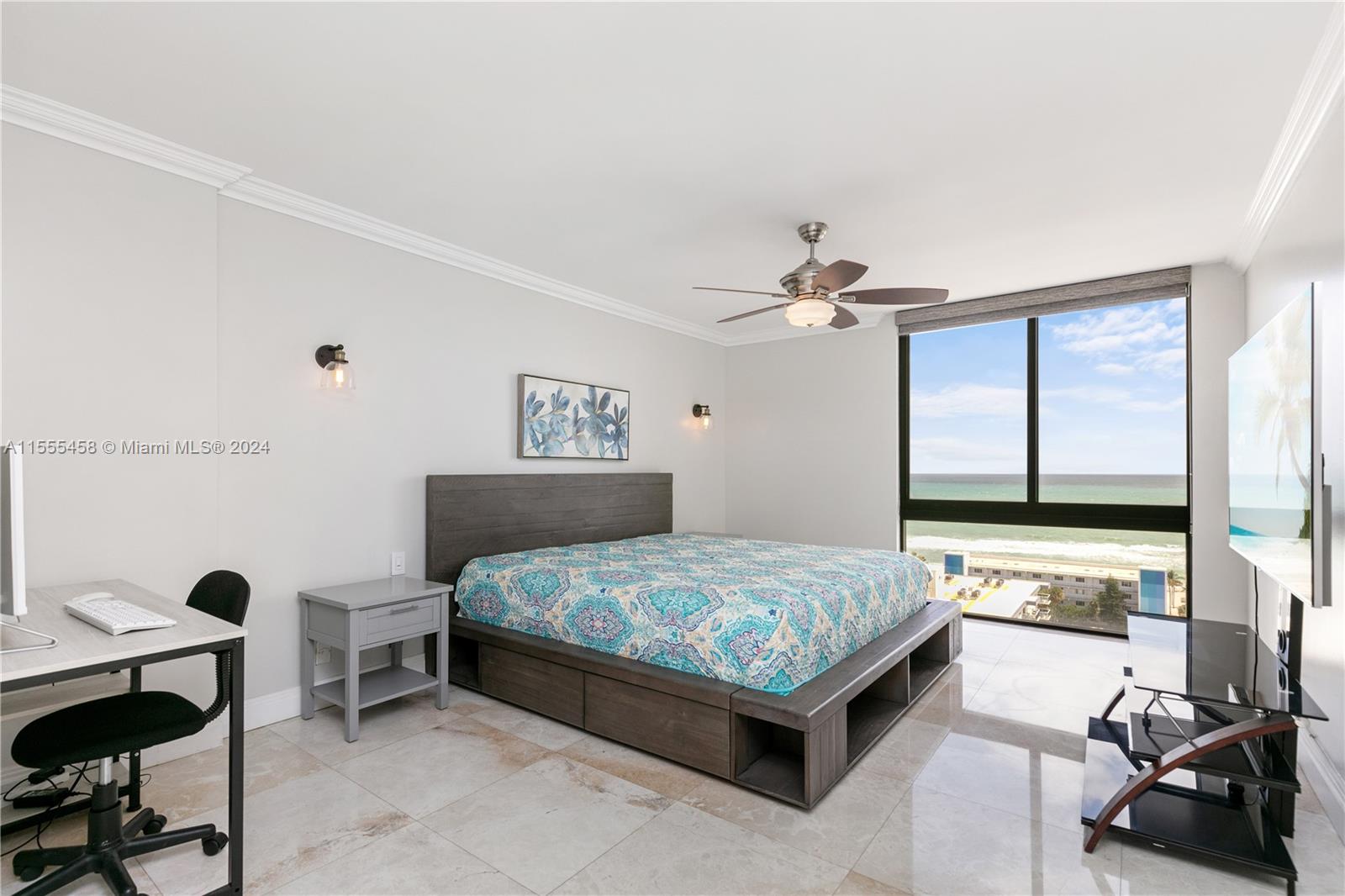Unobstracted ocean view as soon as you step in. Spacious unit is fully renovated with floor to ceiling windows. Brand new floor to ceiling windows and balcony door. Master bedroom has two persons jet shower and separate toilet. The second bedroom has a Murphy Bed can be used as an office. There is a jacuzzi in the second bathroom. Plenty of closets and built -ins. Open kitchen with high- end appliances. Steps from the beach located on intracoastal combining the best of both worlds: relaxing by the pool on intracoastal or on the beach. Close to FLL airport, Gulfstream, Aventura Mall, restaurants and Hollywood boardwalk. New Publix is being built few blocks away. Furniture and essential kitchenware are included so all you need is your toothbrush. Schedule your showing today.