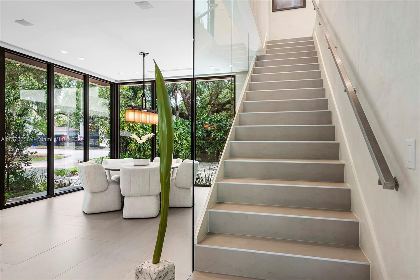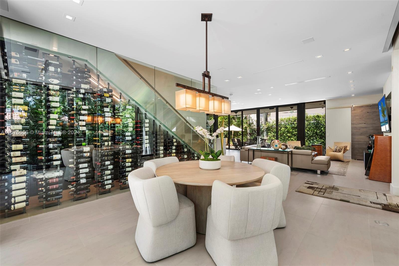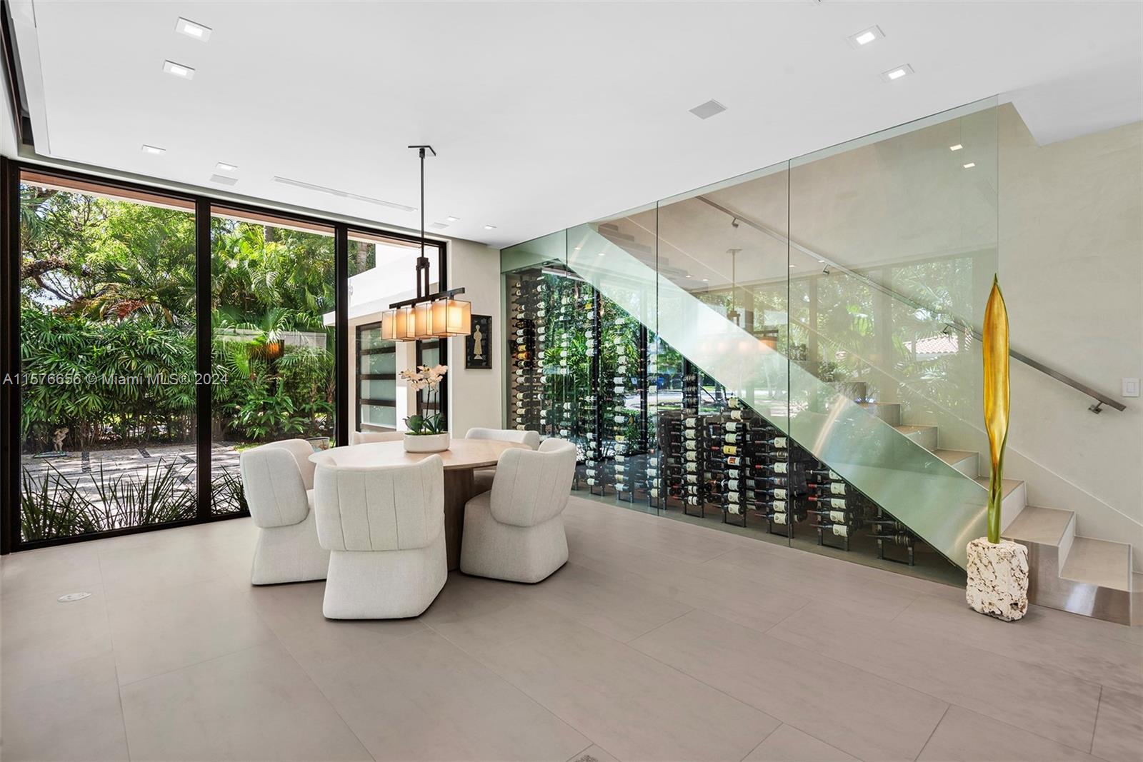 Modern Miami intersects wOld Grove in this contemporary masterpiece framed by mature palms, oaks lush gardens. Stately entry showcases dramatic 550-btl wine cellar. Soaring ceilings, porcelain floors, glass Venetian plaster walls expansive windows comprise the flowing interiors. Smarthome technology integrates premium Sound System Lutron LightingShades. Flr 1: Sublime Living Dining rms sleek, GE Monogram Kitchen wbreakfast bar Guest suite Laundry dbl Garage. Flr 2: 4 en suite Bdrms gorgeous Primary wwalk-in closet, elegant bath, private toilet, triple-waterfall shower, soaking tub, dbl vanities wide N balcony bonus S balcony. Exterior: Grandly scaled covered Terrace Pool full-house generator. Idyllic, luxurious, effortless SoFla living 5 minutes to downtown Grove