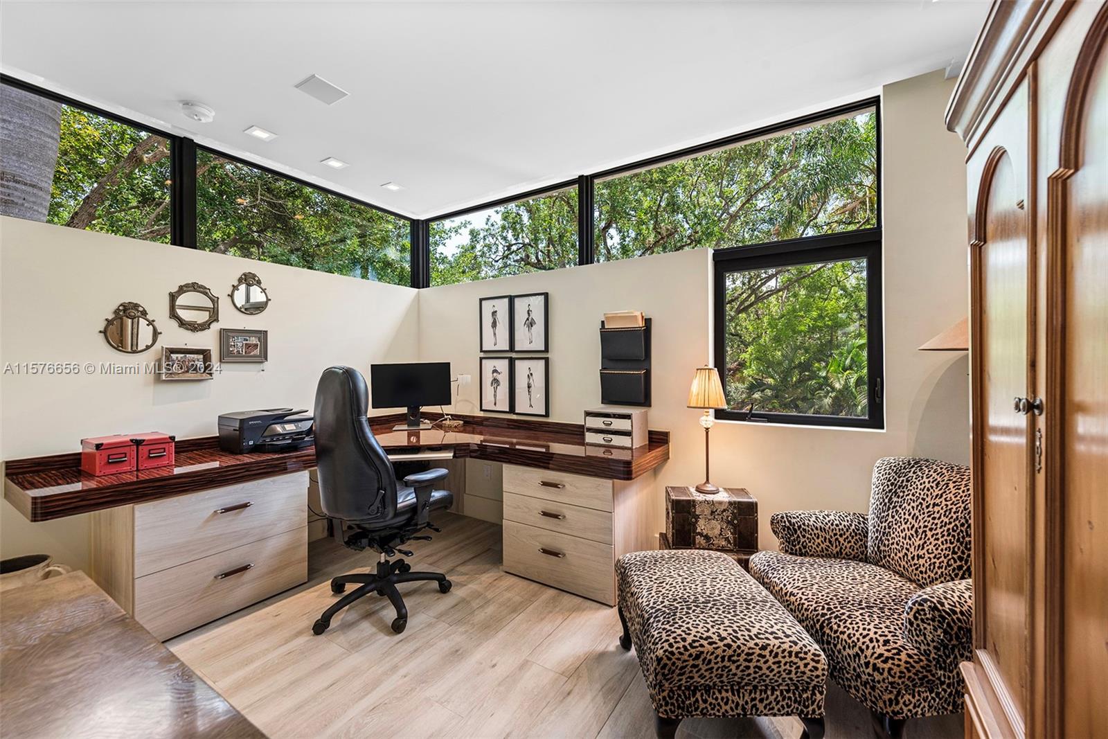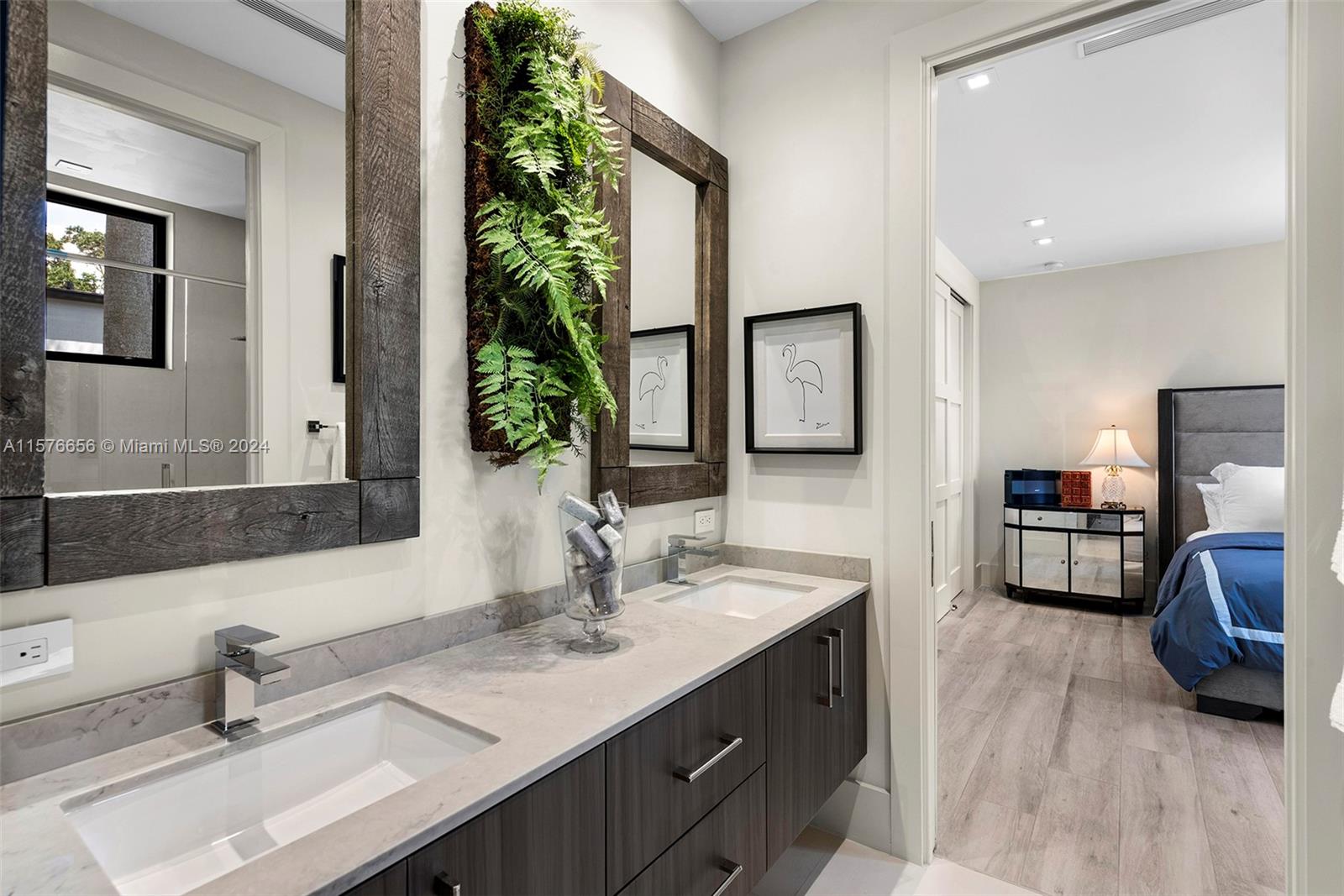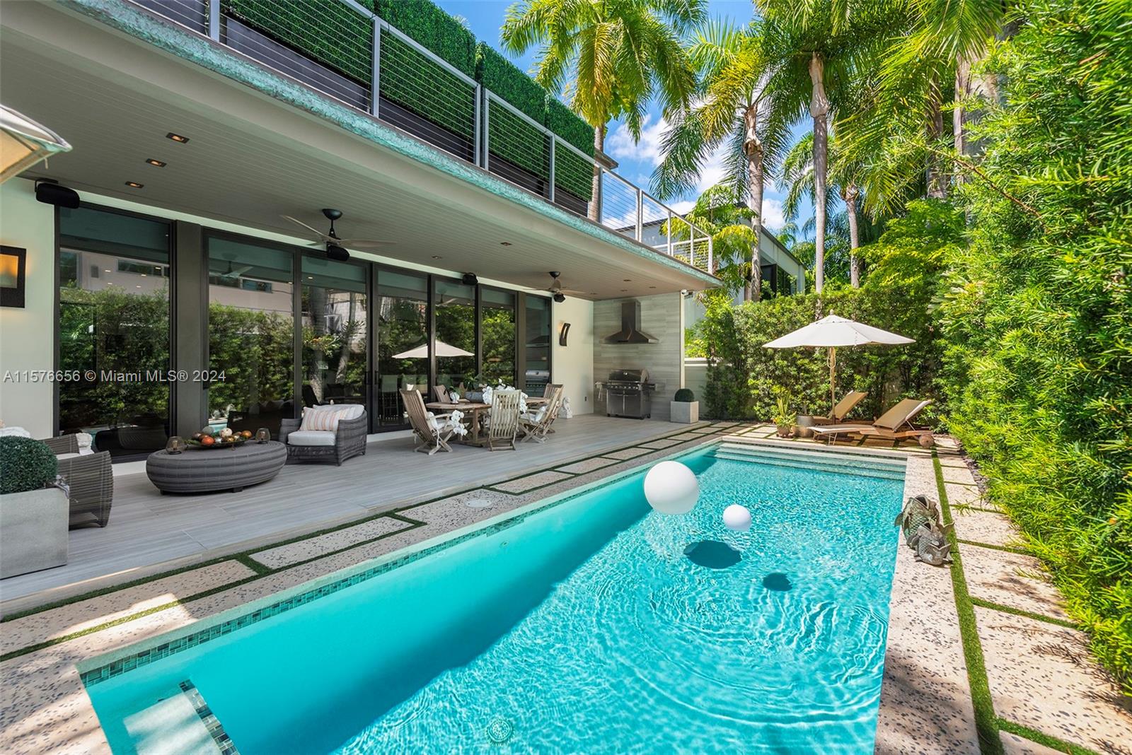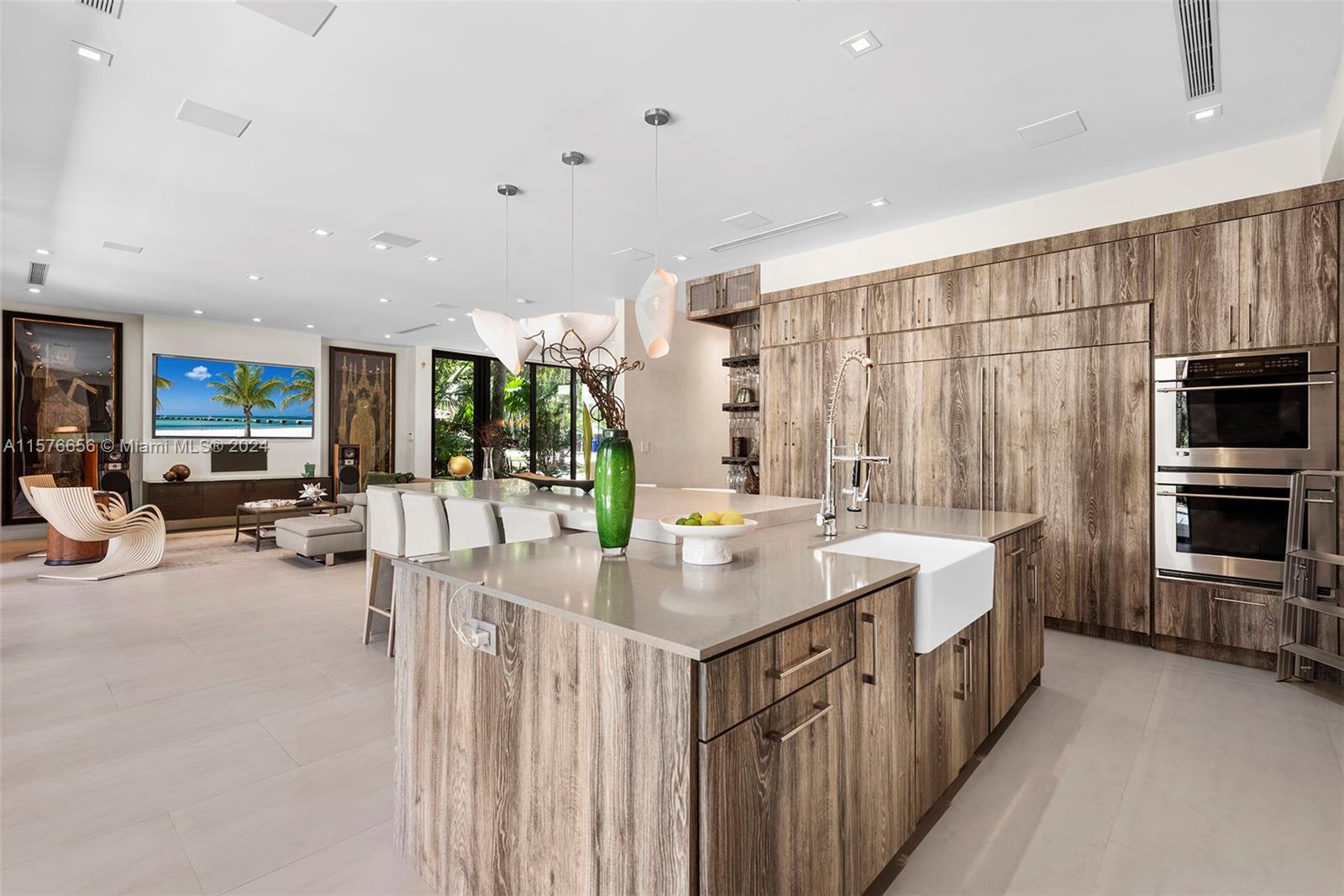 Modern Miami intersects wOld Grove in this contemporary masterpiece framed by mature palms, oaks lush gardens. Stately entry showcases dramatic 550-btl wine cellar. Soaring ceilings, porcelain floors, glass Venetian plaster walls expansive windows comprise the flowing interiors. Smarthome technology integrates premium Sound System Lutron LightingShades. Flr 1: Sublime Living Dining rms sleek, GE Monogram Kitchen wbreakfast bar Guest suite Laundry dbl Garage. Flr 2: 4 en suite Bdrms gorgeous Primary wwalk-in closet, elegant bath, private toilet, triple-waterfall shower, soaking tub, dbl vanities wide N balcony bonus S balcony. Exterior: Grandly scaled covered Terrace Pool full-house generator. Idyllic, luxurious, effortless SoFla living 5 minutes to downtown Grove