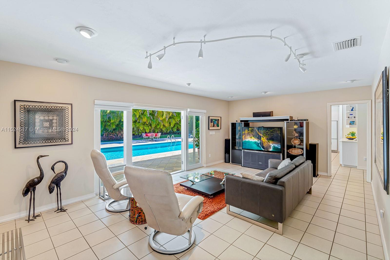 Welcome to this spacious, thoughtfully designed home in guard-gated Gables by the Sea. This 5-bedroom home features a foyer entry, formal living and dining, and a vast and light-filled family room and kitchen with French doors leading to saltwater pool and patio. The primary bedroom is large and private, with double walk-in closets and fully renovated bathroom. Spanish porcelain tile flooring throughout, impact windows and Kevlar hurricane screens for full protection, 2023 roof, new AC, ample storage/closet space, top notch appliances and water softener system. Enjoy the neighborhood park across the street, which becomes an extension of your backyard, and walk to the bay for beautiful sunsets. This home offers it all for safe, family-friendly living in a no flood zone!