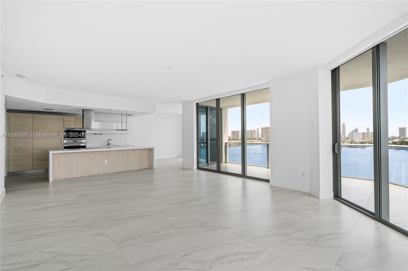 Step into an exquisite 3-bedroom, 3.5-bathroom residence with spectacular views of the bay and ocean. This captivating residence showcases elegant Snaidero cabinetry, complemented by high-quality Miele, Subzero, and Bosch appliances. Nestled in a luxurious building with an array of amenities, your comfort is ensured. Included in the price is Private Dock Slip #105. Measuring 40'x17', it is ideal for yachts or large boats, offering generous dimensions for secure mooring.