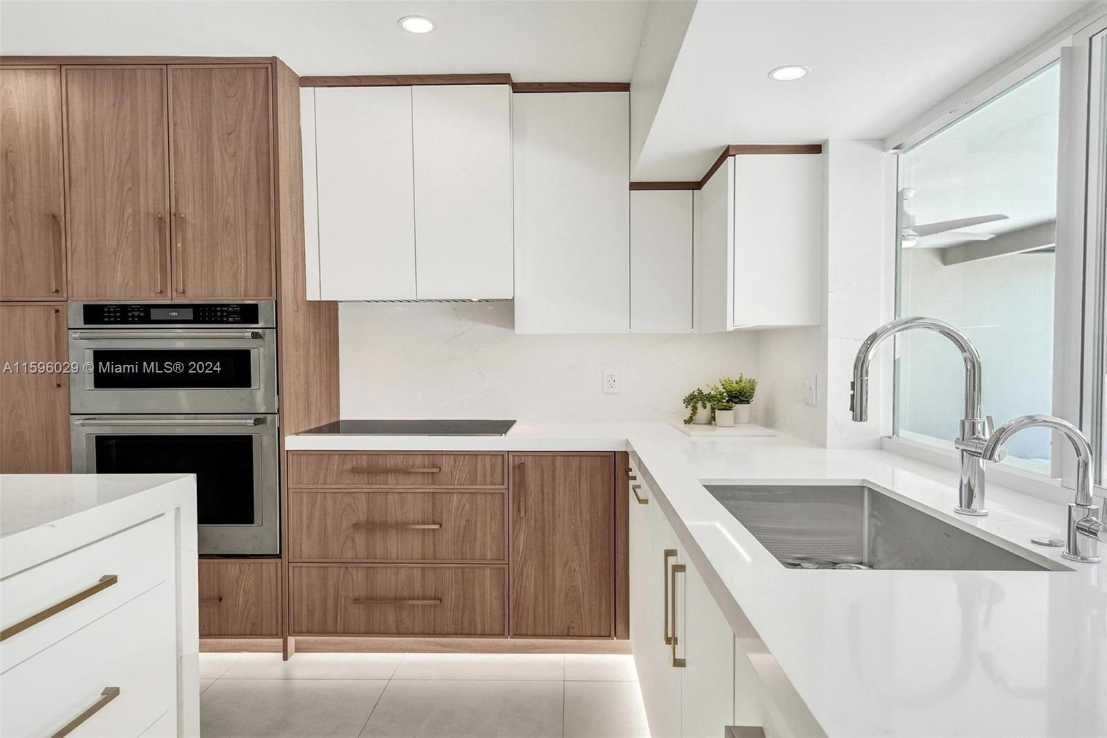 Beautiful fully renovated home in desirable Hollywood Hills. High-end renovation no expense was speared! Porcelanosa tile throughout, Silestone countertops, high-end appliances, custom panel refrigerator and dishwasher, builtin buffet, Hansgrohe shower fixtures and faucets, custom closets and ambiance lighting throughout and open floor plan turn this house into your dream family home! Charming completely private backyard with covered marble deck, tiki hut, artificial turf, matured landscaping and irrigation. Air-conditioned garage with tile floor, custom storage cabinets and quartz countertops. Electric car charger. This house is a must see!