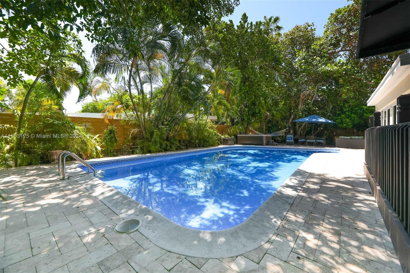 New On the Market! Beautiful Spanish Mediterranean Home On mid-Miami Beach. Situated in a most desirable location on a quiet one block street in Mid-Beach, this beautiful Spanish Mediterranean home offers close to 3,500 square feet of well-appointed living space. It features a bright, large, newly renovated kitchen, 5 bedrooms and 4.5 baths, a spacious dining room, crisp, contemporary in-law/office suite, and a warmly furnished den overlooking the spectacular back yard with an oversized newly rebuilt heated pool, 6-person hot tub, tree house, play area, outdoor living and dining areas, breakfast patio, and lush old growth trees. With an almost 10,000 square ft. magnificently landscaped lot, it's like living in your own glorious resort setting!