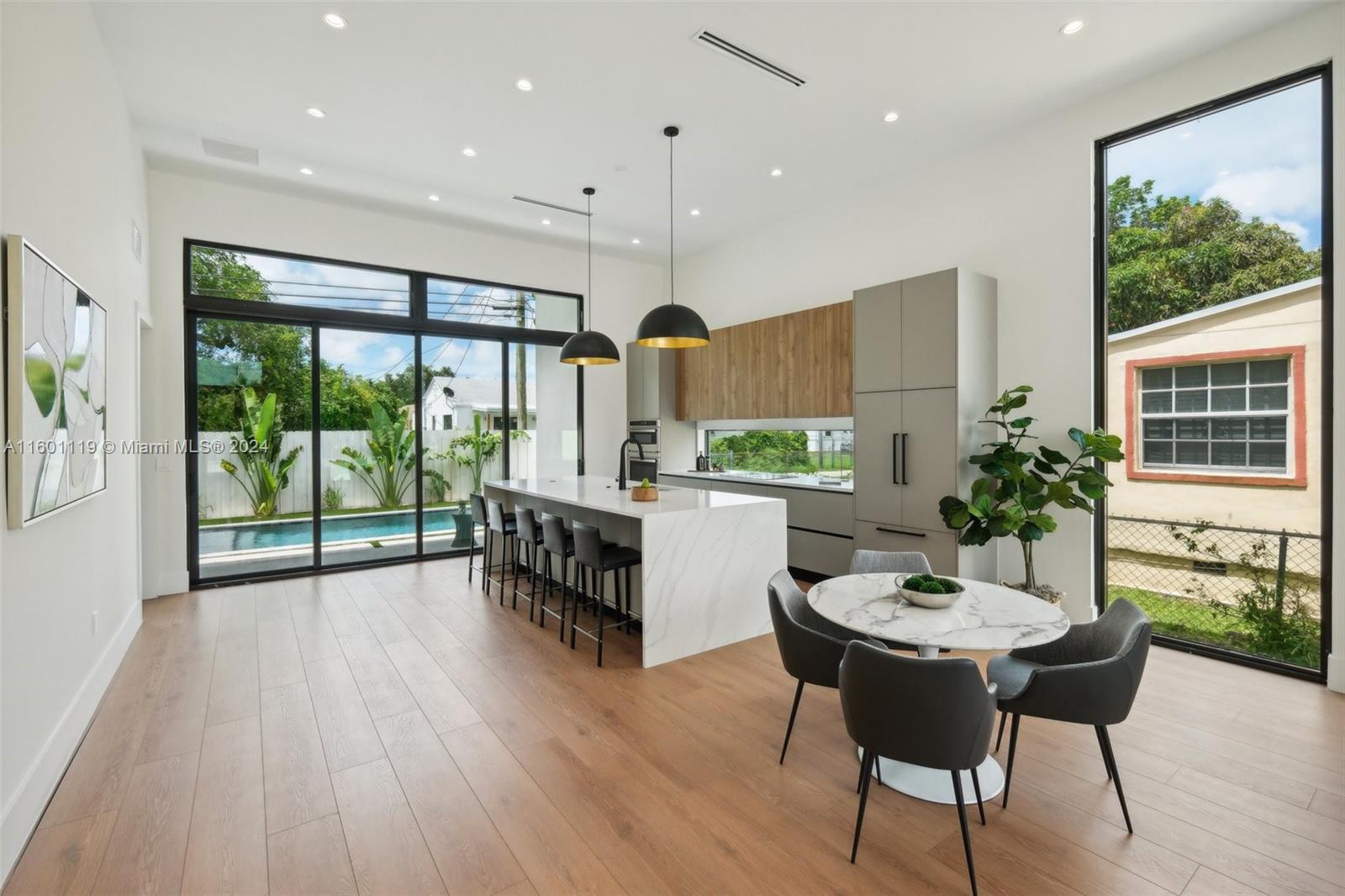 The 1st of 3 NEW BUILD LUXURY homes being built on the same block! Each one a unique model minutes from Miami Design District. This 2024 new construction recently completed has 3-beds, 2-baths & office in over 2100 sq ft of living space. The large eat-in chef's kitchen (w/10' marble island) has immediate access to the salt-water pool & outdoor patio area. Surrounded with 10' impact windows & 13' ceilings where modern style architecture brings in the perfect sun filled & green outdoor Miami feel to your kitchen and living spaces. Large master w/floor to ceiling tiled-shower & soaking tub in addition to a spacious walk-in closet. Minutes from Wynwood, 10 mins from Miami Beach and with direct access to I-95 this home is Miami 305! NO FLOOD INSURANCE REQUIRED. NOT IN A FLOOD ZONE.