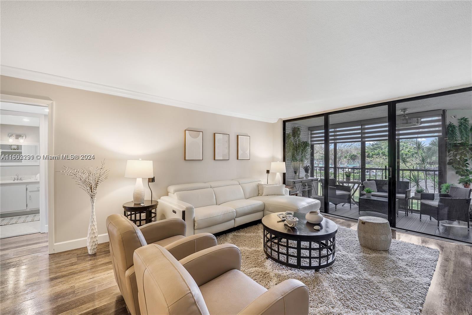 Stunning 2-bedroom, 2.5-bath condo in the vibrant community of Country Club Village in Weston. This fully remodeled second-floor unit boasts a split layout with two en-suite bedrooms and a half bath for guests in the foyer. The living areas, bedrooms, and screened porch feature elegant vinyl wood-like floors. The spacious kitchen offers room for dining, and the modern laundry room includes a washer, dryer, and overhead storage. Relax on the serene screened-in porch accessible from both the living room and master bedroom. Enjoy community amenities such as a pool, tennis courts, lakes, golf course, kids' playground, basketball, and a town center club with various lifestyle classes. A well-maintained lobby, elevator, and security entrance enhance the appeal of this beautiful home. NO PETS!
