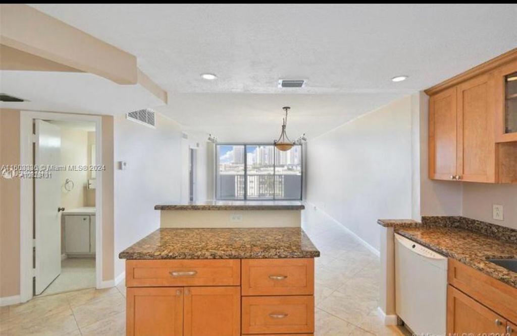 Includes 30ft deeded dock with electric and water. No fixed bridges and 15-minute ride to Haulover cut. The apartment is spacious and updated one bedroom and one and a half bath. Located in the beautiful, gated community of Eastern Shores. Open kitchen with granite counter tops. Beautiful north view of the Eastern Shores canals and the intracoastal from the 7th floor balcony. Fifteen-minute walk to the beach. Just five-minute walk to numerous restaurants, shopping, and IPIC movie theater. The building has received its 50-year certification. Recently completed painting, concrete restoration and installation of new elevators.