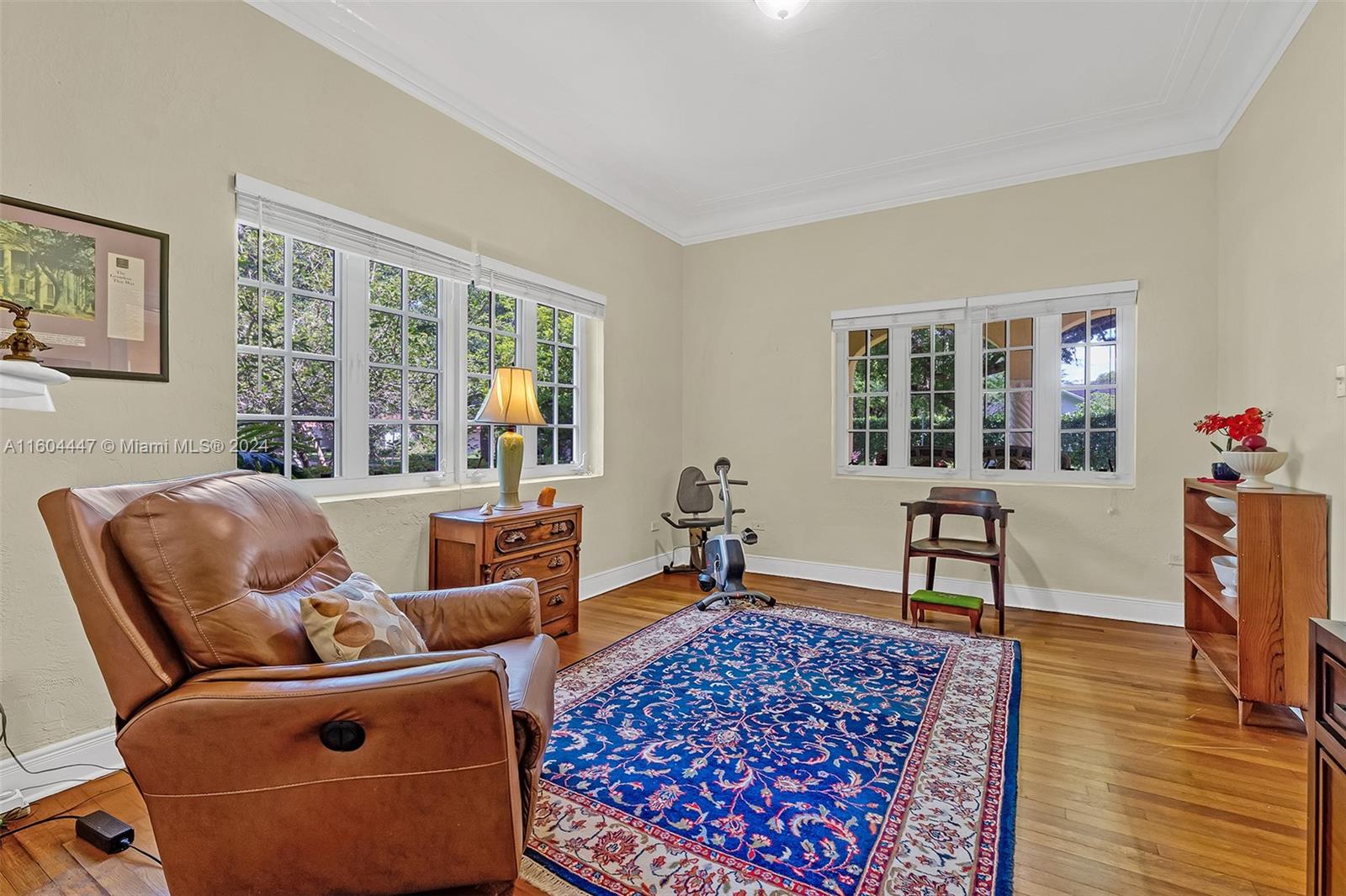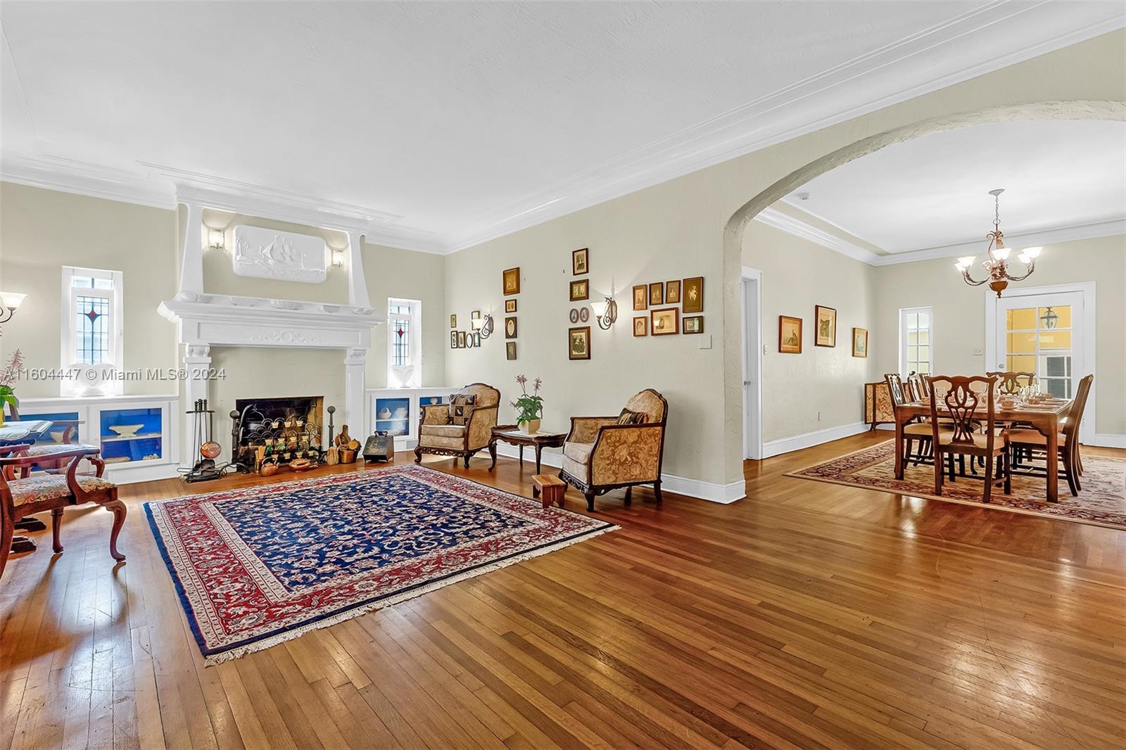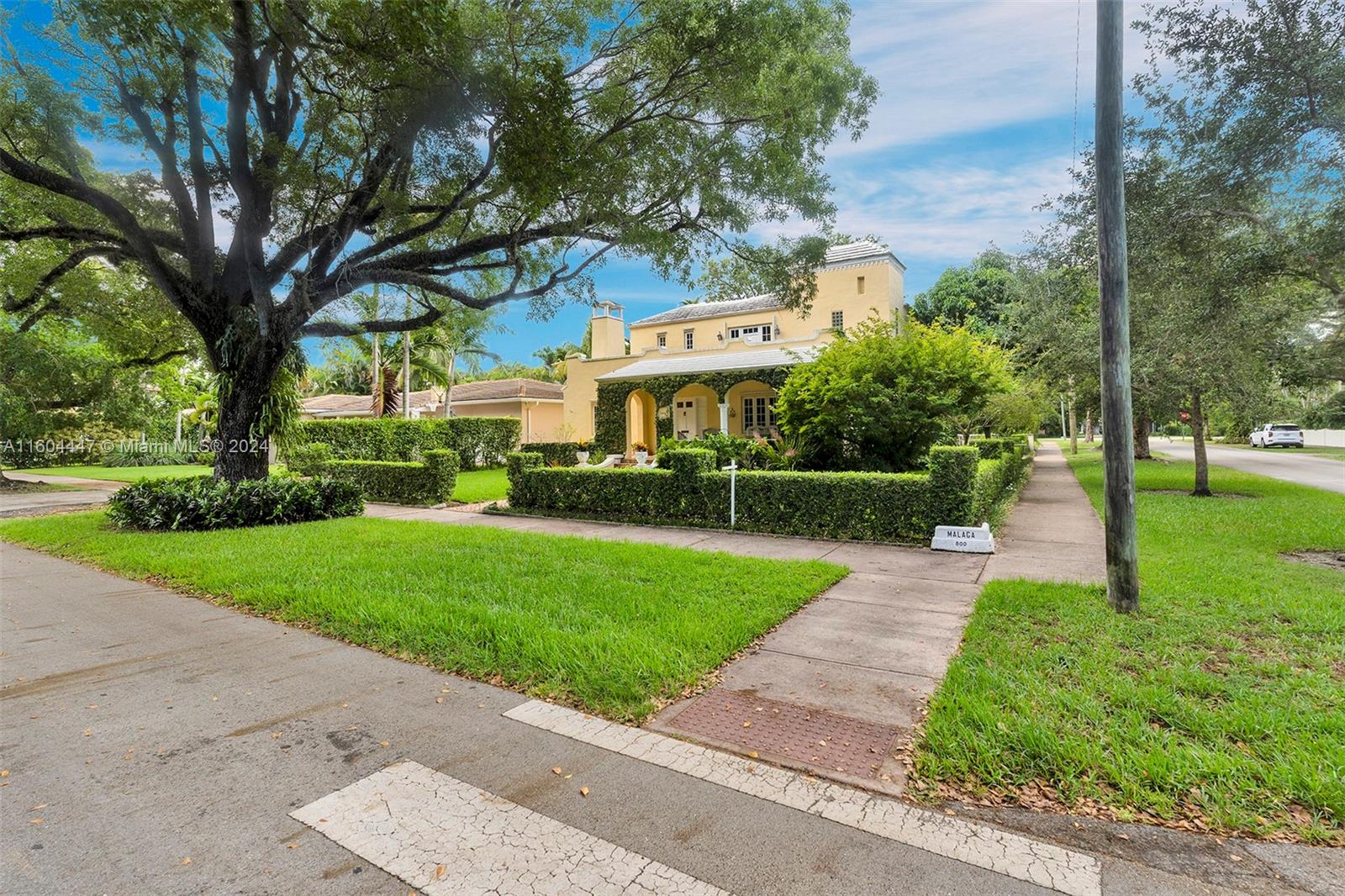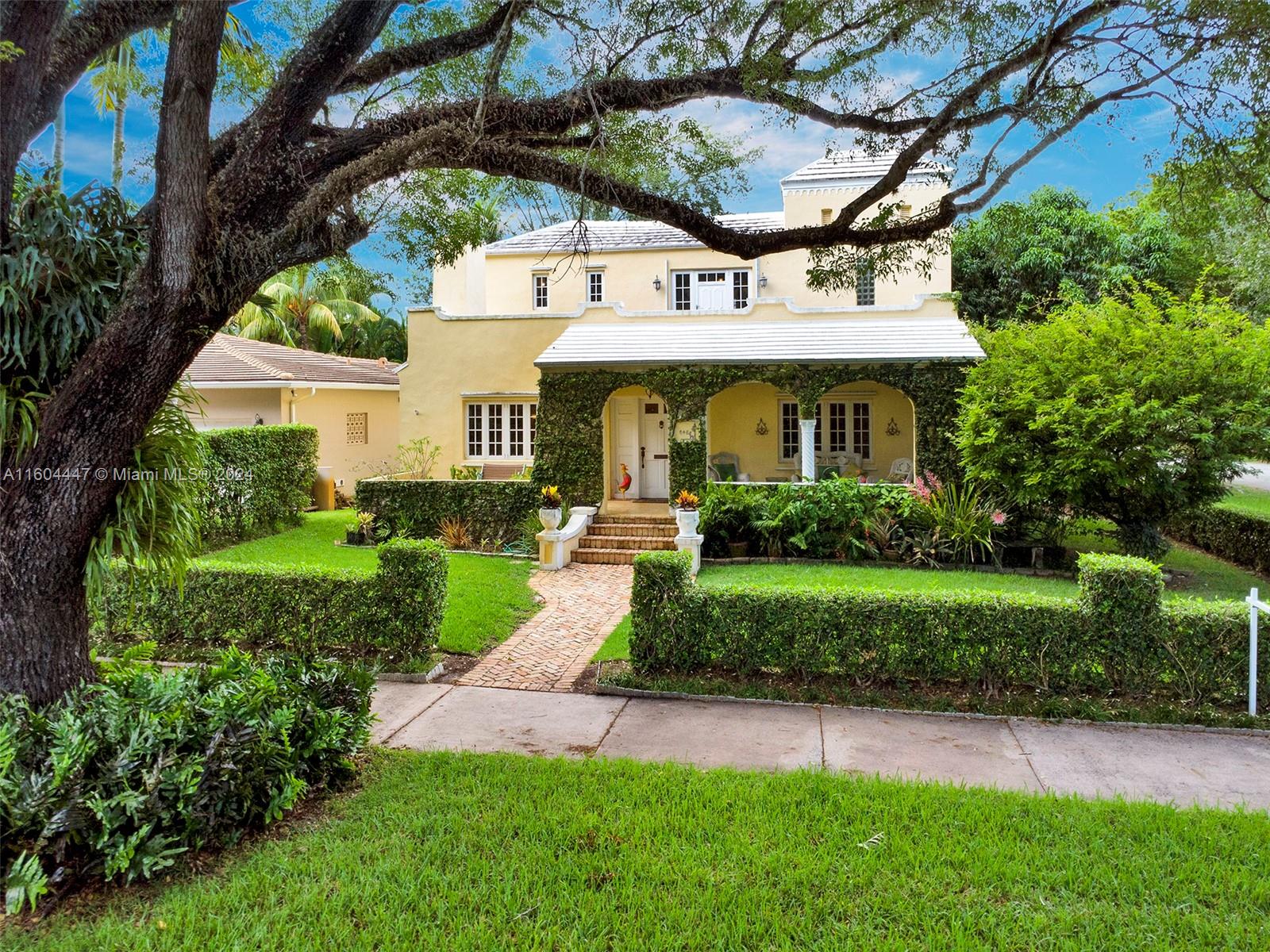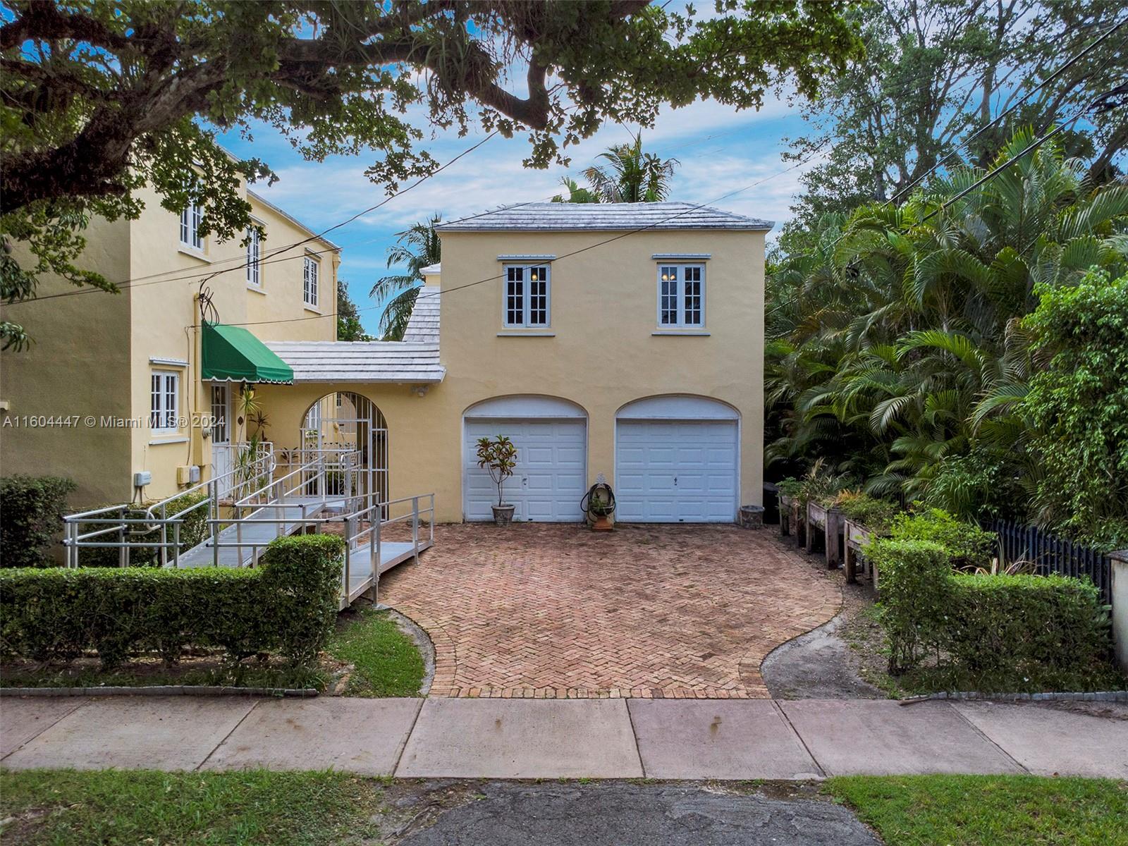 This classic Old Spanish is a true must see starting from roofed front porch entry! Gracious 36x15 ft living area with original fireplace opens to 20x13 ft dining room ideal for entertaining plus chef's kitchen completely remodeled in 2009 with new expanded kitchen cabinets and island with granite counters. First floor includes 15x12 family room and 14x13 primary suite. Original oak floors. Second floor includes open area ideal for office/crafts/playroom, 2 large bedrooms and bath. Corner property has side street entry to 2 car garage building with upstairs 1/1 guest/in-law quarters. Just 3 blocks to Biltmore Hotel, golf and tennis, Youth Center and Venetian Pool. Short distance to Miracle Mile, Merrick Park and airport.