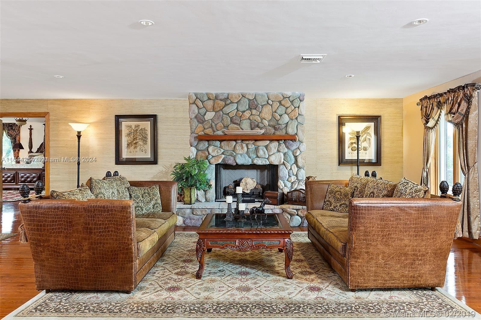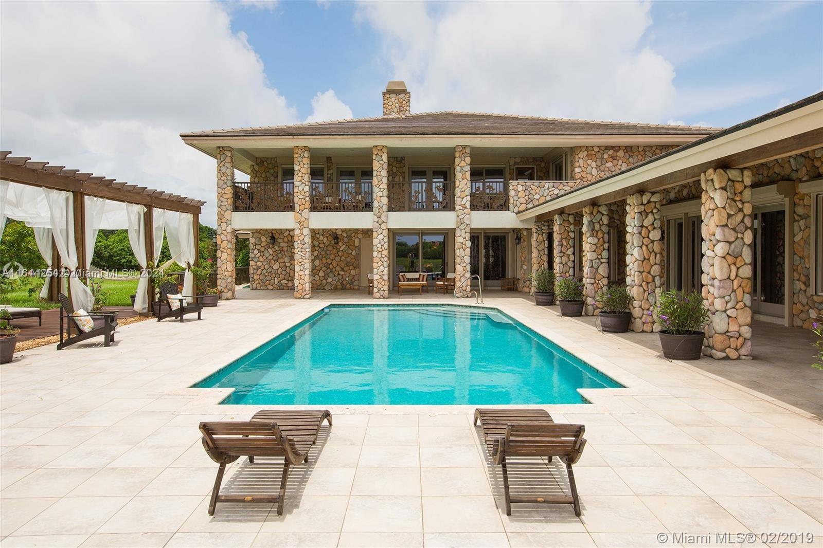 Welcome to Yellowstone Ranch, located in one of Davie's most desired areas, is a truly unique estate set on 8.5 acres. This 12,400 sf mansion offers unmatched seclusion with its private gate and long driveway. The house is immersed with real river rocks that give it a special character. Inside, you'll find 6 bedrooms, 6/2 bathrooms, an Irish pub, elevator, a grand kitchen, and more. The property has a private, gated, 650 ft side road, which leads to the 5 acre parcel in the back. The parcel can accommodate another estate, compound, or even 5 houses if desired. Owner has plans for a 30,000 sf mega house. Located near 'A' level schools, highways, centers, 15 minutes aways from Ft Lauderdale International Airport, and more. Property was featured on HBO's show 'Ballers' multiple times.
