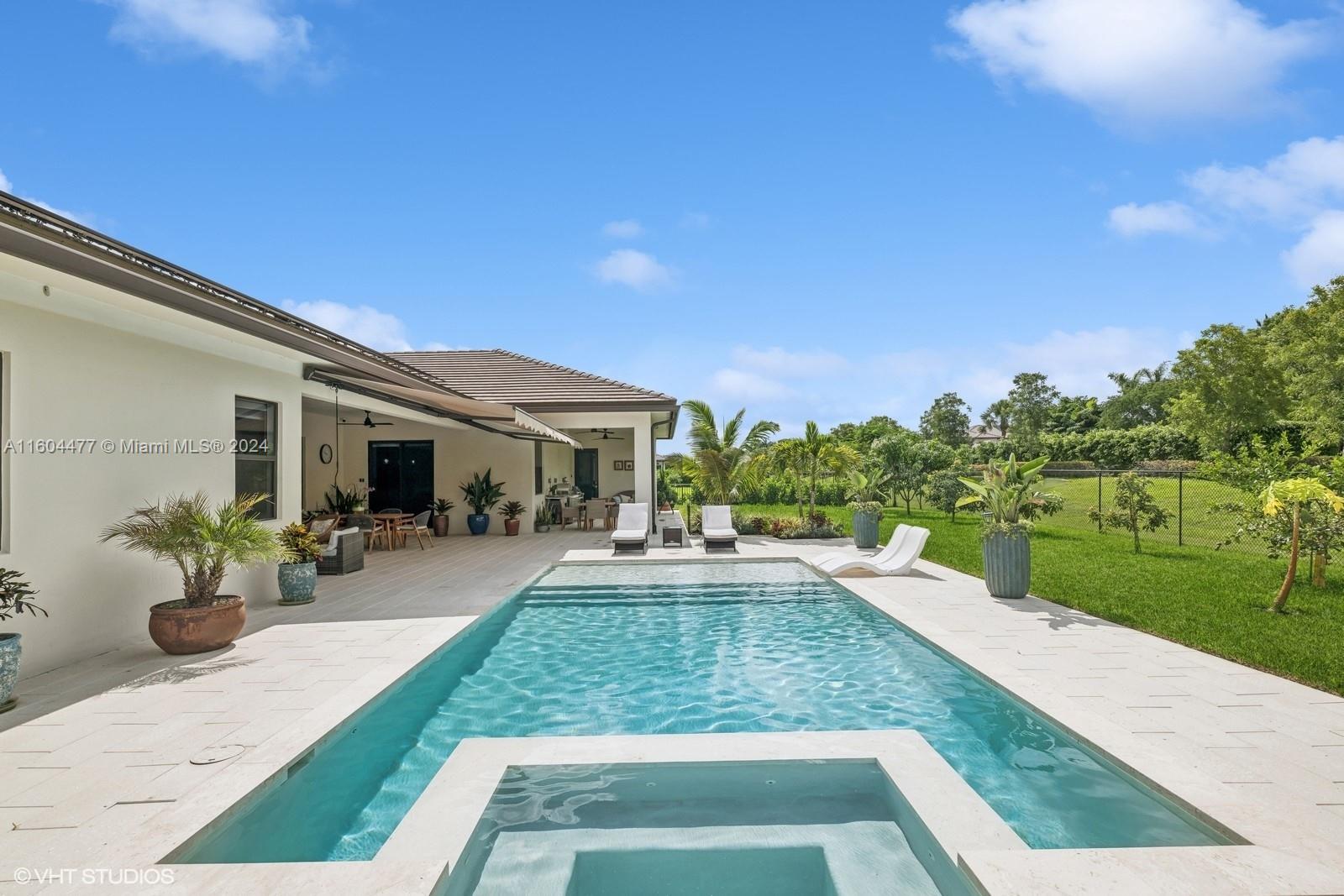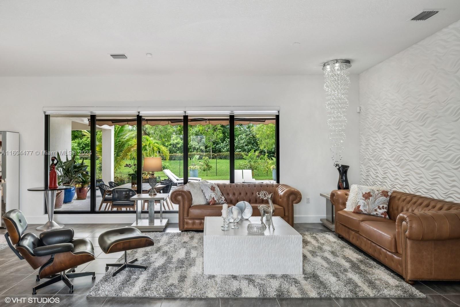 Sierra Ranches most energy efficient house for sale. Amazingly done split plan 1 story w/10-foot ceiling. Tile floor in living area, 6 beds 5 full baths (one of them used as built in office) 3 car garage w/ custom cabinets/gym. Oversized master bed w/Custom made his/hers closet. Master bath with double shower heads, separated jacuzzi and dual sinks. 2 central A/c units. Open kitchen/ quartz countertop, SS appliances & extra-large pantry. Separated laundry. Oversized retractable awing for the patio. 33 solar panels just installed. Covered Summer kitchen all equipped. Well water, w/ 5 sections of sprinklers. Lavish landscaped with abundance of fruit trees. Oversized driveway w/ space for 5 cars besides a 3-car garage. NO neighbors in the back, very private. Gated community. Easy to show!