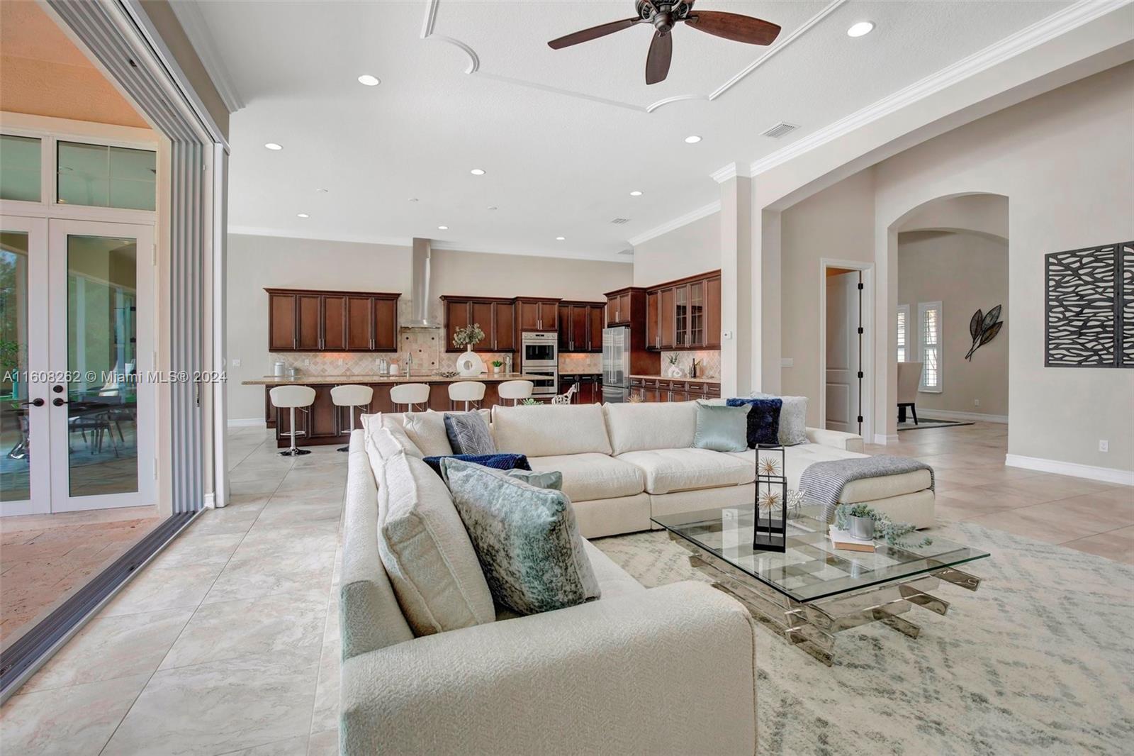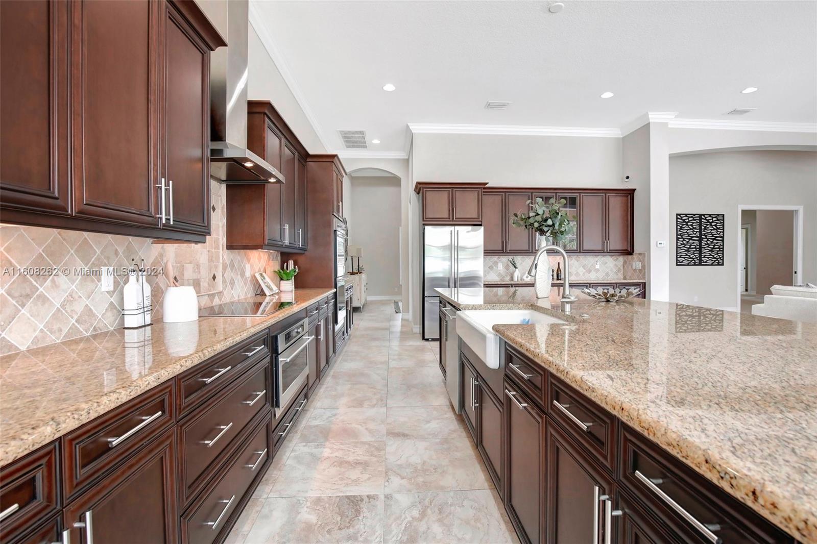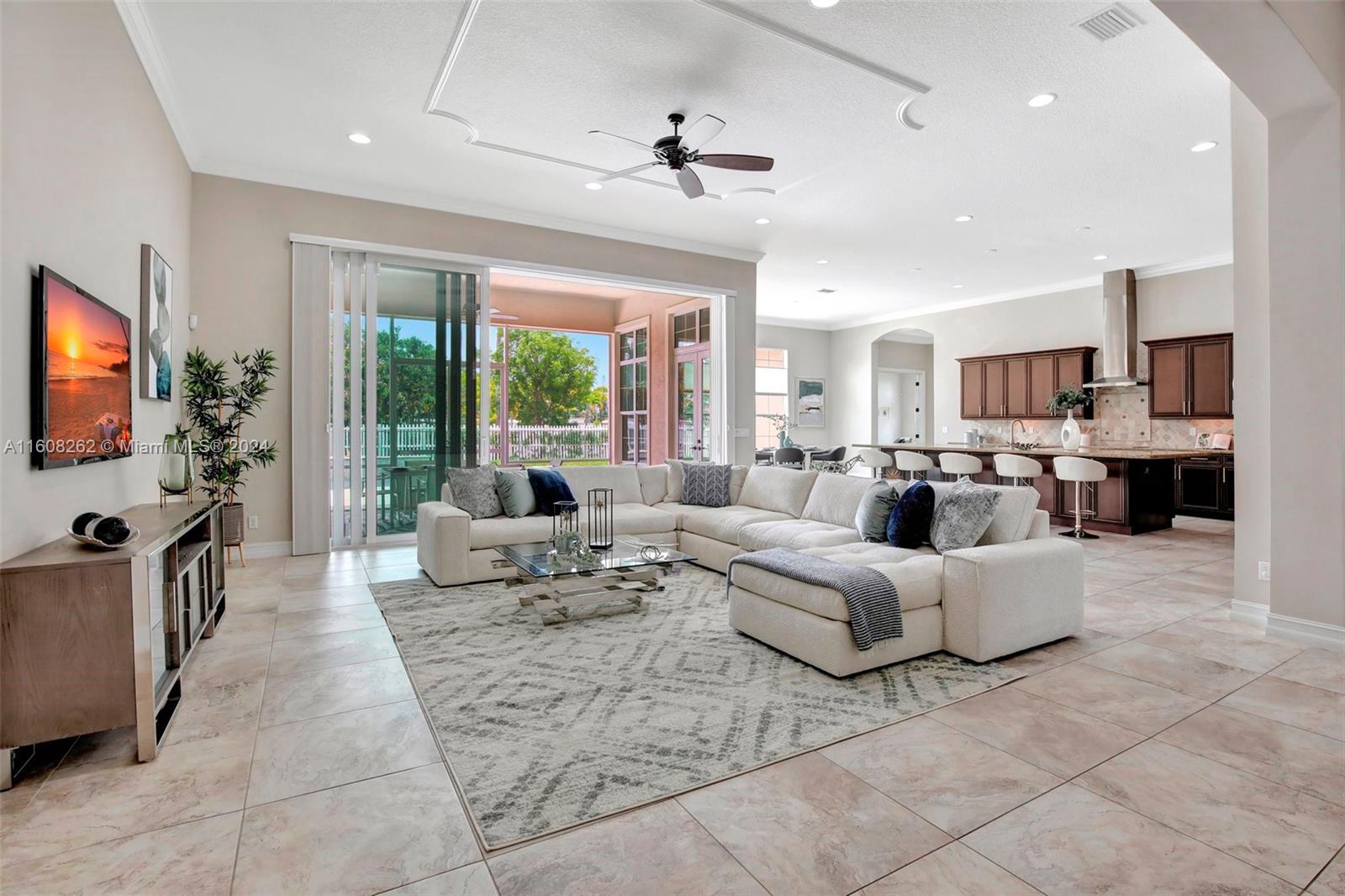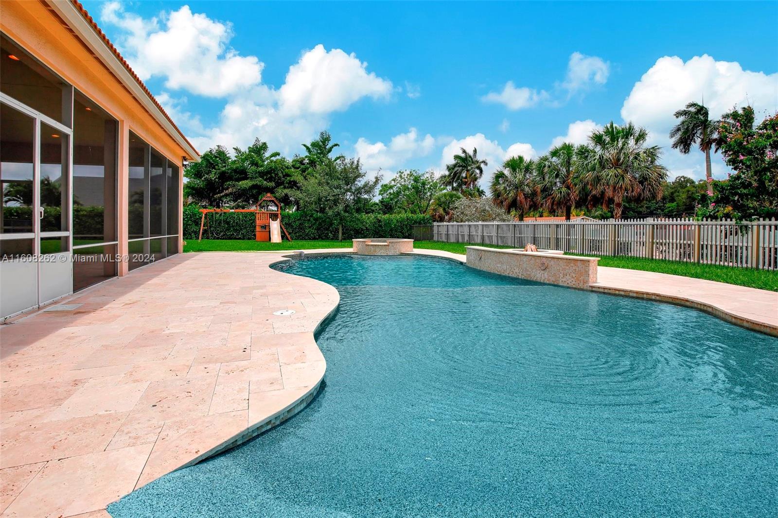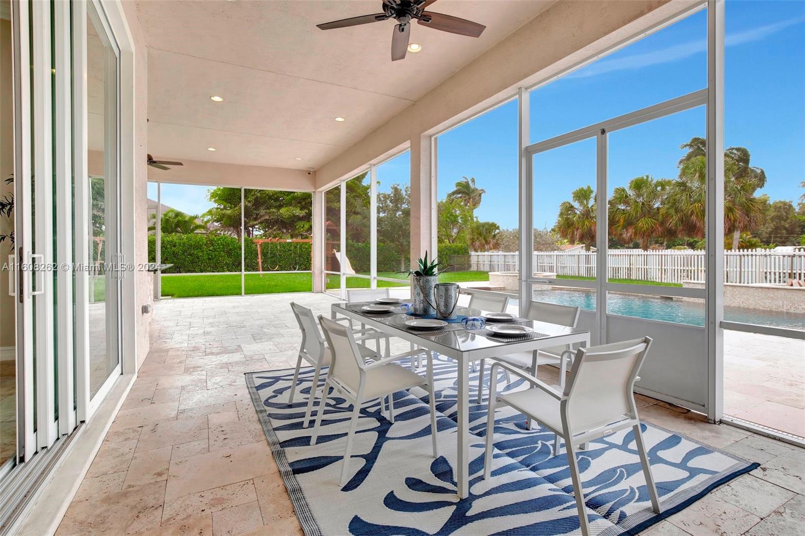 Experience luxury living in this magnificent Hawthorne model home on sprawling .80-acre lot 5 bedroom, one is used as office, 4.5 bath with flex space, this residence offers spacious and adaptable living. Culinary enthusiasts will revel in chef's kitchen, complete with granite countertops and top-of-the-line GE Monogram appliances. True oasis awaits with beach-entry saltwater heated pool and raised spa, all surrounded by travertine. Screened patio, featuring an outdoor kitchen, is perfect for year-round enjoyment. This home is equipped with impact windows and power outlet for generator. HOA fee covers lawn cutting and tree trimming. Living in Sterling Ranch combines luxury and convenience with prime location near major highways and attractions.