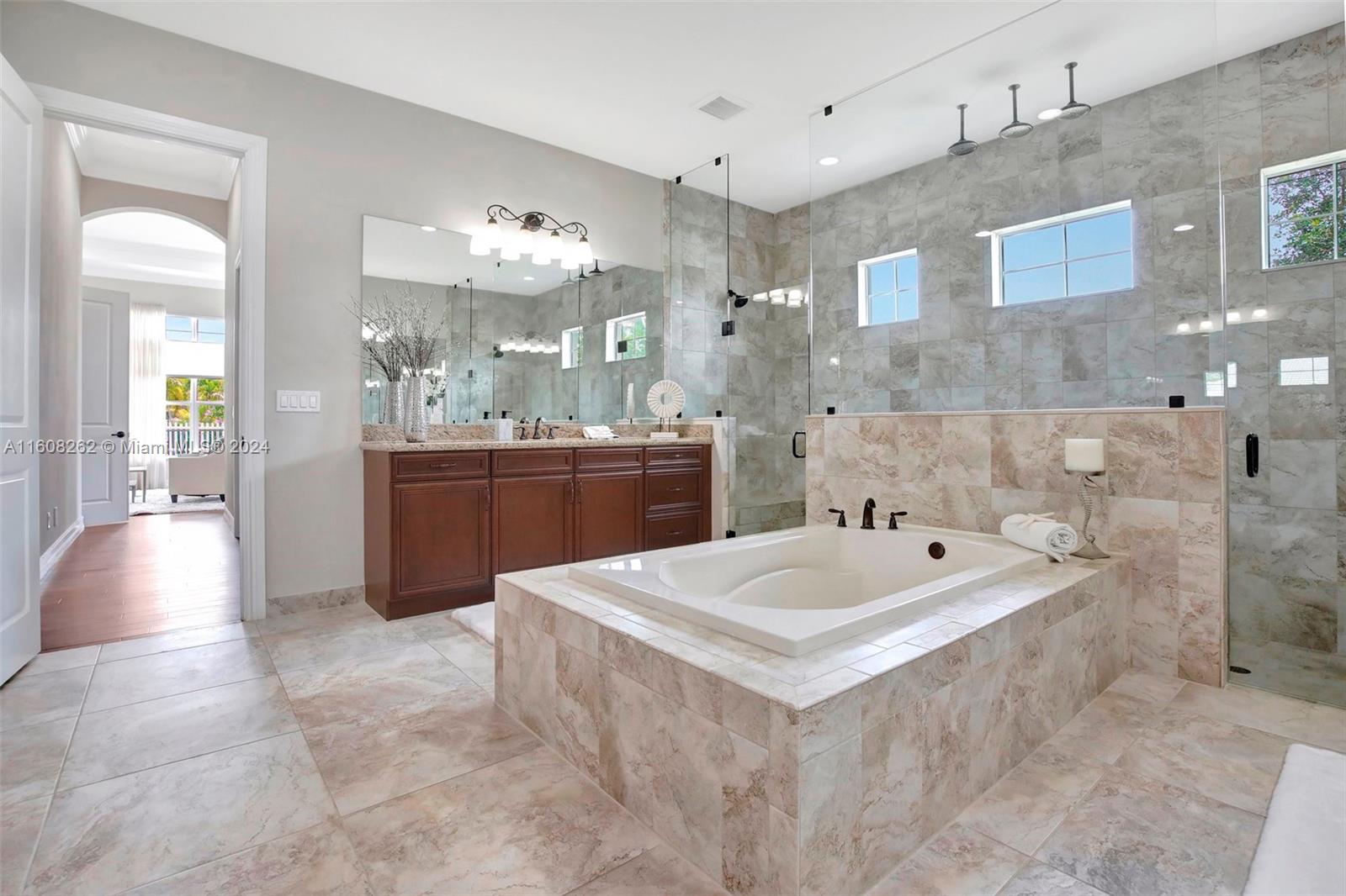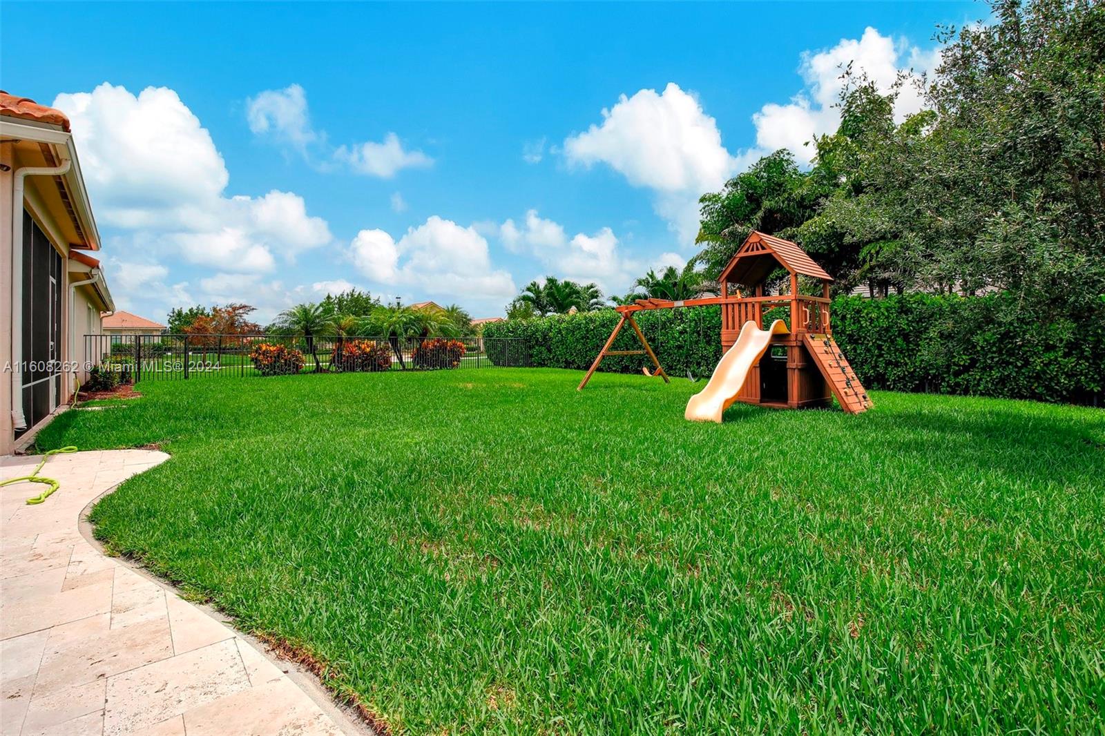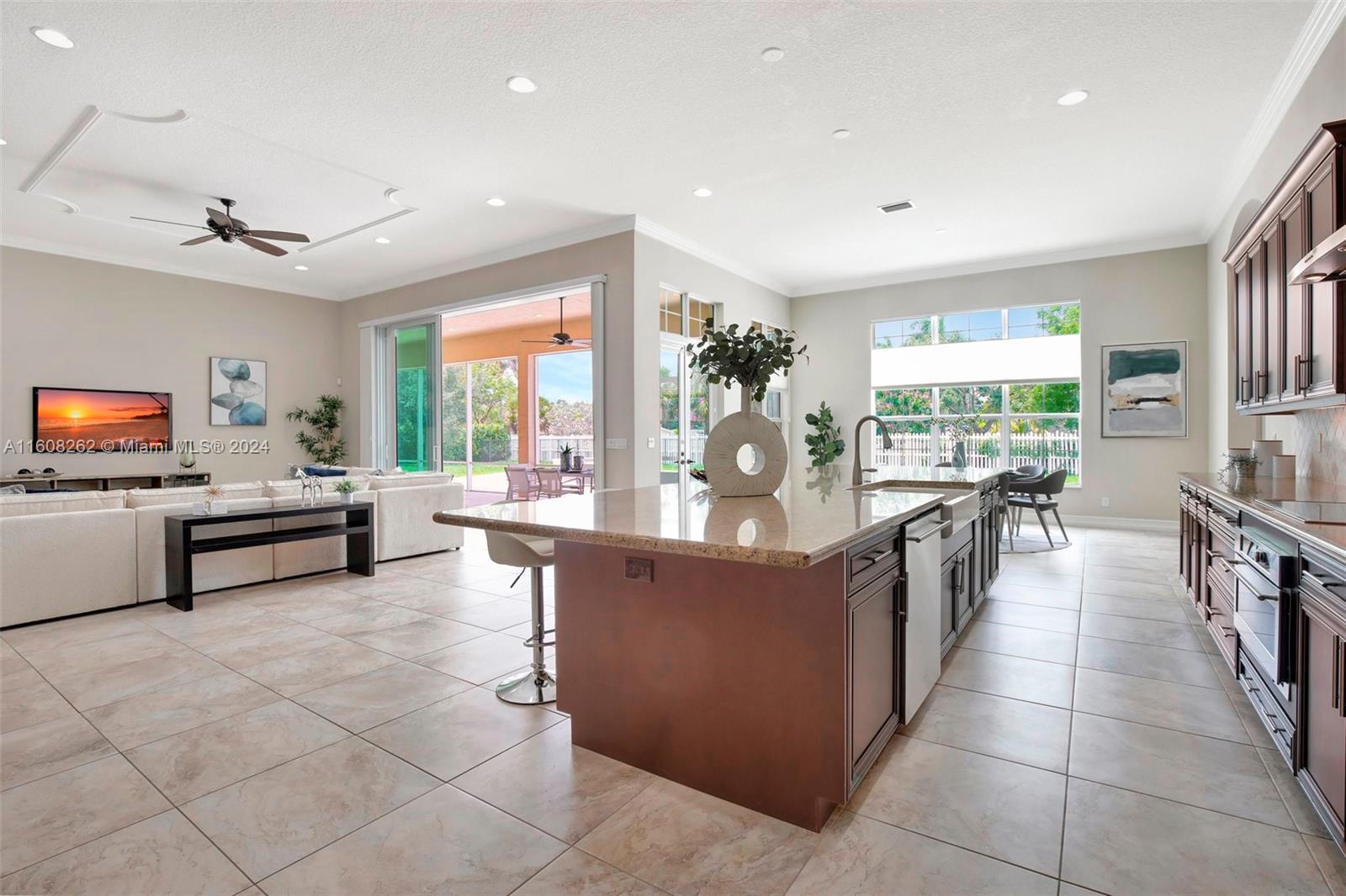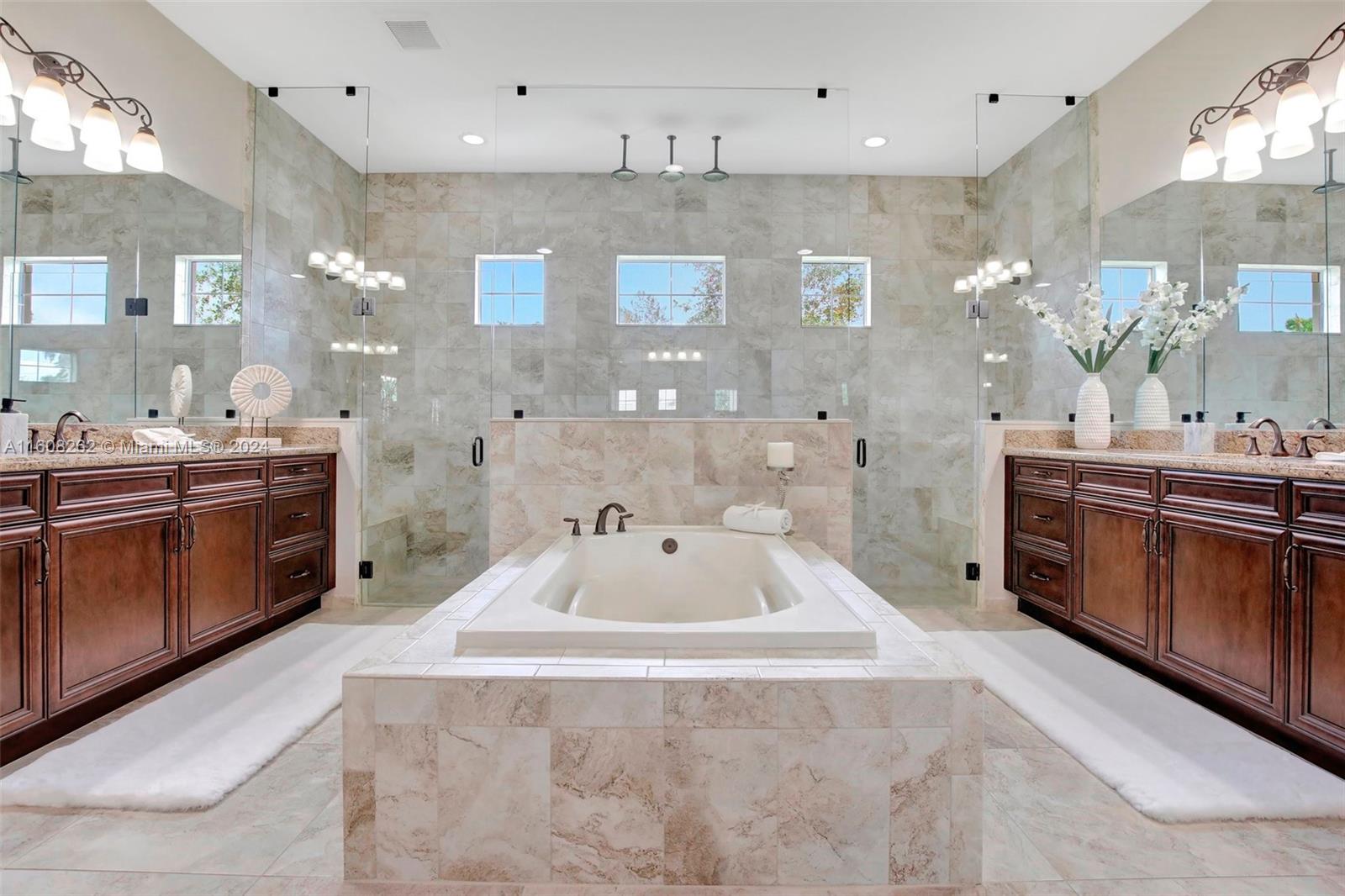 Experience luxury living in this magnificent Hawthorne model home on sprawling .80-acre lot 5 bedroom, one is used as office, 4.5 bath with flex space, this residence offers spacious and adaptable living. Culinary enthusiasts will revel in chef's kitchen, complete with granite countertops and top-of-the-line GE Monogram appliances. True oasis awaits with beach-entry saltwater heated pool and raised spa, all surrounded by travertine. Screened patio, featuring an outdoor kitchen, is perfect for year-round enjoyment. This home is equipped with impact windows and power outlet for generator. HOA fee covers lawn cutting and tree trimming. Living in Sterling Ranch combines luxury and convenience with prime location near major highways and attractions.