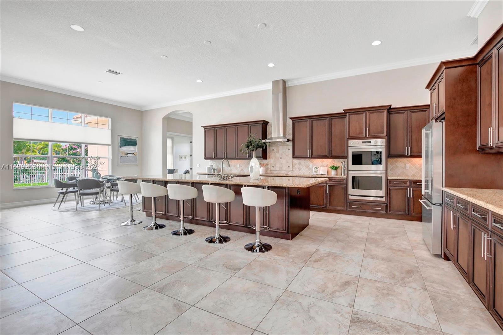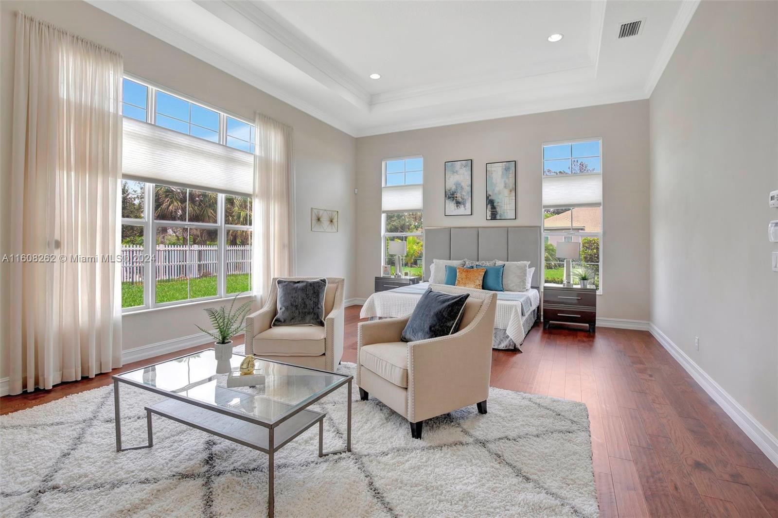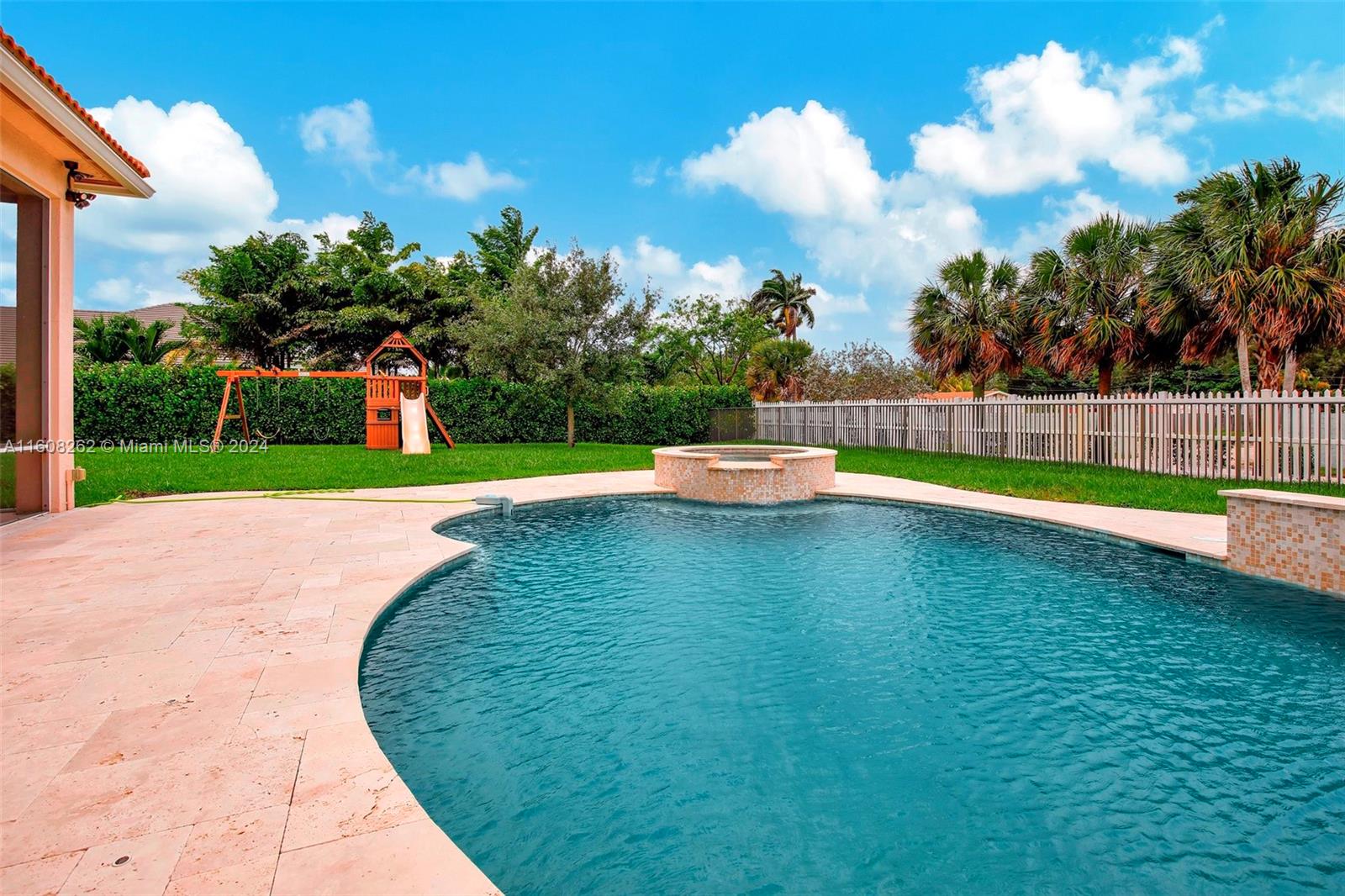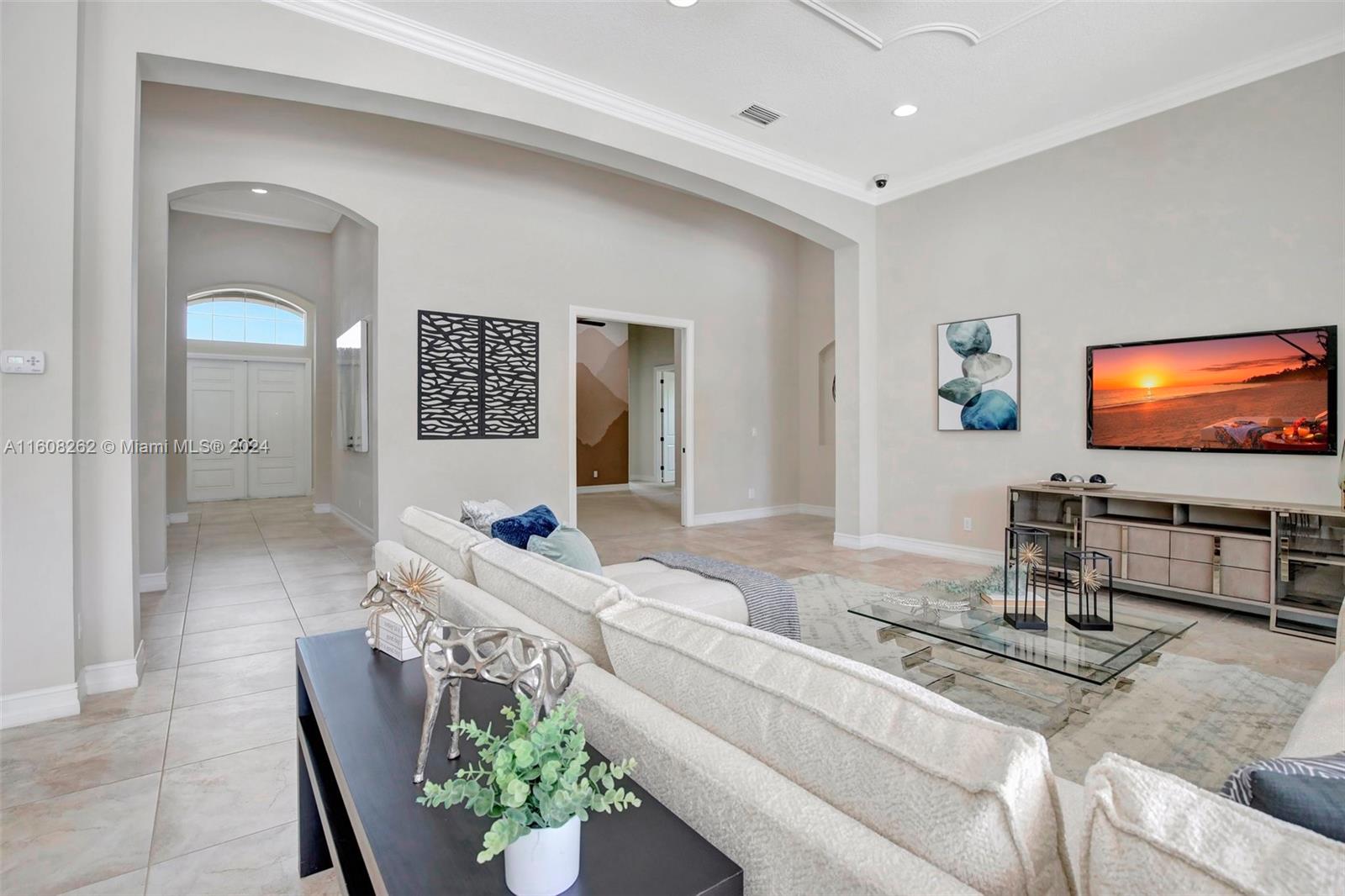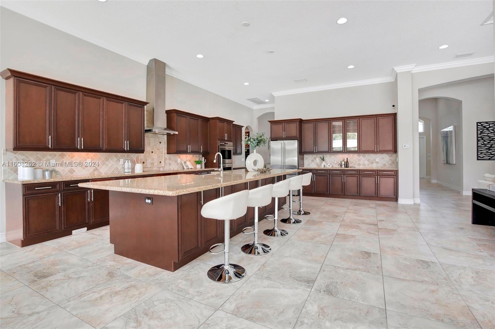 Experience luxury living in this magnificent Hawthorne model home on sprawling .80-acre lot 5 bedroom, one is used as office, 4.5 bath with flex space, this residence offers spacious and adaptable living. Culinary enthusiasts will revel in chef's kitchen, complete with granite countertops and top-of-the-line GE Monogram appliances. True oasis awaits with beach-entry saltwater heated pool and raised spa, all surrounded by travertine. Screened patio, featuring an outdoor kitchen, is perfect for year-round enjoyment. This home is equipped with impact windows and power outlet for generator. HOA fee covers lawn cutting and tree trimming. Living in Sterling Ranch combines luxury and convenience with prime location near major highways and attractions.