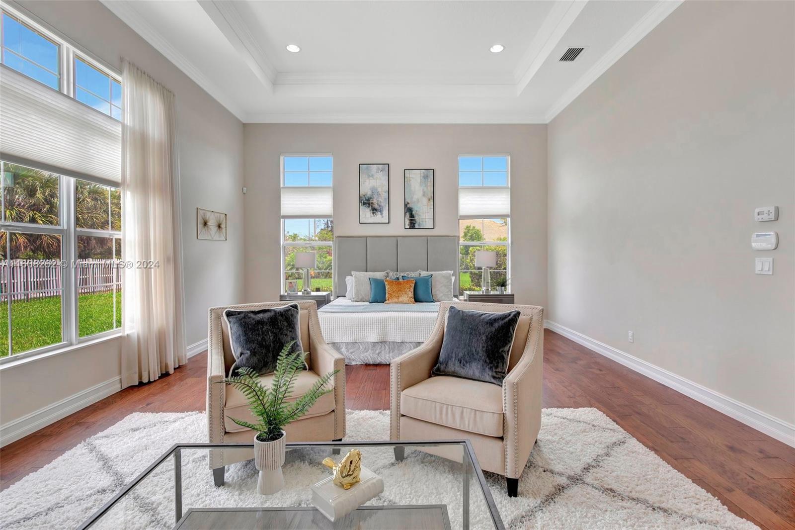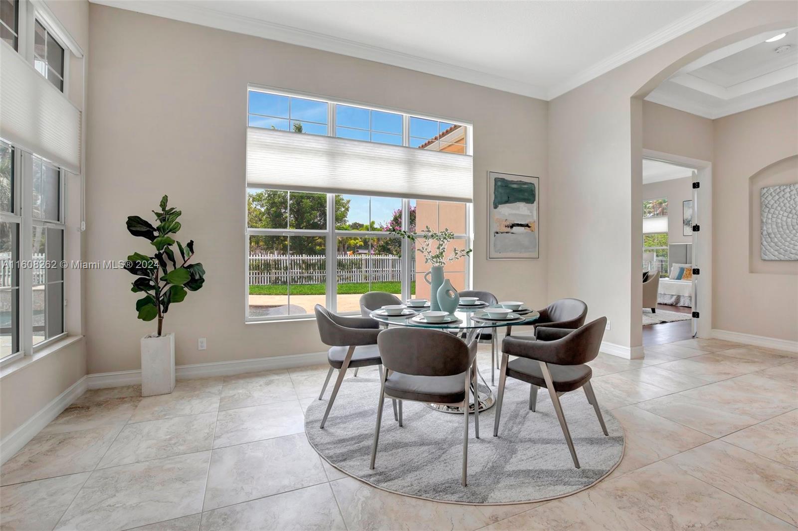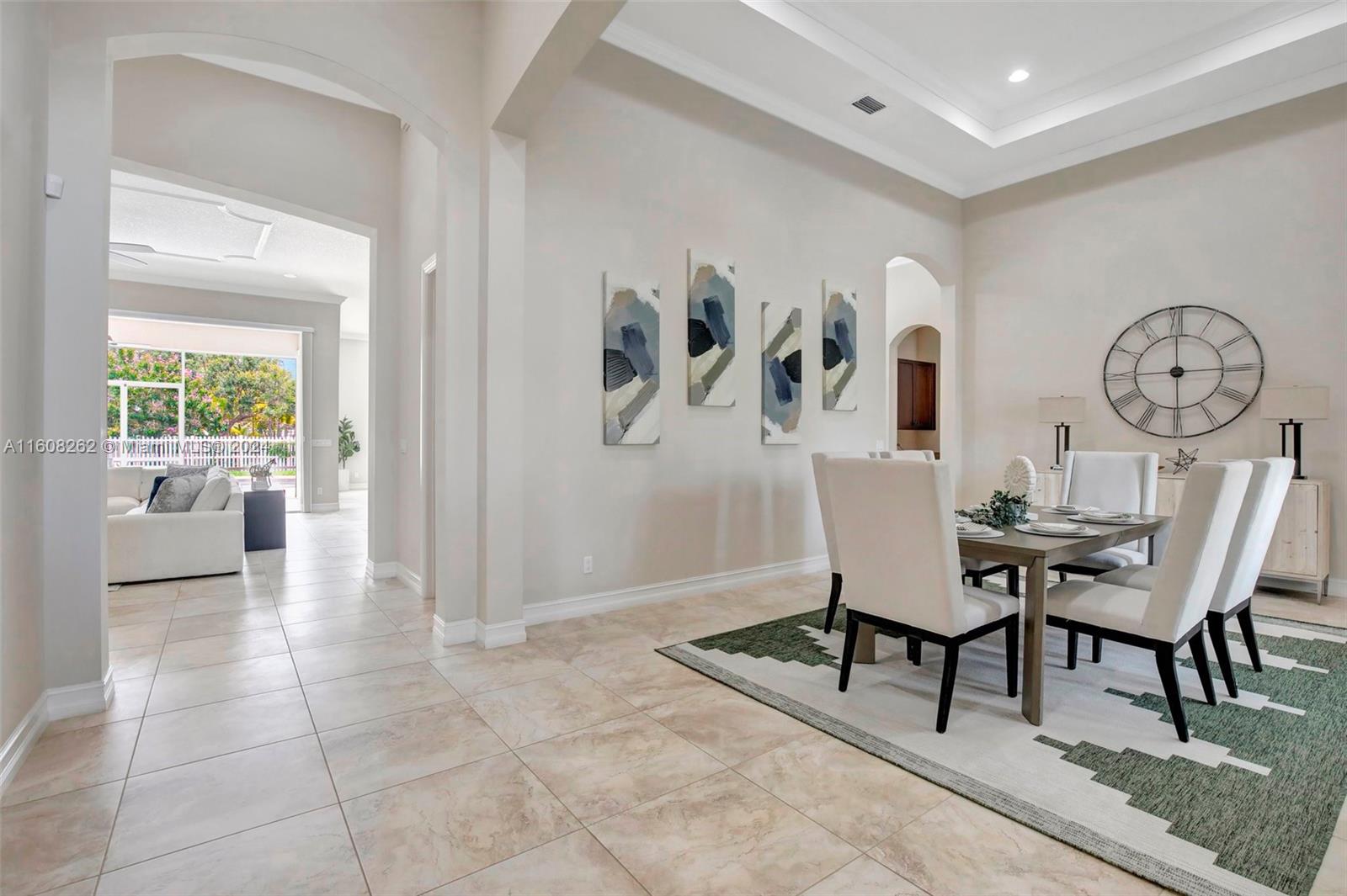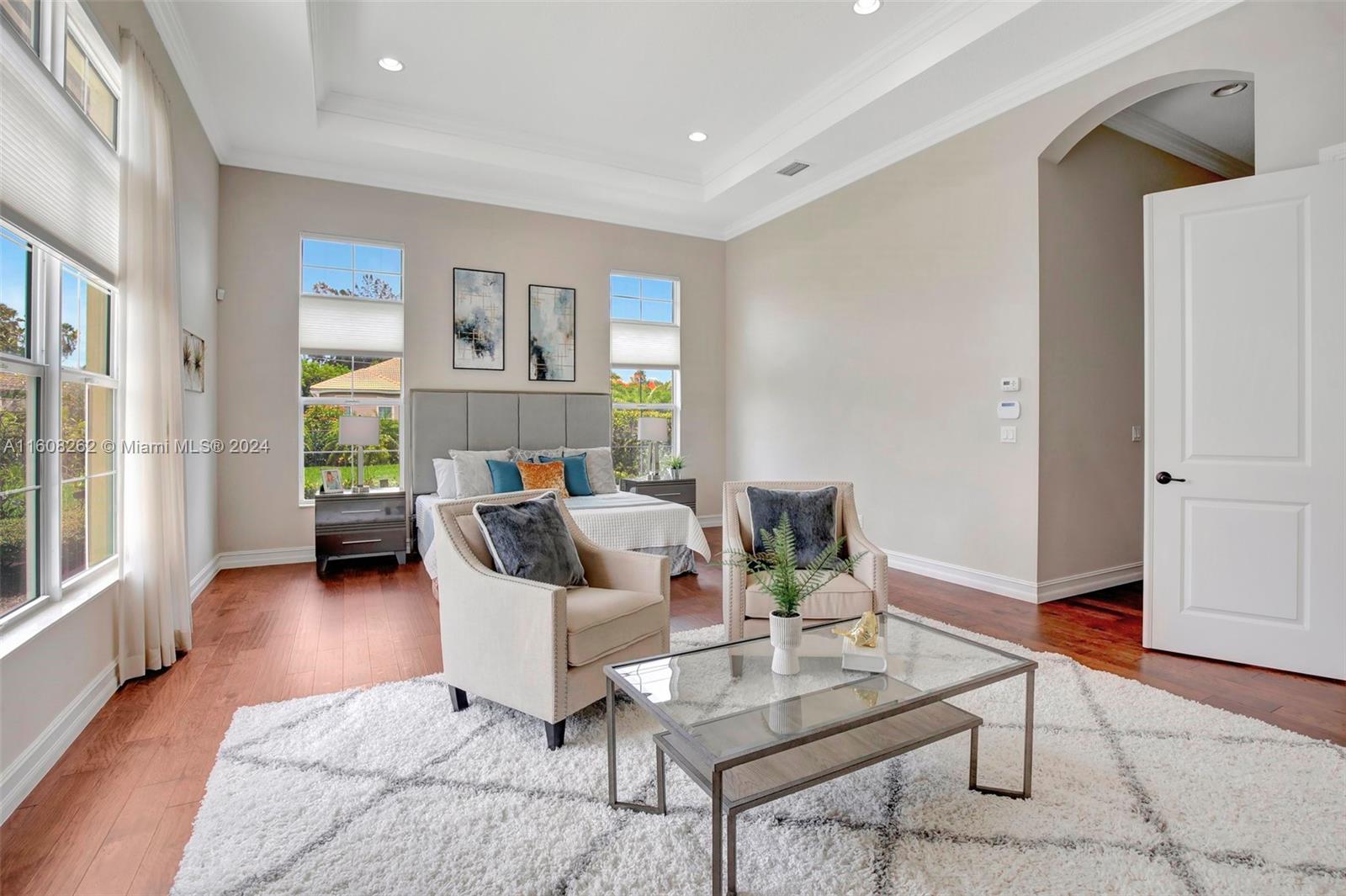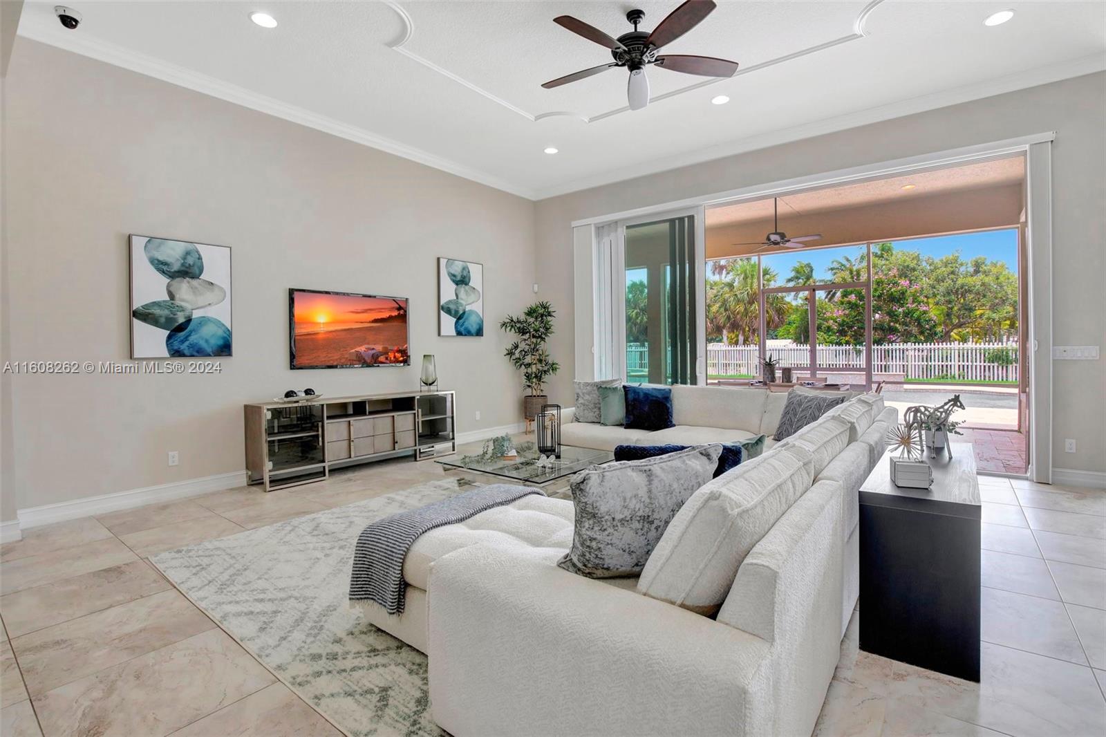 Experience luxury living in this magnificent Hawthorne model home on sprawling .80-acre lot 5 bedroom, one is used as office, 4.5 bath with flex space, this residence offers spacious and adaptable living. Culinary enthusiasts will revel in chef's kitchen, complete with granite countertops and top-of-the-line GE Monogram appliances. True oasis awaits with beach-entry saltwater heated pool and raised spa, all surrounded by travertine. Screened patio, featuring an outdoor kitchen, is perfect for year-round enjoyment. This home is equipped with impact windows and power outlet for generator. HOA fee covers lawn cutting and tree trimming. Living in Sterling Ranch combines luxury and convenience with prime location near major highways and attractions.