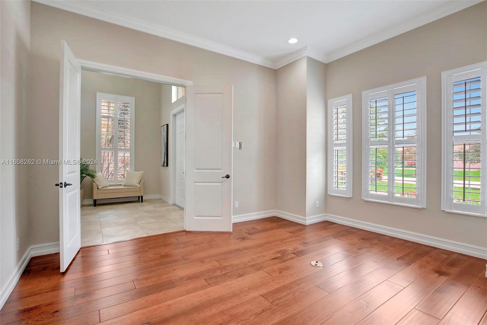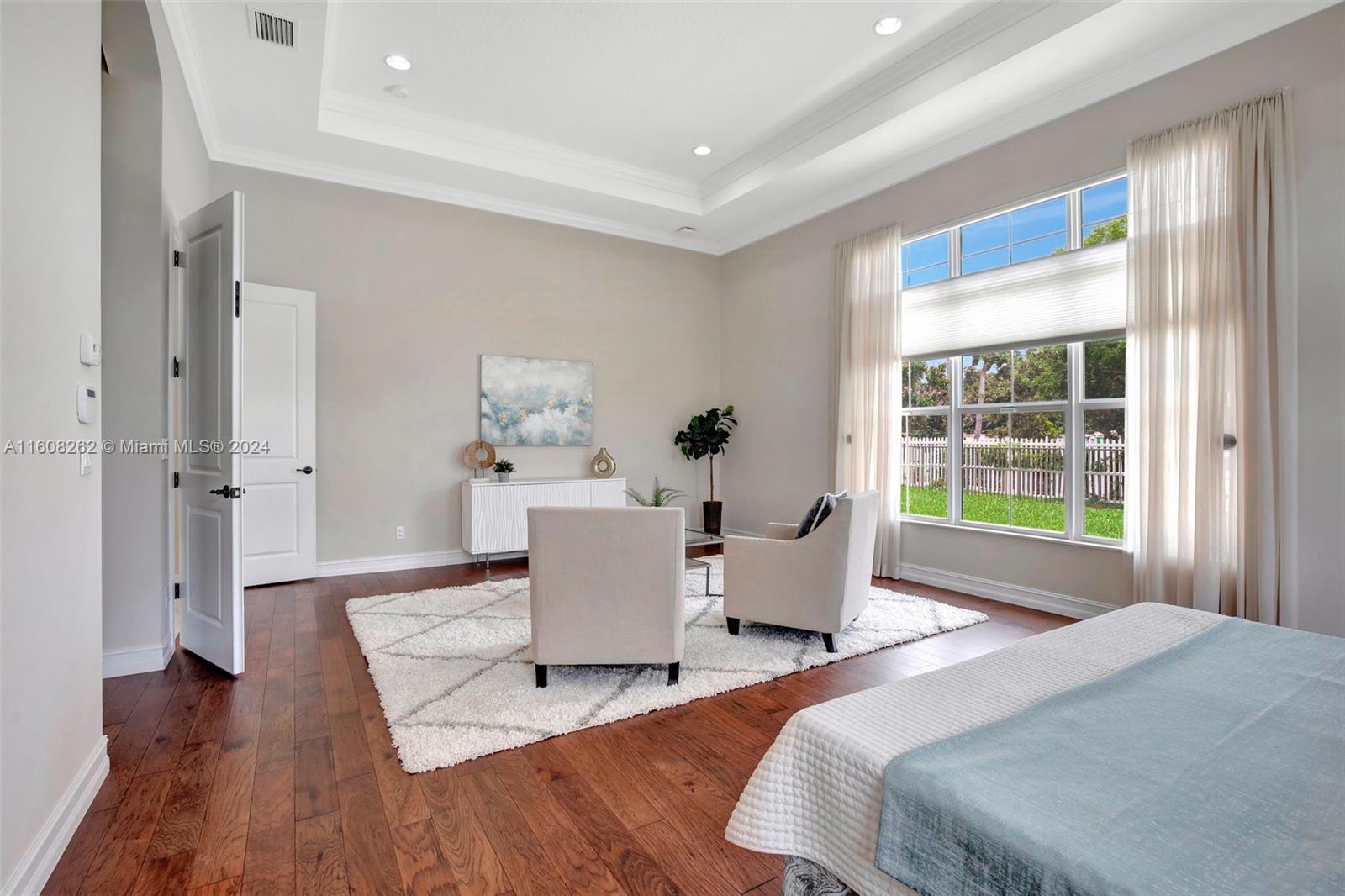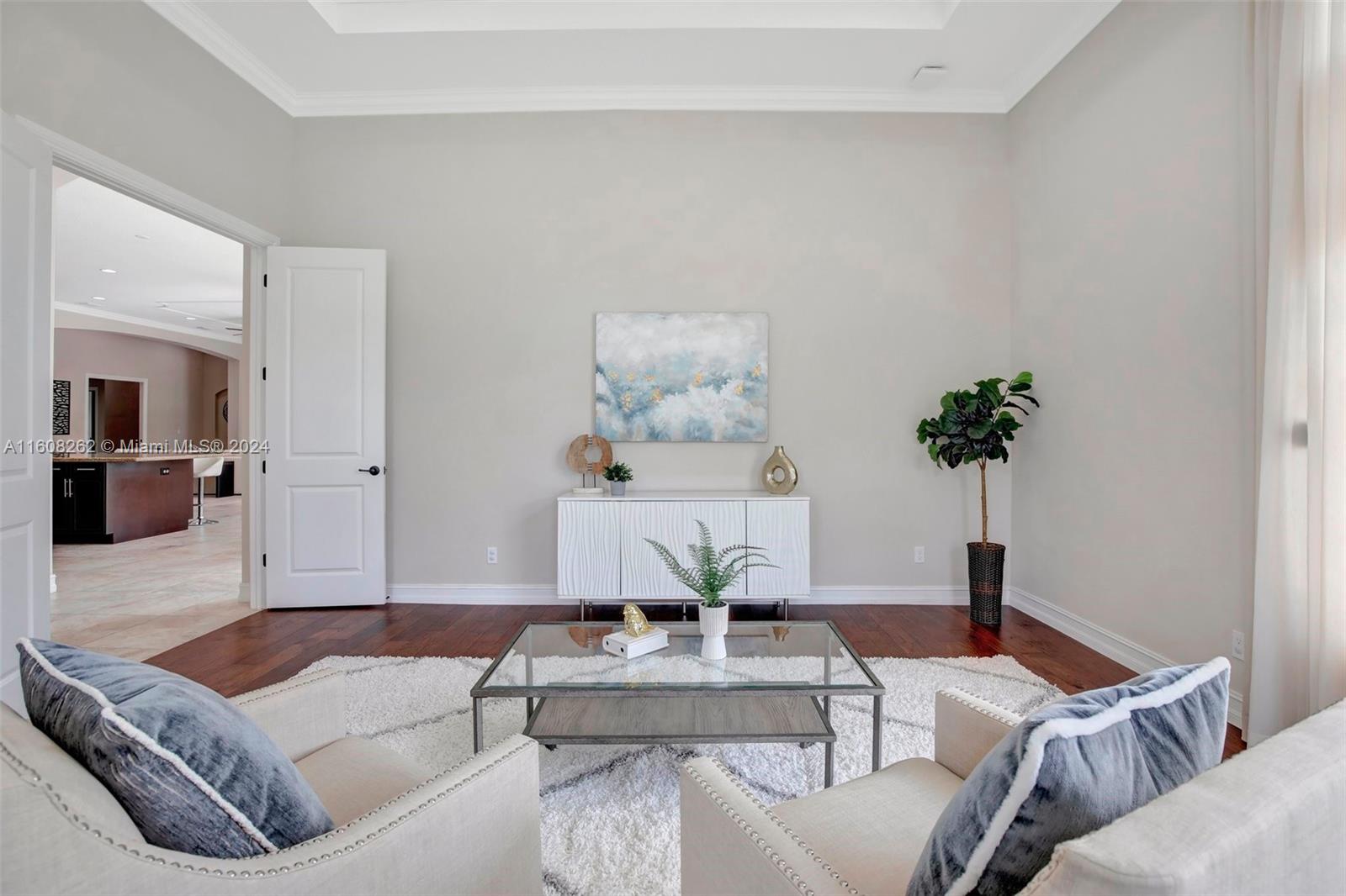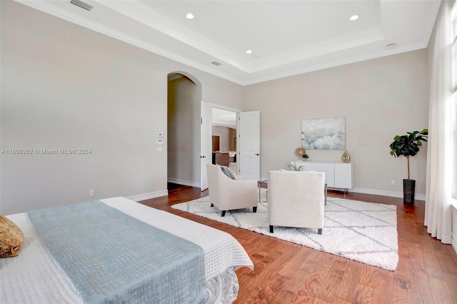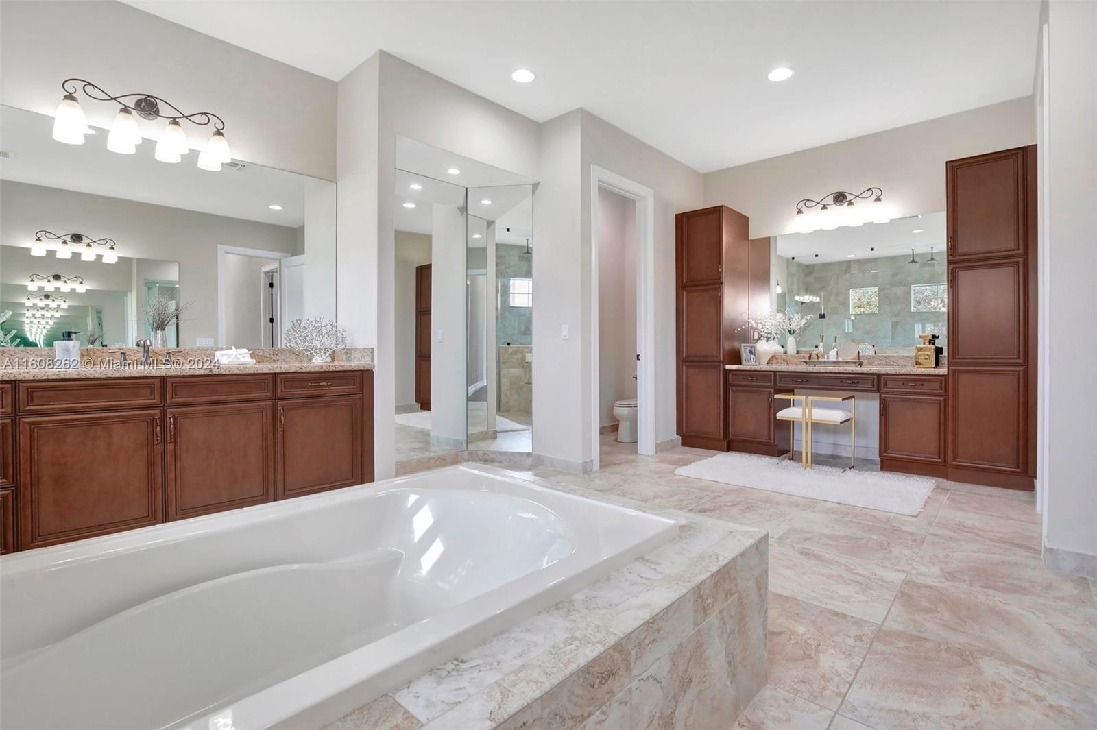 Experience luxury living in this magnificent Hawthorne model home on sprawling .80-acre lot 5 bedroom, one is used as office, 4.5 bath with flex space, this residence offers spacious and adaptable living. Culinary enthusiasts will revel in chef's kitchen, complete with granite countertops and top-of-the-line GE Monogram appliances. True oasis awaits with beach-entry saltwater heated pool and raised spa, all surrounded by travertine. Screened patio, featuring an outdoor kitchen, is perfect for year-round enjoyment. This home is equipped with impact windows and power outlet for generator. HOA fee covers lawn cutting and tree trimming. Living in Sterling Ranch combines luxury and convenience with prime location near major highways and attractions.