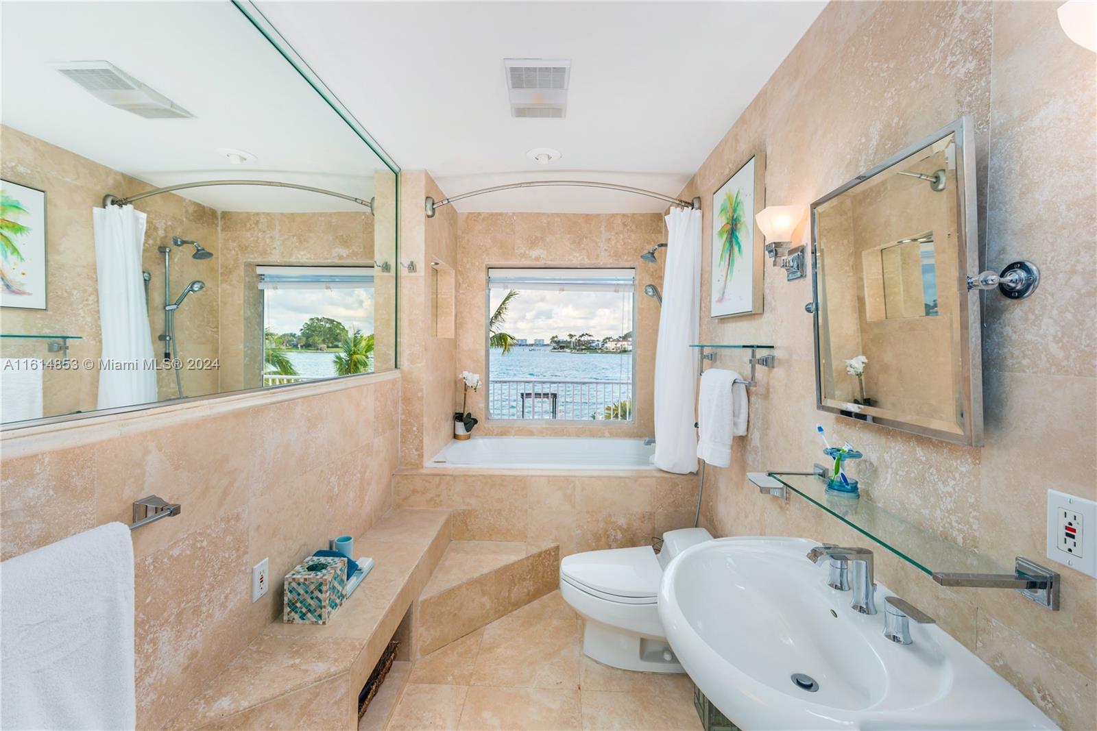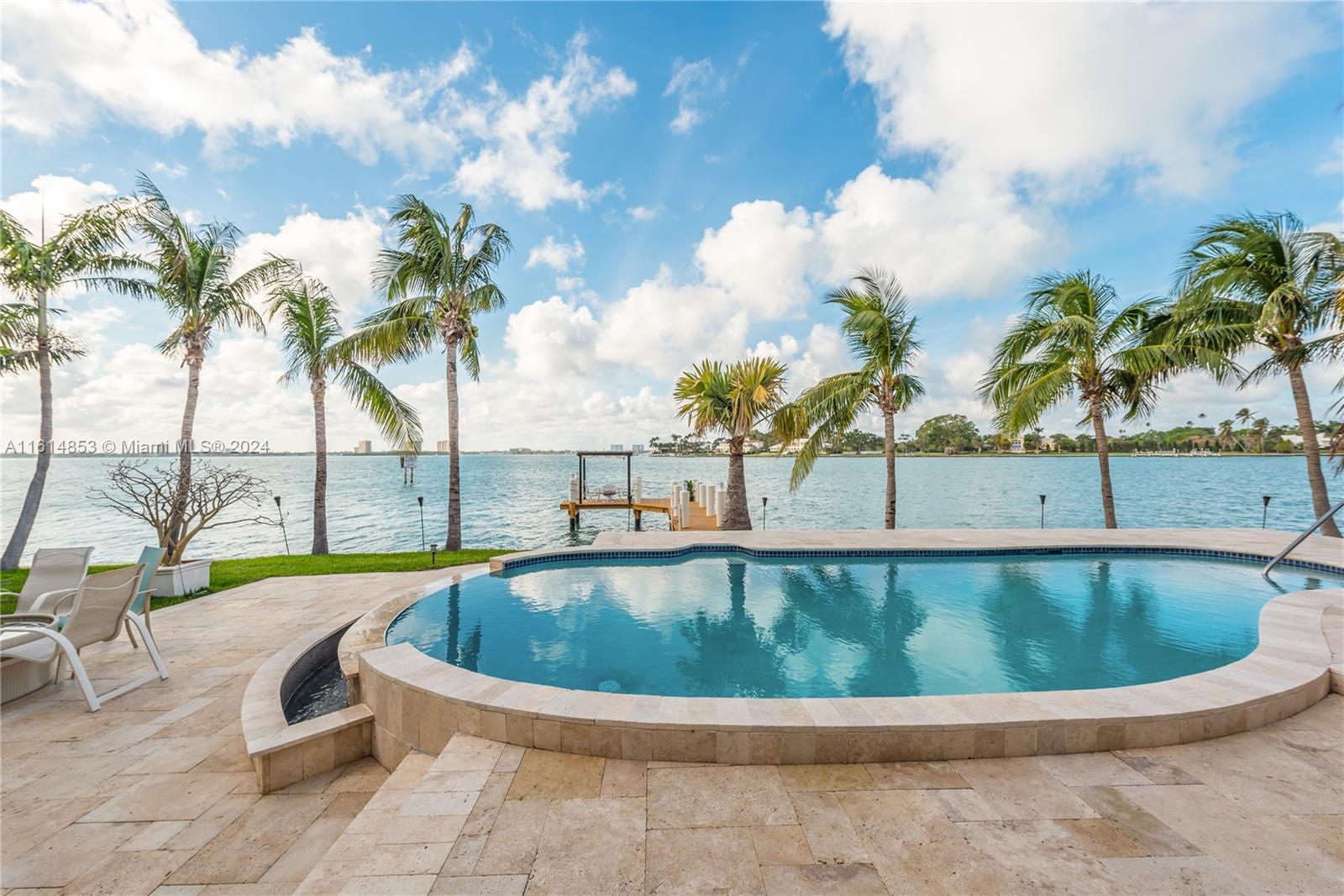 EXTRA WIDE BAY VIEWs, walking distance to beach, 139 feet of waterfront. Dock for large boat over 80 feet at this 5/3 house on cul de sac of a gated street a finger peninsula in Miami Beach. This home offers safety, privacy and breathtaking wide bay views of Biscayne Bay and Indian Creek Island. Bay patroled by Indian Creek marine police boats. Deep wpater access with no bridges to bay and a dock with room for a large yacht with 139 feet of waterfront. Italian Snaidero Kitchen with eat in kitchen with beautiful bay views. Marble floors are throughout. Formal living and dining rooms for entertaining. Beautiful sunsets can bee seen from the dock, as can dolphins and manatees playing. Short walk to beach. Close to Bal Harbour shops, places of worship, Playground, dog park. Also for rent
