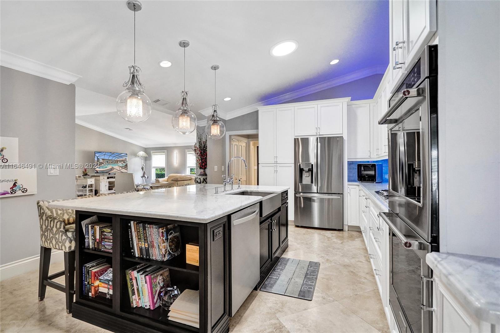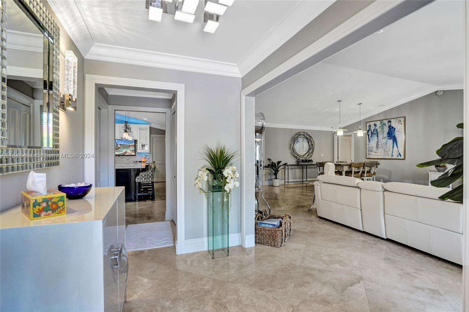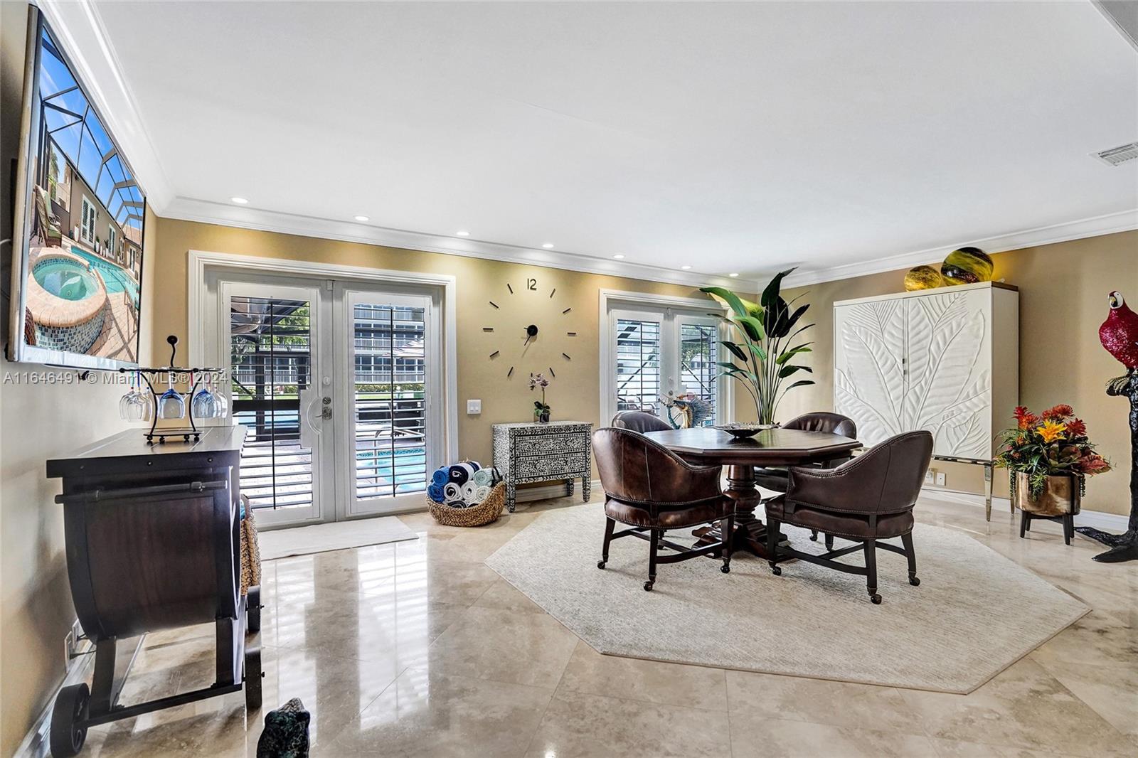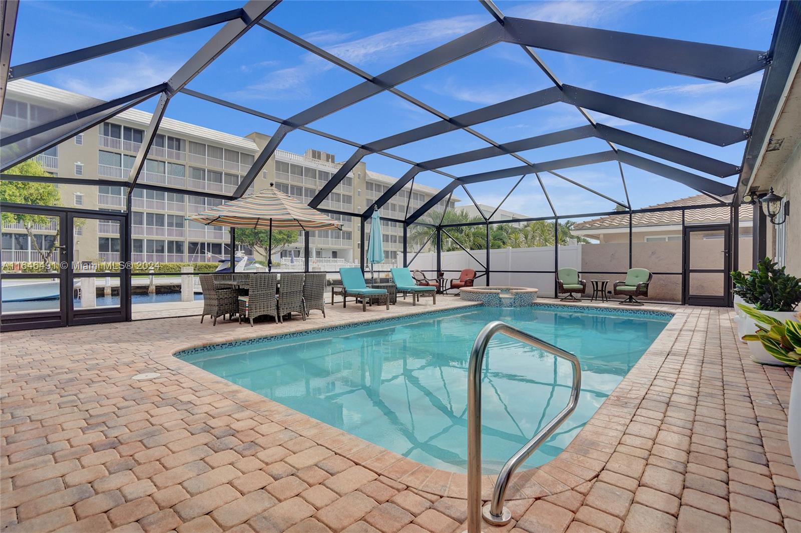 Gorgeous updated 4 bedroom/3 full bathroom home in the sought-after Coral Ridge. This home offers the perfect blend of elegance and class. Walking distance to beach, restaurants and shops. Screen enclosed saltwater pool/spa overlooking the canal, new built up-to-code seawall and 3 place jet ski lift. 85' of water with a new dock including electricity and fresh water. Home features include a beautiful entry into an open concept living space, vaulted ceilings, split floor plan, impact windows and doors, marble floors throughout, updated gourmet kitchen, double ovens and dishwashers, and gas range and a generator with 3 propane tanks. The master bedroom is located on the east wing with separate jacuzzi tub and marble shower, double sink vanity, his and her closets with lots of storage.