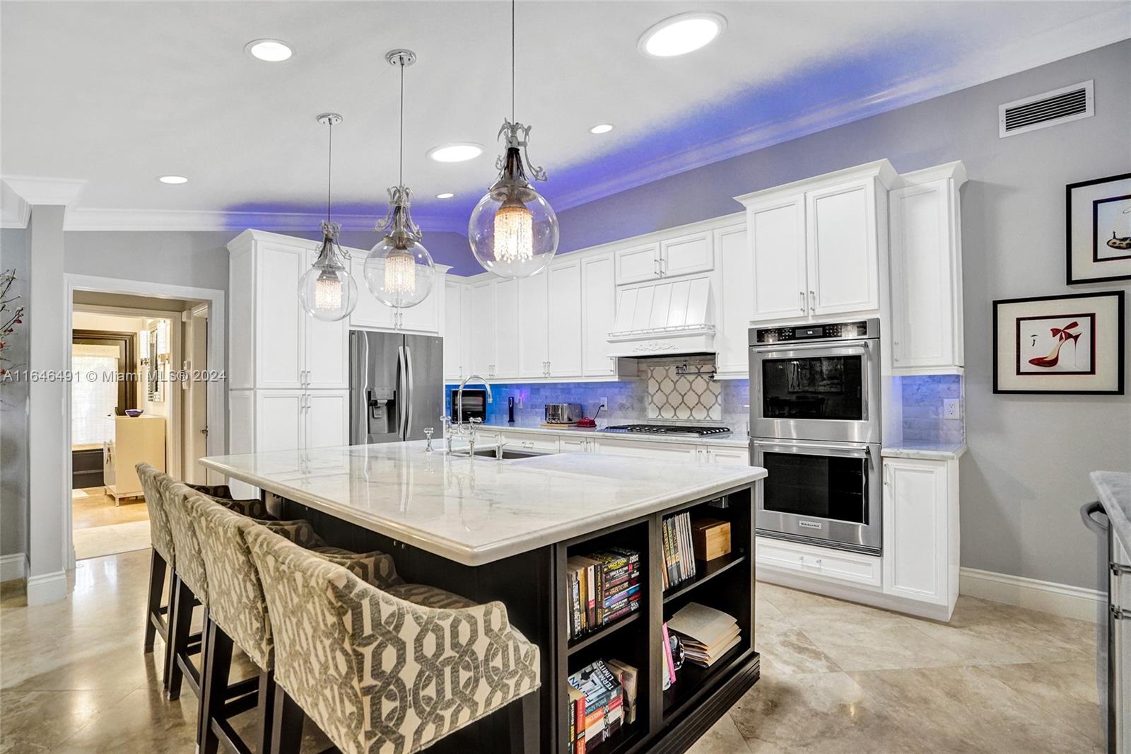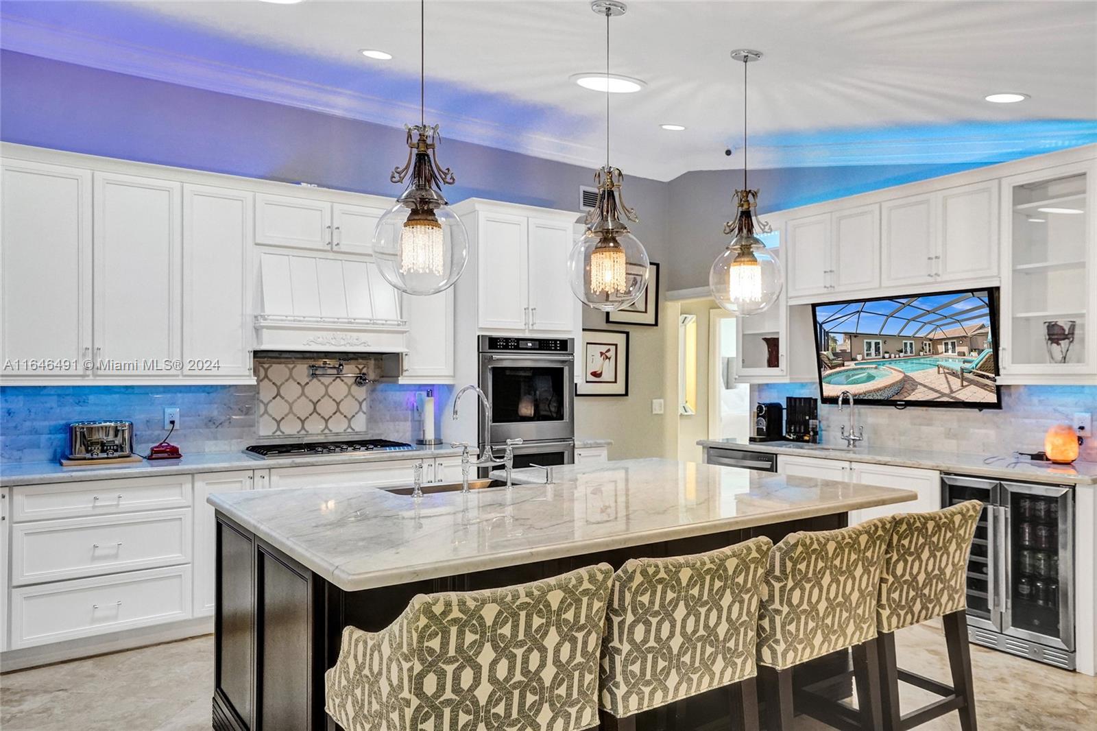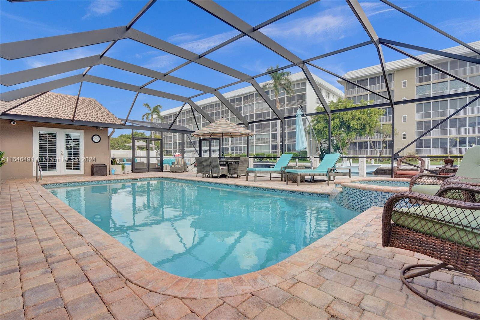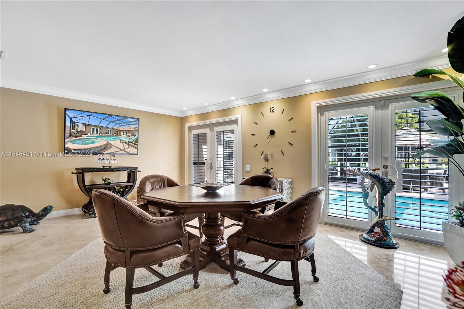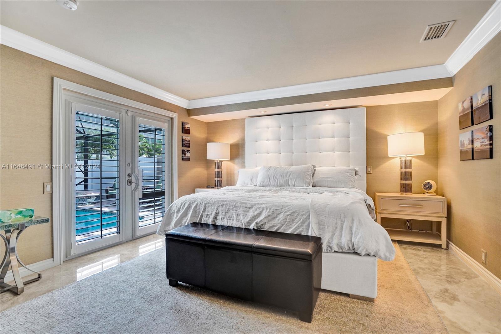 Gorgeous updated 4 bedroom/3 full bathroom home in the sought-after Coral Ridge. This home offers the perfect blend of elegance and class. Walking distance to beach, restaurants and shops. Screen enclosed saltwater pool/spa overlooking the canal, new built up-to-code seawall and 3 place jet ski lift. 85' of water with a new dock including electricity and fresh water. Home features include a beautiful entry into an open concept living space, vaulted ceilings, split floor plan, impact windows and doors, marble floors throughout, updated gourmet kitchen, double ovens and dishwashers, and gas range and a generator with 3 propane tanks. The master bedroom is located on the east wing with separate jacuzzi tub and marble shower, double sink vanity, his and her closets with lots of storage.