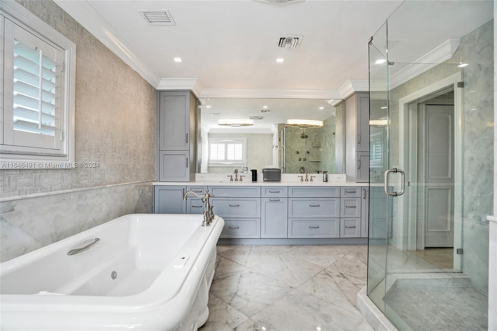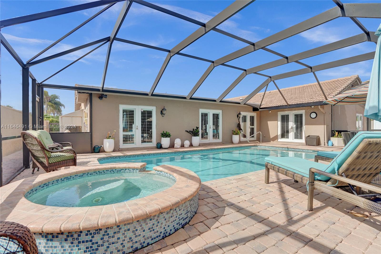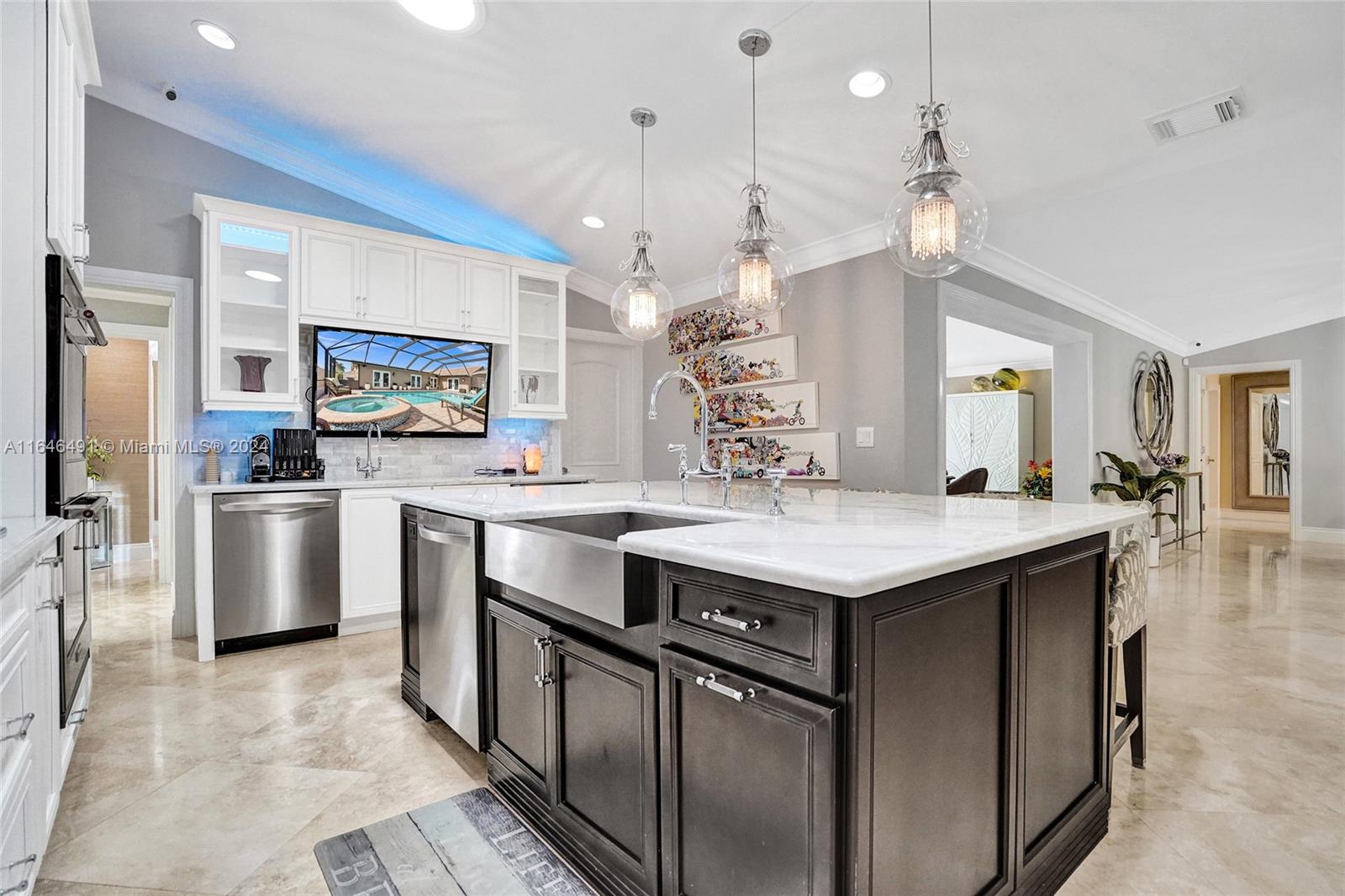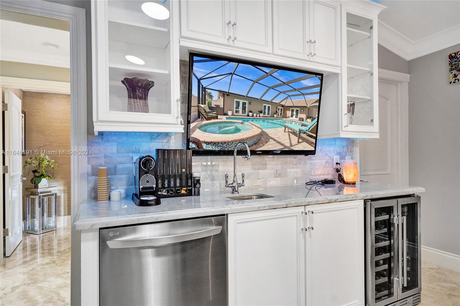 Gorgeous updated 4 bedroom/3 full bathroom home in the sought-after Coral Ridge. This home offers the perfect blend of elegance and class. Walking distance to beach, restaurants and shops. Screen enclosed saltwater pool/spa overlooking the canal, new built up-to-code seawall and 3 place jet ski lift. 85' of water with a new dock including electricity and fresh water. Home features include a beautiful entry into an open concept living space, vaulted ceilings, split floor plan, impact windows and doors, marble floors throughout, updated gourmet kitchen, double ovens and dishwashers, and gas range and a generator with 3 propane tanks. The master bedroom is located on the east wing with separate jacuzzi tub and marble shower, double sink vanity, his and her closets with lots of storage.