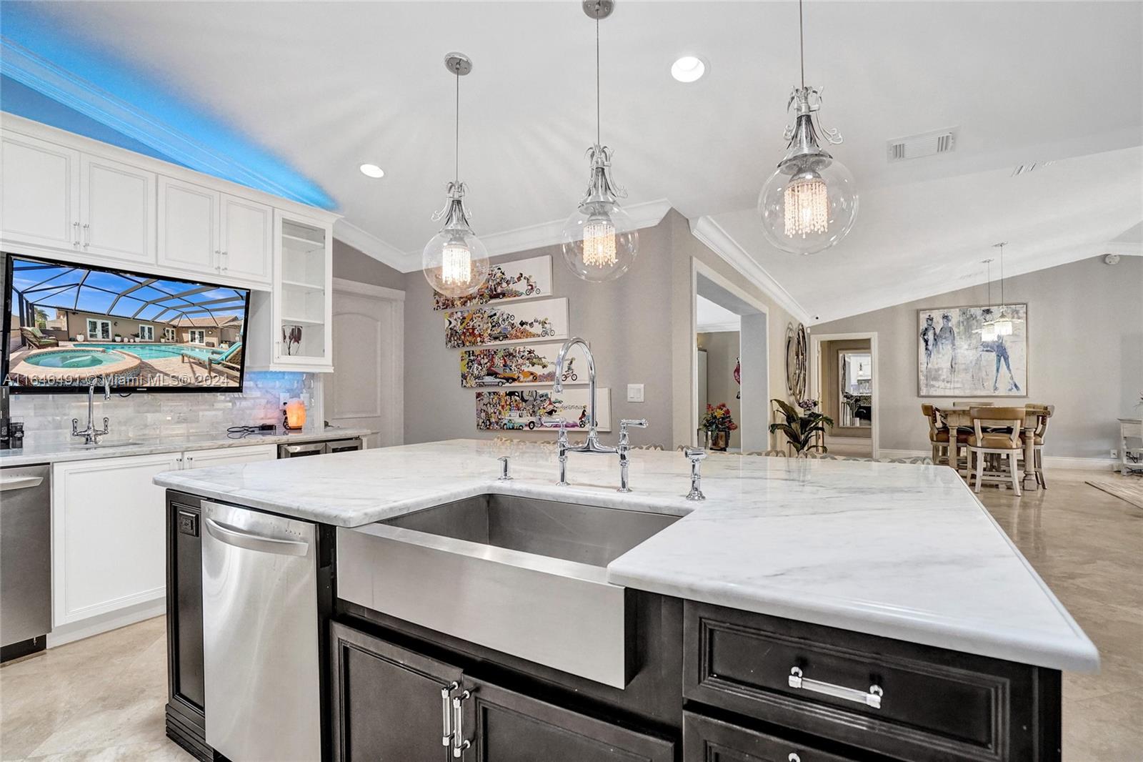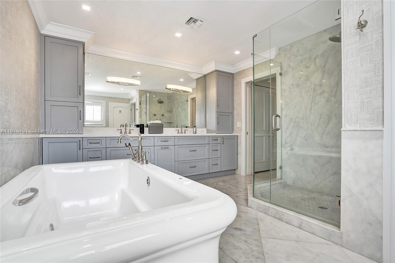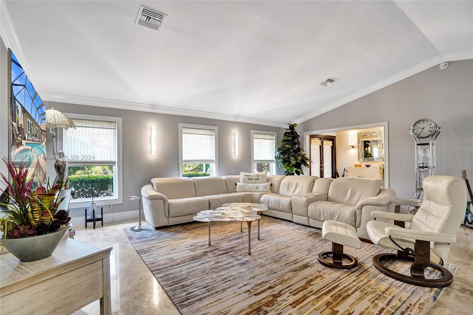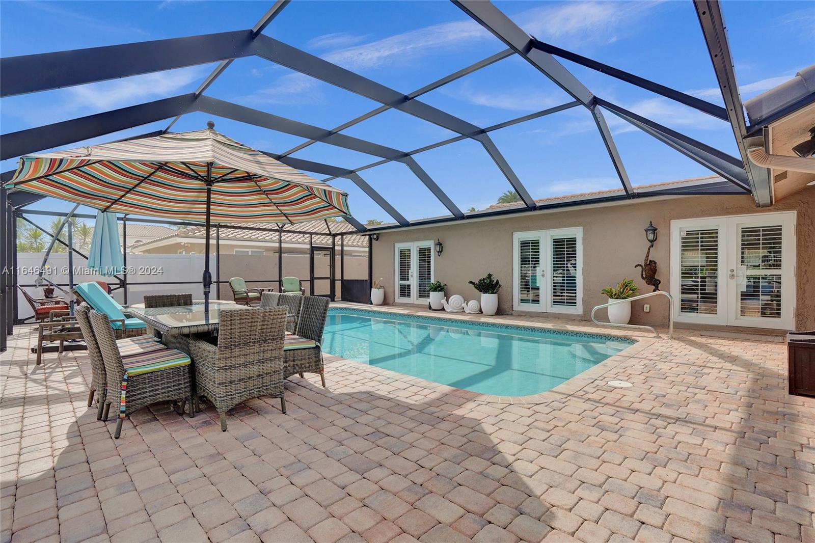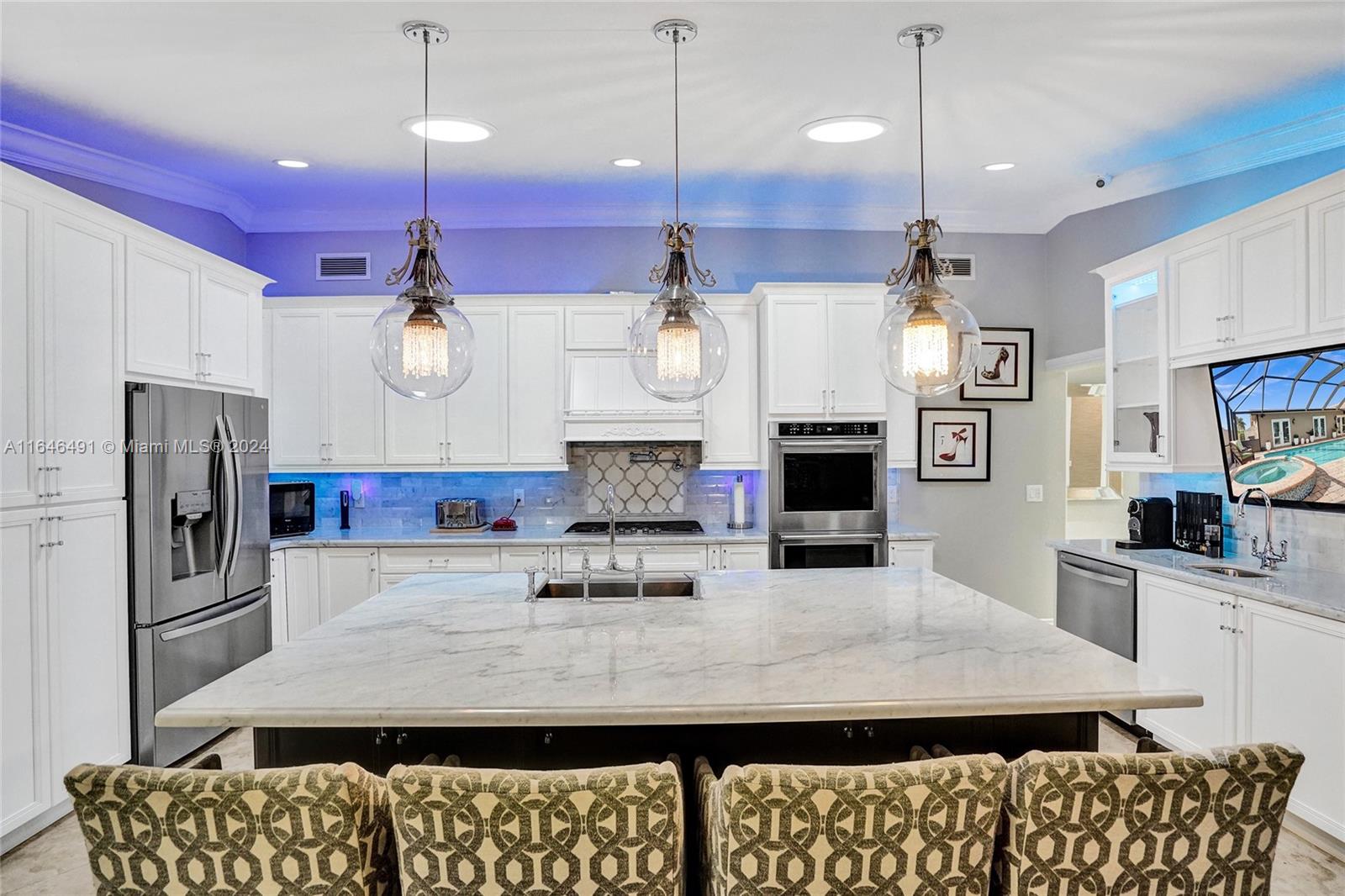 Gorgeous updated 4 bedroom/3 full bathroom home in the sought-after Coral Ridge. This home offers the perfect blend of elegance and class. Walking distance to beach, restaurants and shops. Screen enclosed saltwater pool/spa overlooking the canal, new built up-to-code seawall and 3 place jet ski lift. 85' of water with a new dock including electricity and fresh water. Home features include a beautiful entry into an open concept living space, vaulted ceilings, split floor plan, impact windows and doors, marble floors throughout, updated gourmet kitchen, double ovens and dishwashers, and gas range and a generator with 3 propane tanks. The master bedroom is located on the east wing with separate jacuzzi tub and marble shower, double sink vanity, his and her closets with lots of storage.