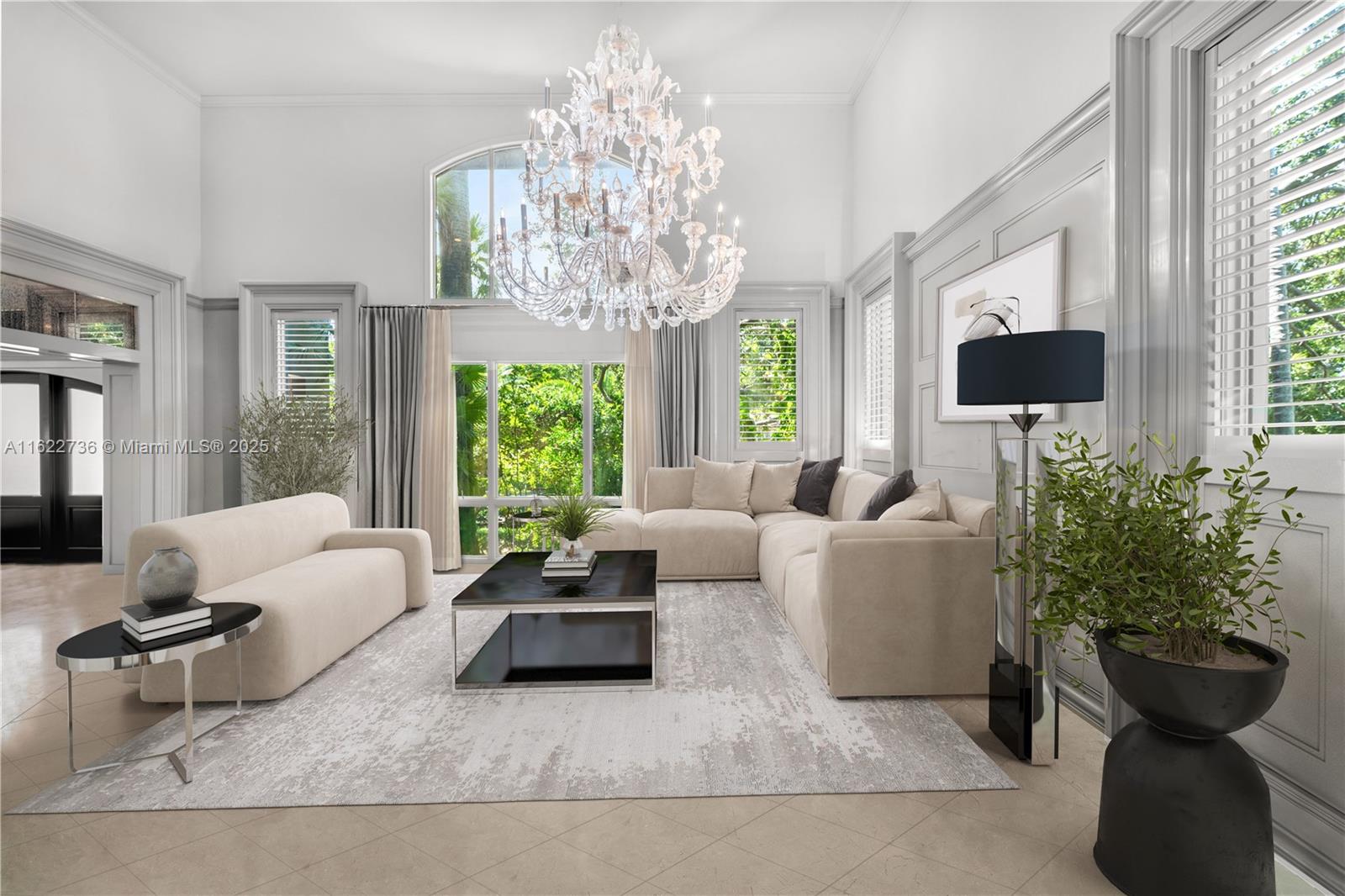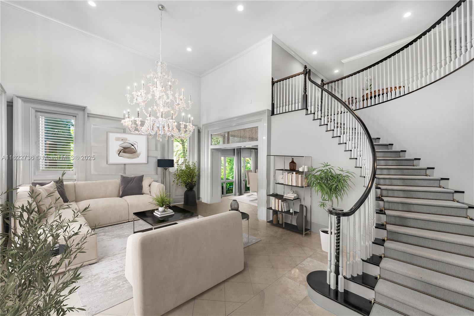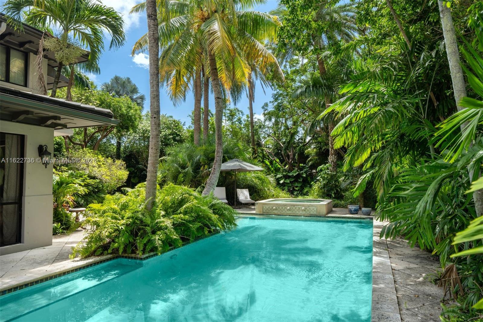 Discover timeless elegance in this magnificent estate, nestled in the heart of a lush, tropical paradise. This 7BD, 6.5BA, 7,000 sf masterpiece features soaring ceilings, expansive windows, & an abundance of natural light on an expansive 23,160 sf corner lot. The gourmet kitchen boasts top-of-the-line appliances, custom cabinetry, & a spacious island. The grand living area flows seamlessly into the formal dining room while the light filled family & Florida rooms offer views to the lush outdoors. Retreat to the luxurious master suite with its private balcony, spa-like bathroom, & expansive walk-in closet. All rooms are complete with custom built-ins. Outdoors, the pristine pool, surrounded by verdant gardens, offers a tranquil oasis for relaxation. The photos are virtually staged.