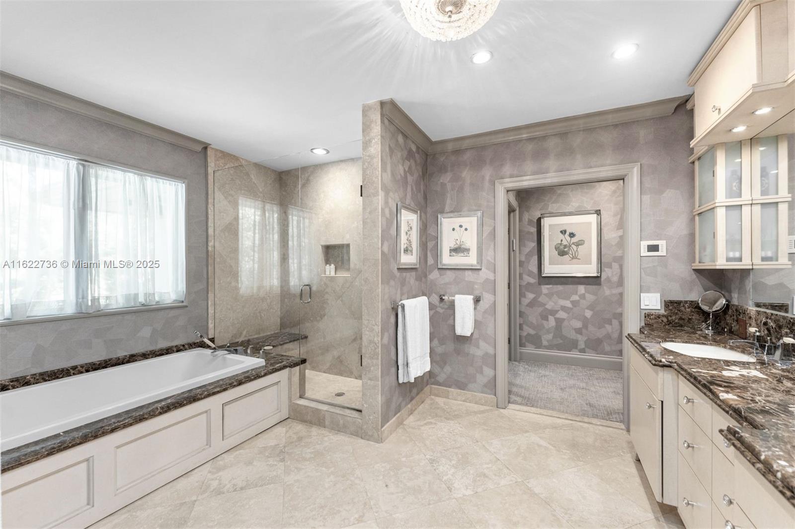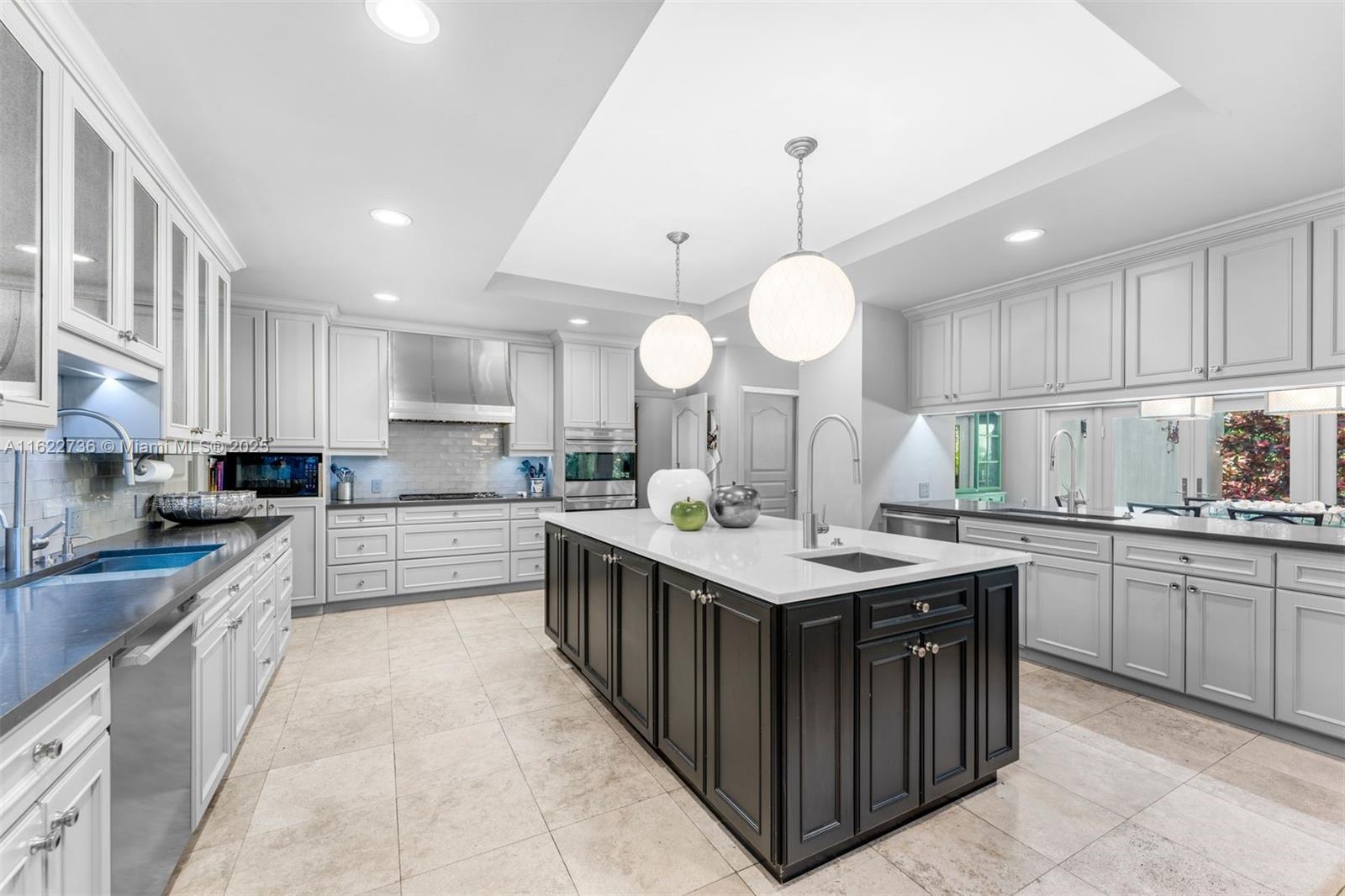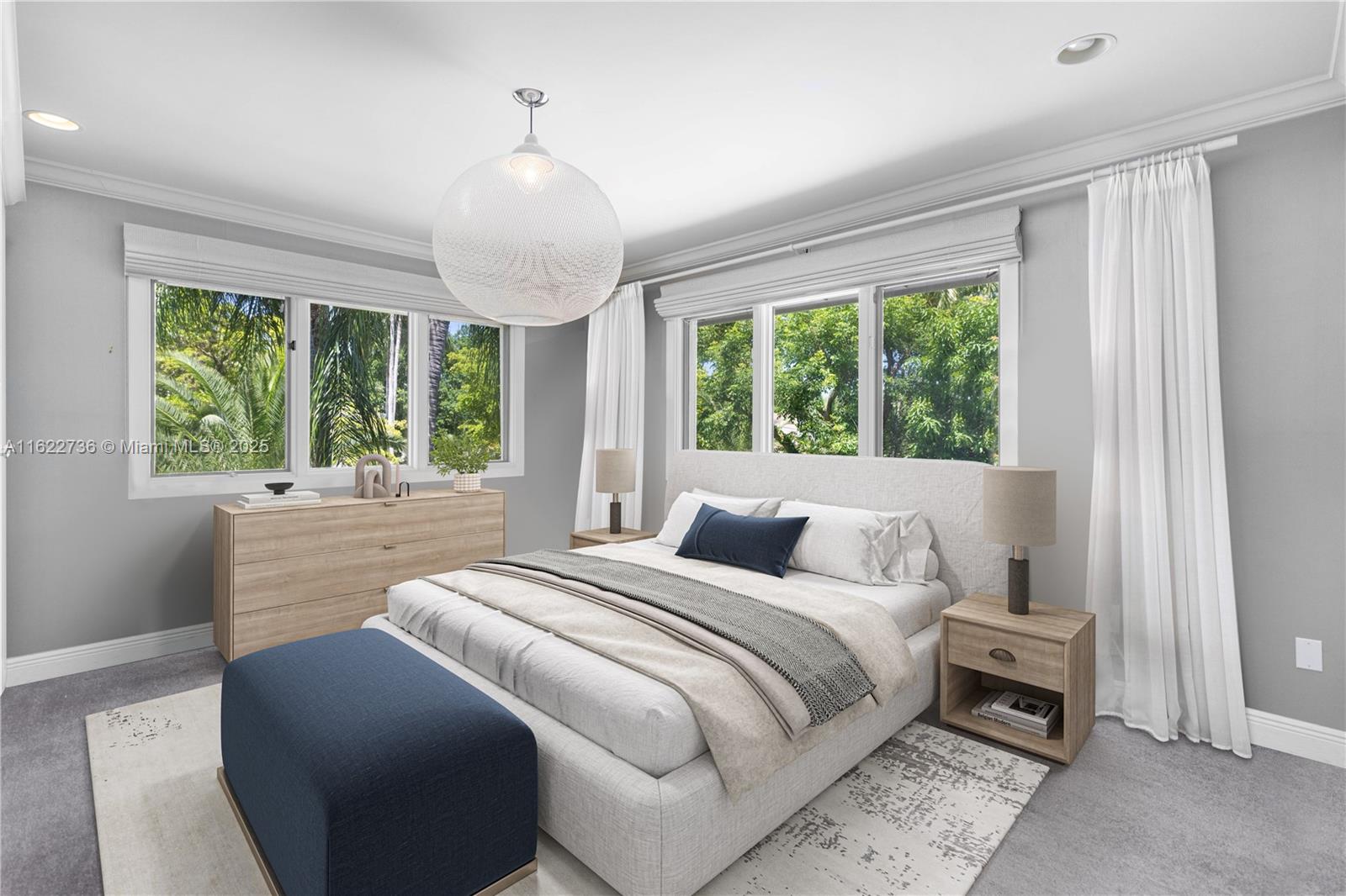 Discover timeless elegance in this magnificent estate, nestled in the heart of a lush, tropical paradise. This 7BD, 6.5BA, 7,000 sf masterpiece features soaring ceilings, expansive windows, & an abundance of natural light on an expansive 23,160 sf corner lot. The gourmet kitchen boasts top-of-the-line appliances, custom cabinetry, & a spacious island. The grand living area flows seamlessly into the formal dining room while the light filled family & Florida rooms offer views to the lush outdoors. Retreat to the luxurious master suite with its private balcony, spa-like bathroom, & expansive walk-in closet. All rooms are complete with custom built-ins. Outdoors, the pristine pool, surrounded by verdant gardens, offers a tranquil oasis for relaxation. The photos are virtually staged.