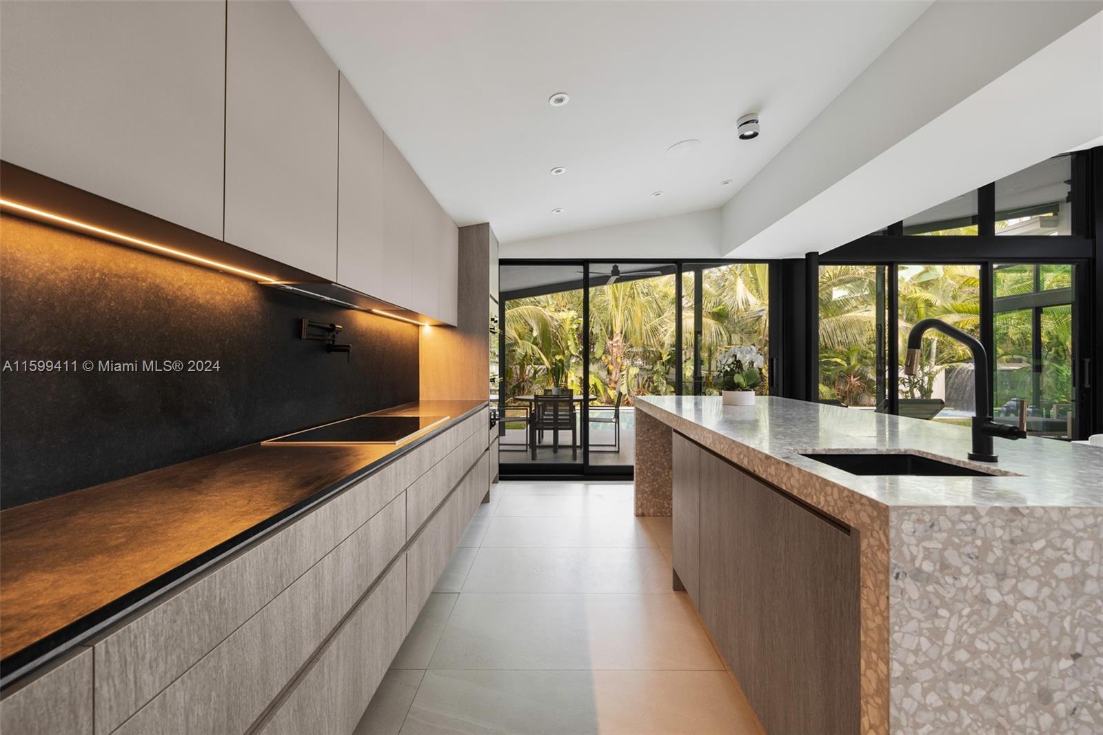 Welcome to your Mid-Century Modern masterpiece where timeless elegance meets contemporary luxury. Completed in 2022, this architectural beauty boasts features that redefine modern living. A seamless fusion of indoor-outdoor living, stunning floor-to-ceiling glass doors connect the interior to the patio & lush tropical retreat with a sparkling pool and a cascading waterfall. This meticulously designed residence offers 4 bedrooms and 3 bathrooms, every detail has been carefully curated to reflect sophistication and style, from the Italian flooring to the leathered granite counters and terrazzo marble island.