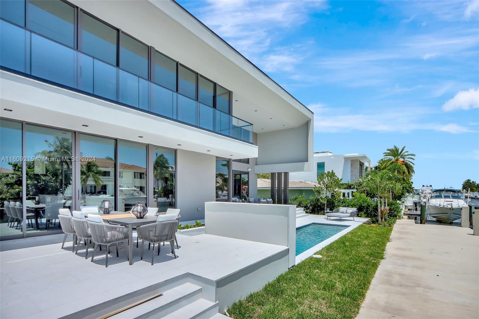 Stunning new modern waterfront home in guard-gated community of Eastern Shores, a boater's favorite. 5,901 SF of total construction & 4,845 SF under AC featuring 5 bedrooms, 6.5 bathrooms + maids quarters. It offers 80' of water frontage with a new 60' dock & no fixed bridges to the open bay. High-end finishes include custom Italian Veneta Cucine kitchen w/Subzero Wolf appliances, smart home technology & high-end Axor & Duravit plumbing/bath fixtures. Additional amenities comprise a pool, elevator, summer kitchen and a 2 car garage with storage room. Steps away from Sunny Isles Beach, Aventura, dining & Oleta River State Park.