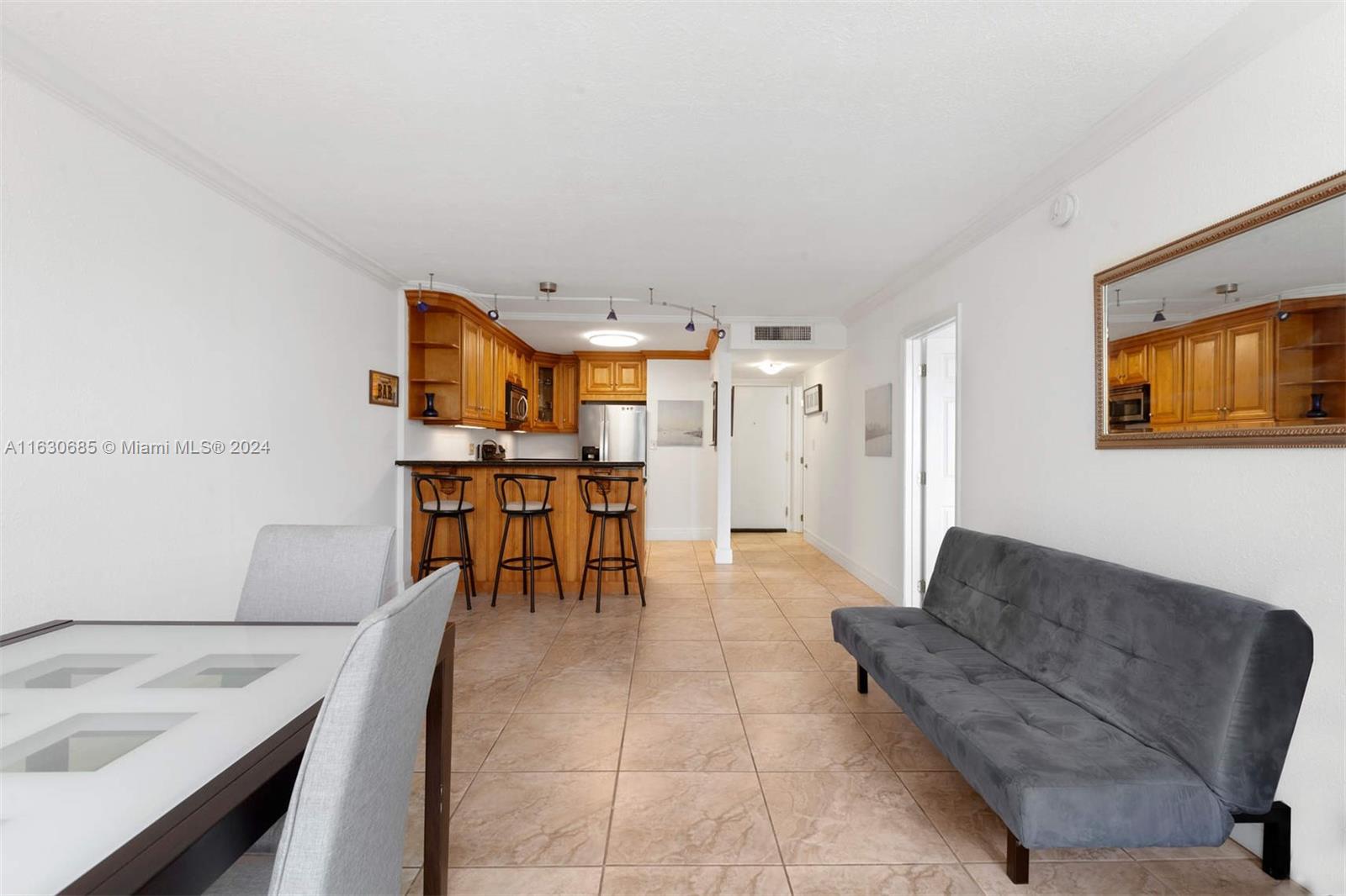 This exceptional 1 bed, 1.5 bath unit features an open kitchen and a screened balcony, offering breathtaking views of the canal, garden, stunning homes, and yachts on Eastern Shores. Just minutes away from Sunny Isles Beach, it provides easy access to two airports, Aventura Mall, shops, banks, restaurants, and nearby parks and picnic grounds. Residents will also enjoy a large pool. Conveniently located east of US1, just across from Oleta Park, the building is well-managed, has passed its 40-year recertification, and is working on its 50-year recertification. Ideal for a full-time residence, vacation home, or investment, this apartment boasts low maintenance fees and can be rented immediately for $1,950.00 per month.