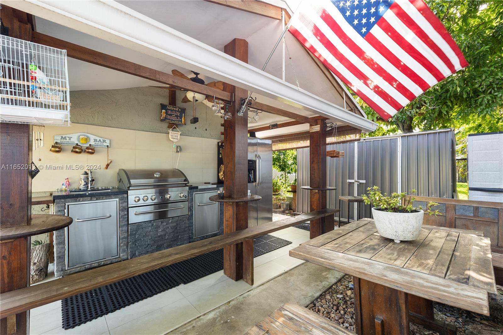 Stunning 4/2 single-family home in the desirable city of Pembroke Pines! Offers a 2021 Roof, AC 2018 and many upgrades. Sparkling pool, unique outdoor kitchen with fogón, bar. New BBQ, large covered patio, and new screen enclosure. Oak laminated flooring, remodeled kitchen and 2022 stainless steel appliances and remodeled bathrooms. The garage has been converted with permits, adding extra living space for a 4th room perfect for a home office or guest bedroom. The laundry area has extra space, ideal for a gym setup. The fenced patio is home to various fruit trees, including avocado, mamey, guanábana, and fruta bomba. Located near Pembroke Lakes Mall, Pembroke Gardens, restaurants, and entertainment venues, this home is just 3.7 miles from Hard Rock and close to Memorial Hospital. No HOA.