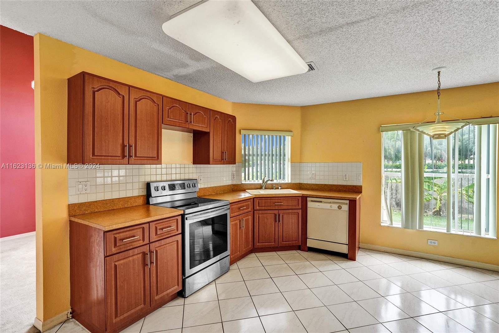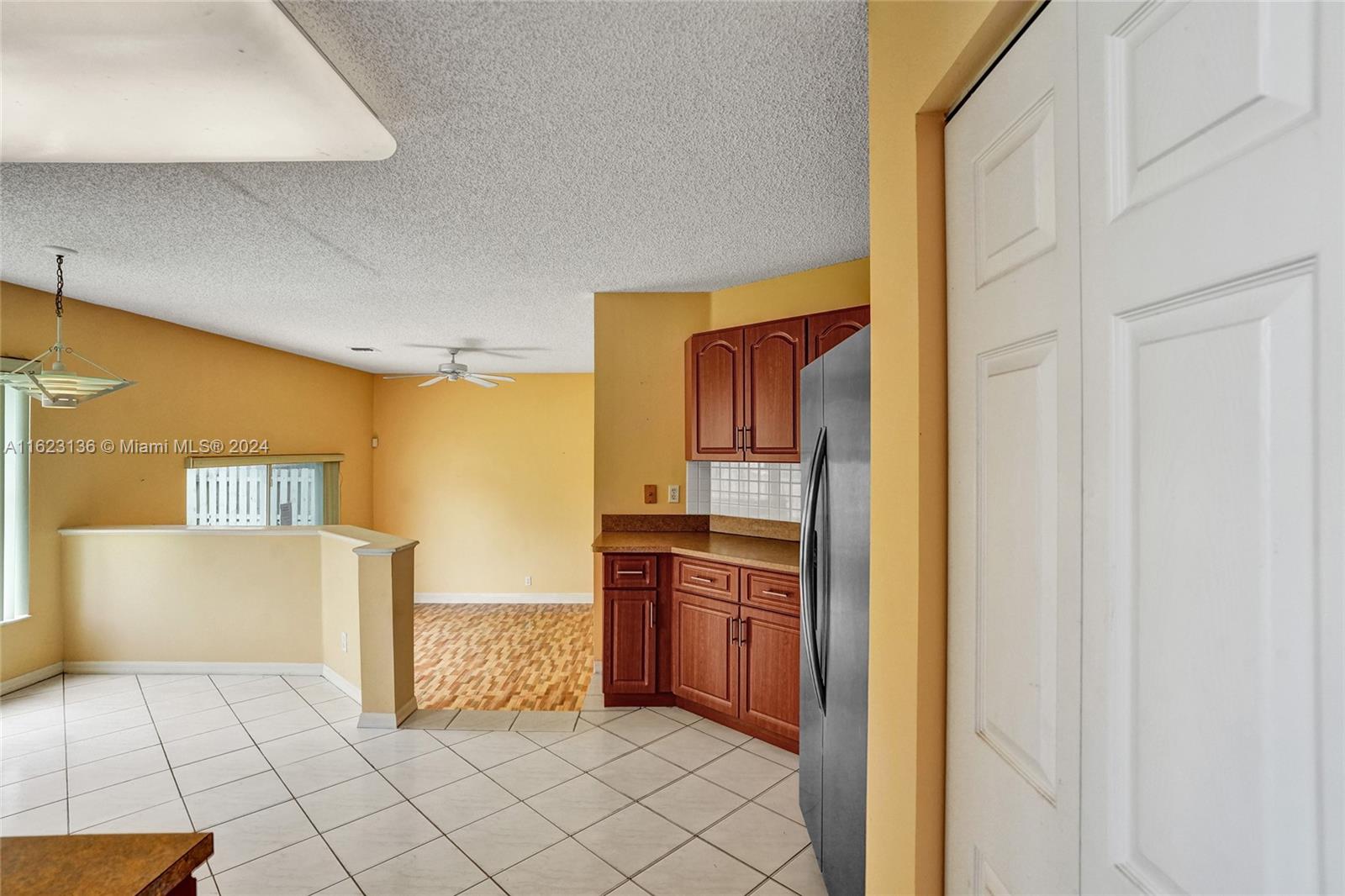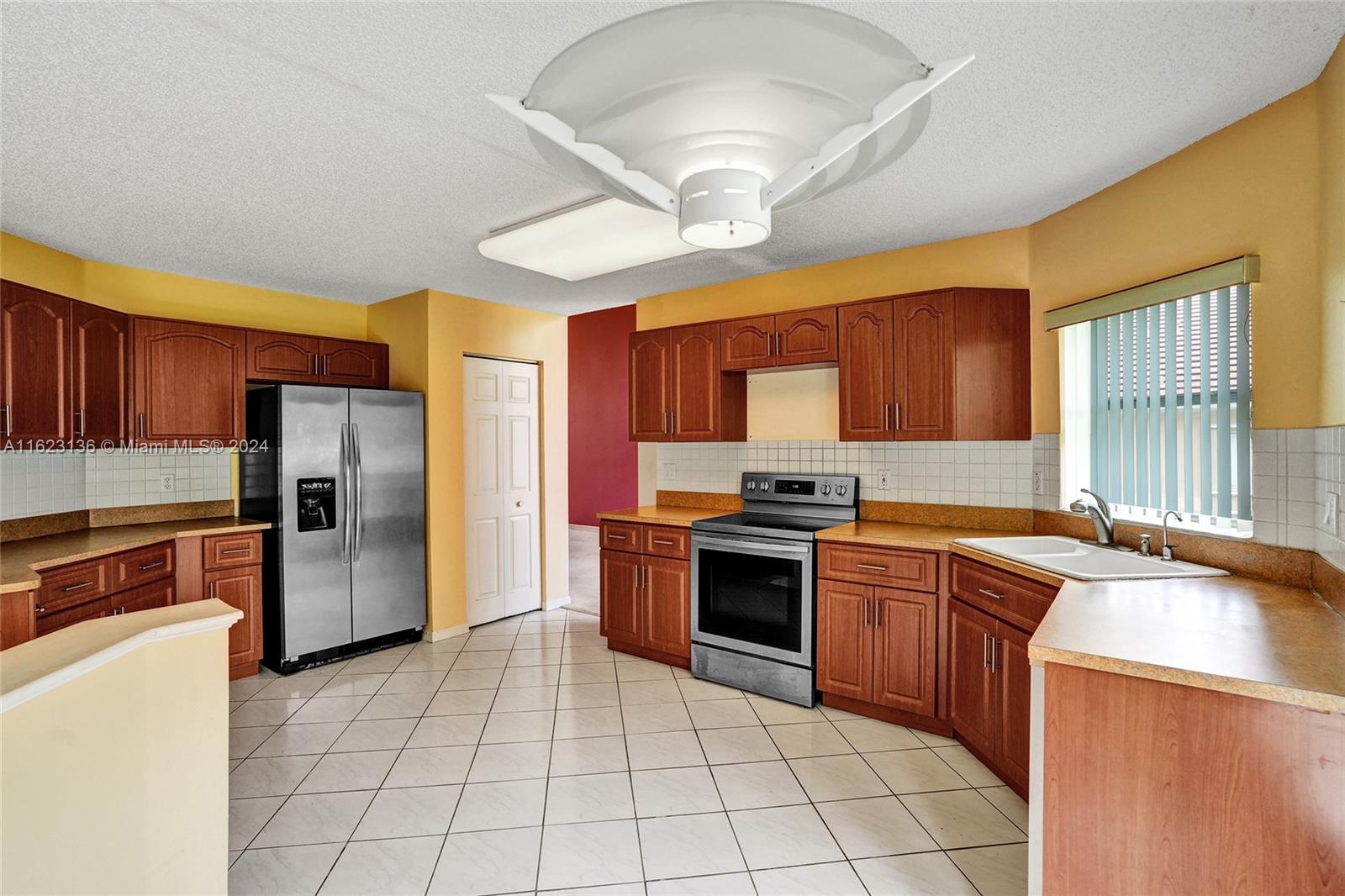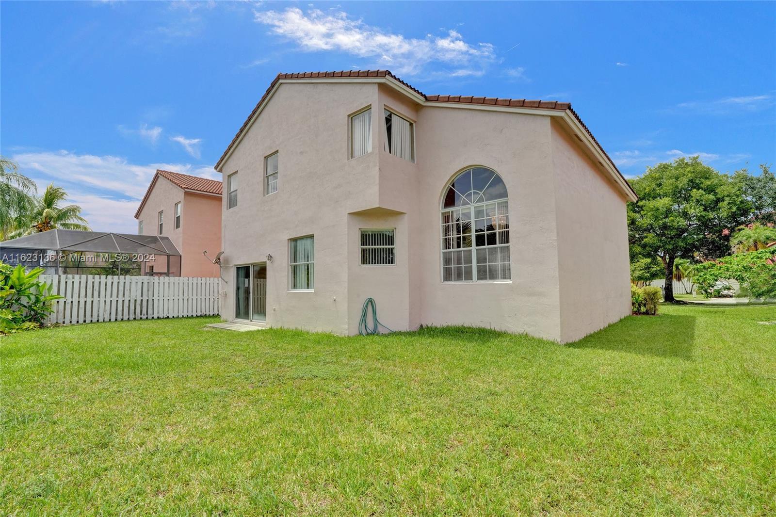 This spacious two-story home boasts 4 bedrooms and 3 full baths is waiting for your personal touch. All of the living areas are flooded with natural light, this home is ideal for family gatherings and entertaining guests. The principal bathroom includes a separate shower, a double sink, and a soaking tub. The expansive backyard features a lovely papaya tree, creating a tropical oasis perfect for summer barbecues, gardening, or relaxing in nature. Located in West Pembroke Pines in Chapel Trail, close to parks, schools, and shopping, offering the perfect blend of tranquility and convenience.